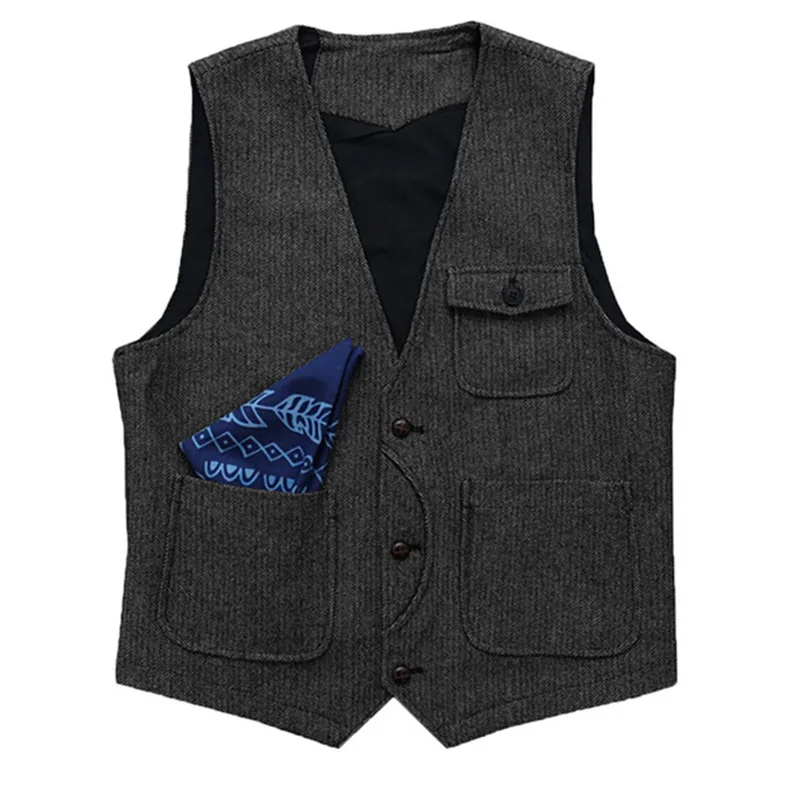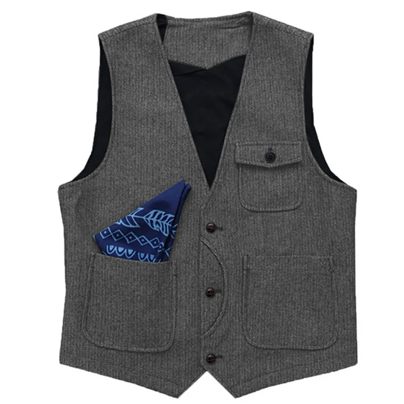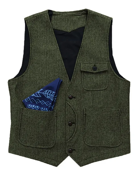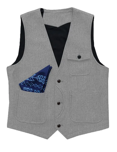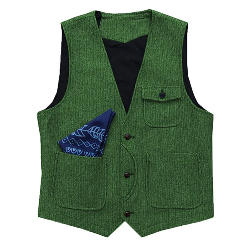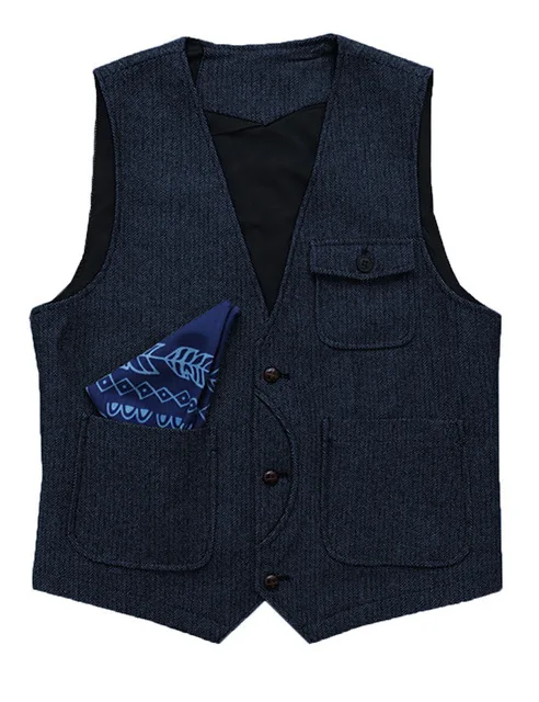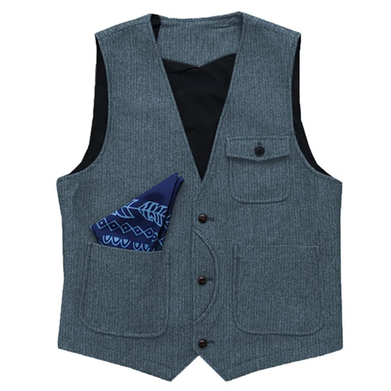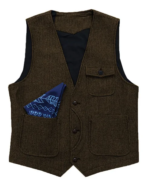Wiaofellas - Men Vest Brown Herringbone Suit V Neck For Wedding Groom Business Formal Banquet Suit Men Waistcoat