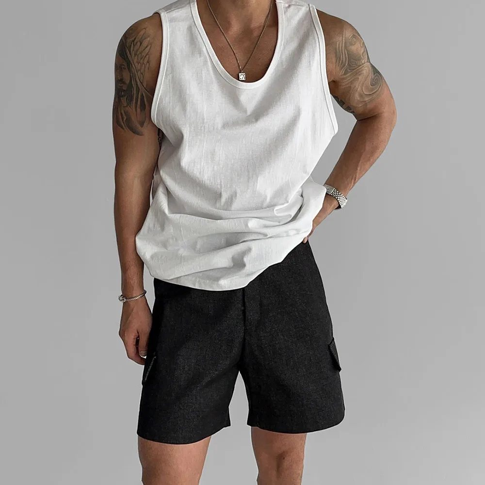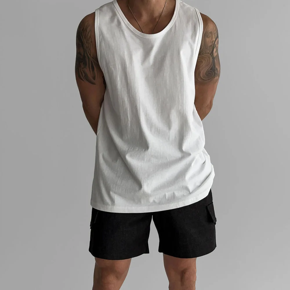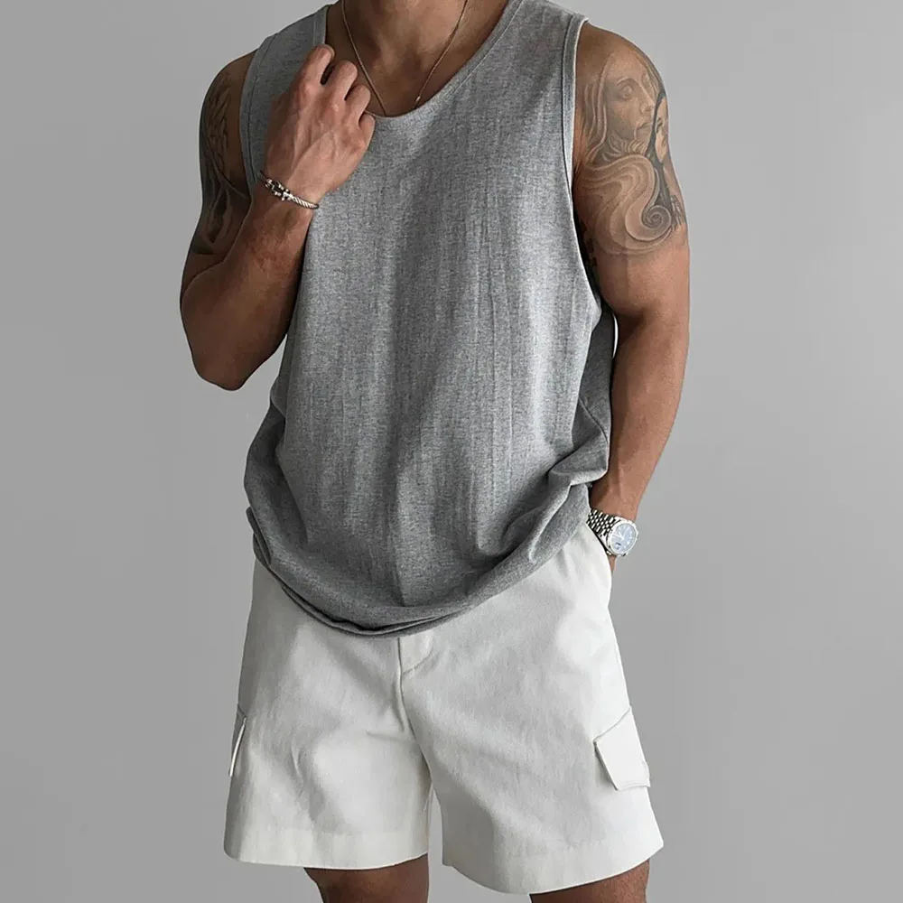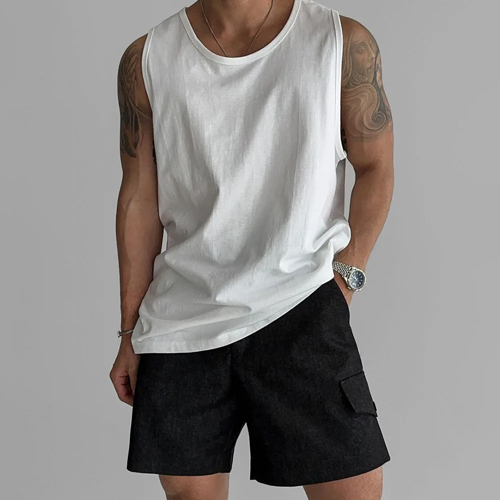 Wiaofellas - Mens Sports Fitness Casual Vests Genderless American Personality Versatile Streetwear Simple Solid Color Tank Tops Unisex