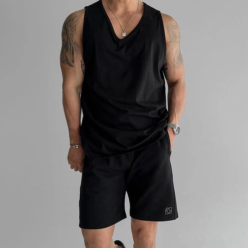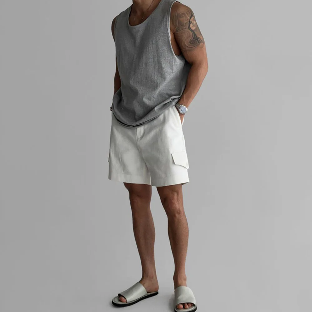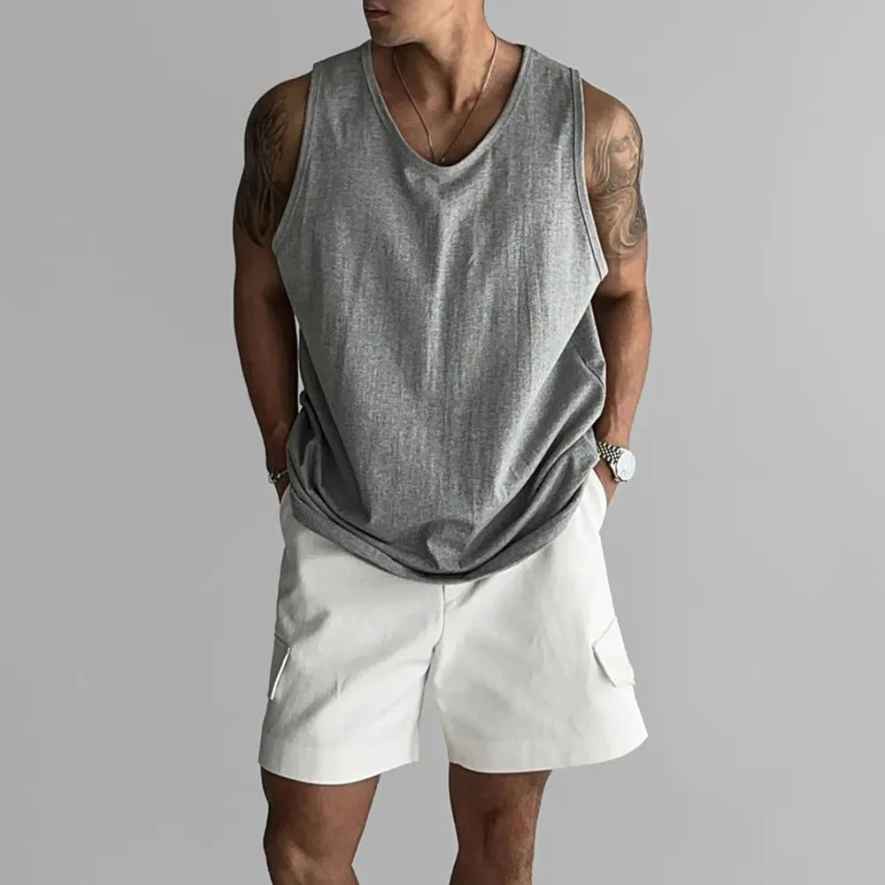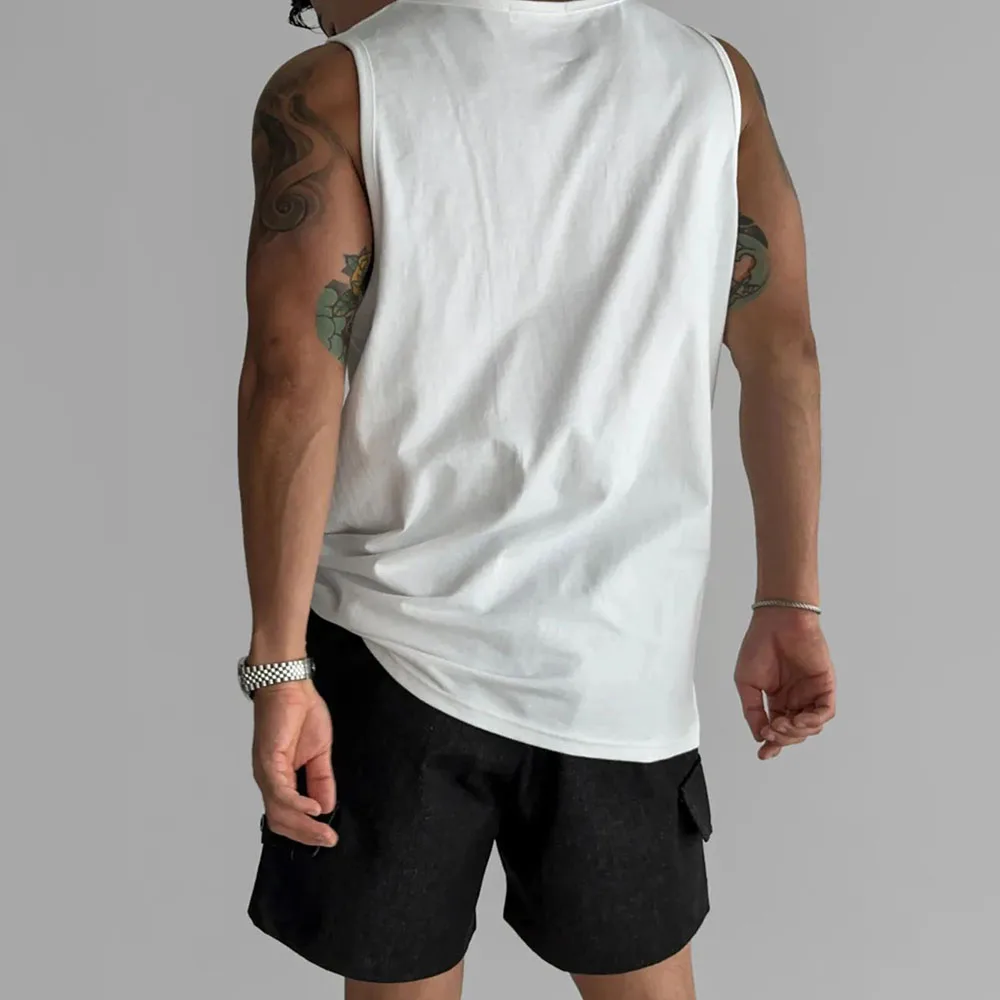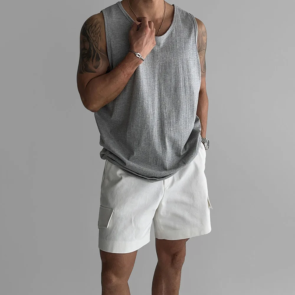Wiaofellas - Mens Sports Fitness Casual Vests Genderless American Personality Versatile Streetwear Simple Solid Color Tank Tops Unisex