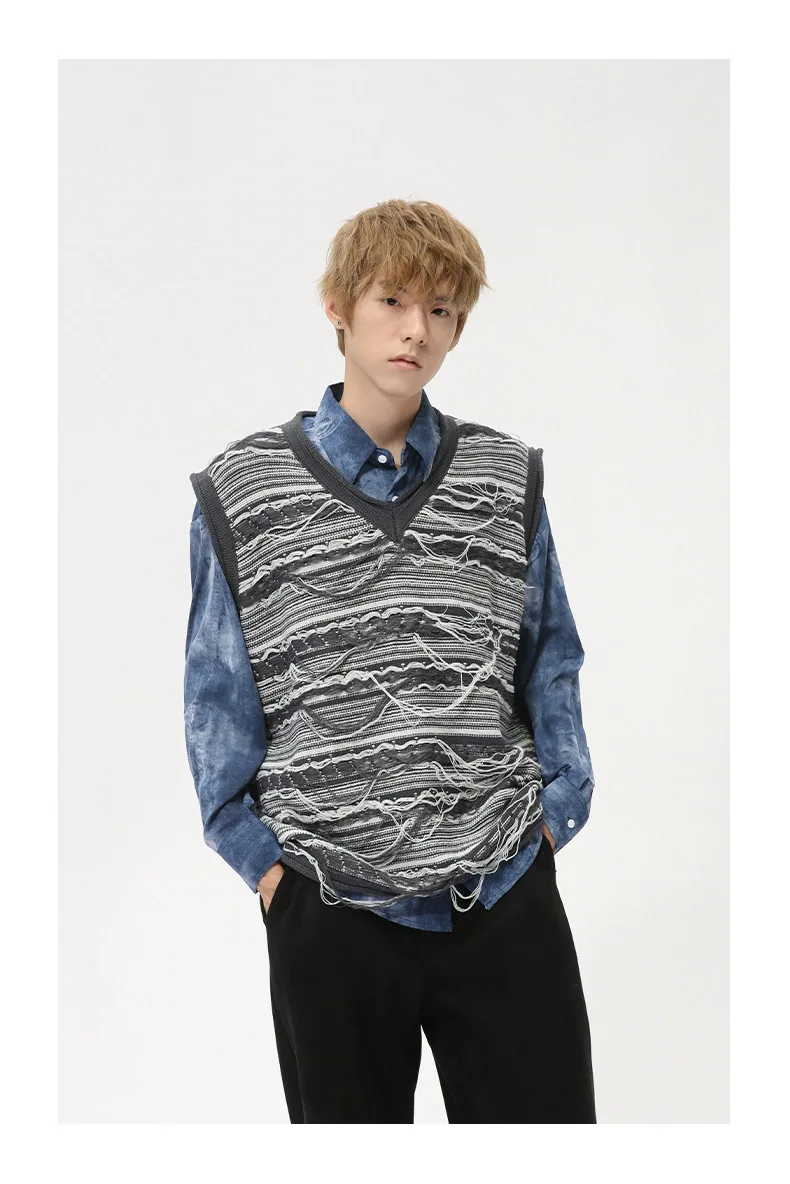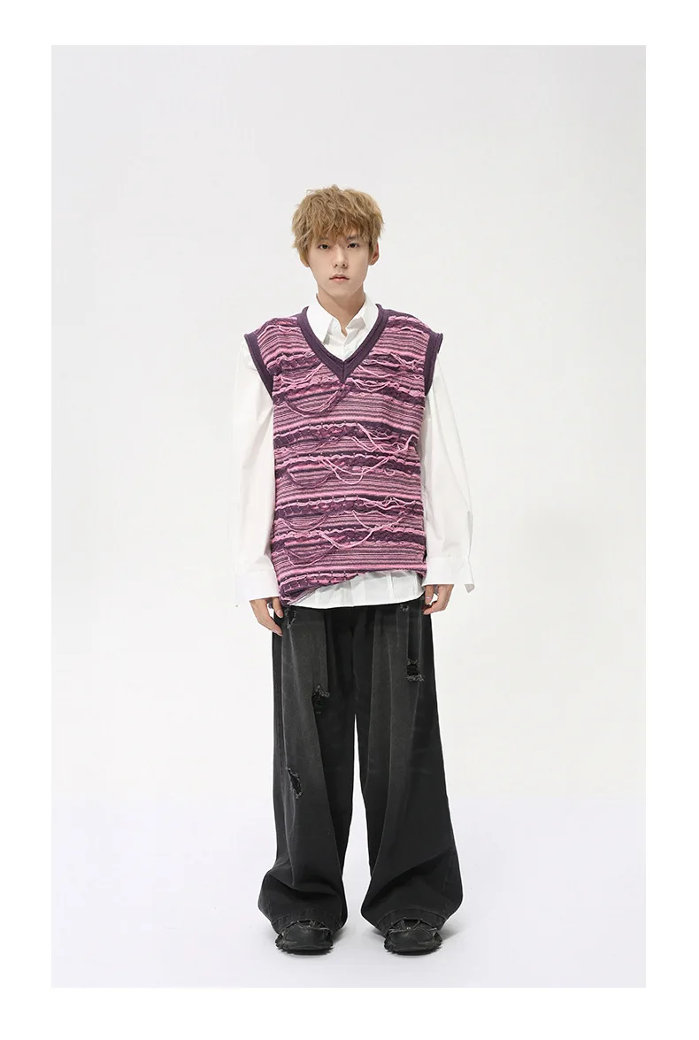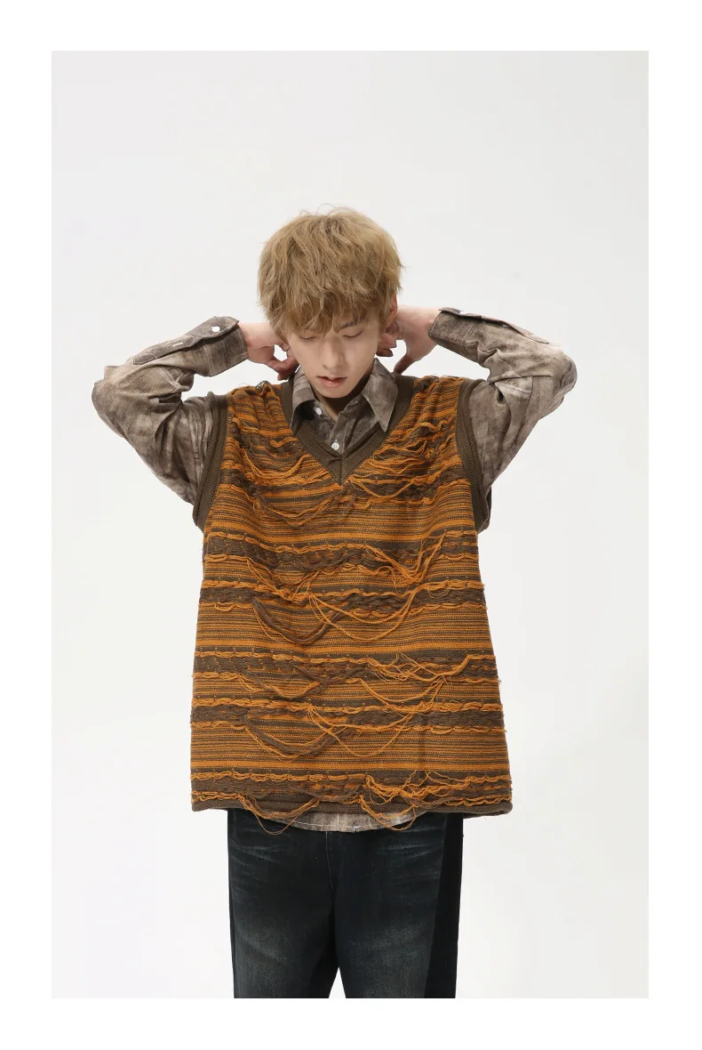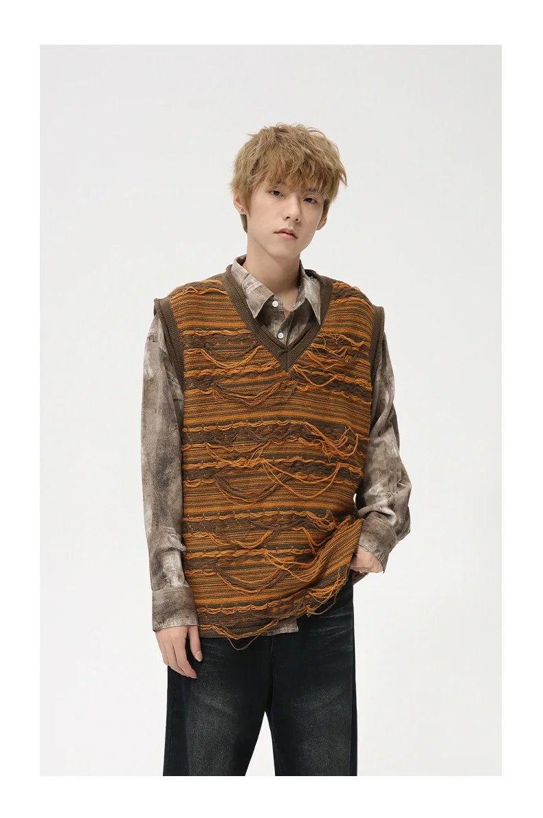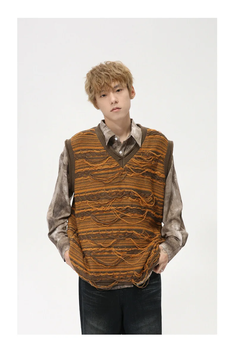 Wiaofellas - fall outfits American Style Men's Tassels Vest Cardigan Knitted Tops V-collar Sleeveless Sweater Male Tank Tops Autumn