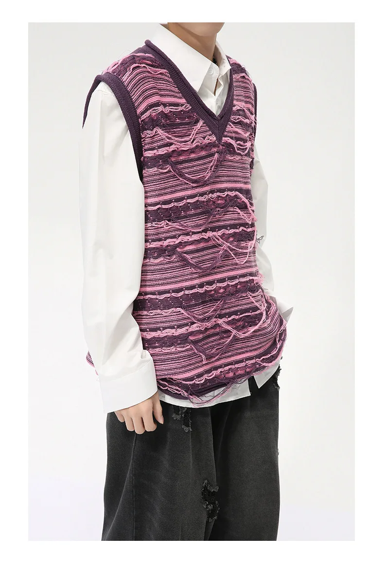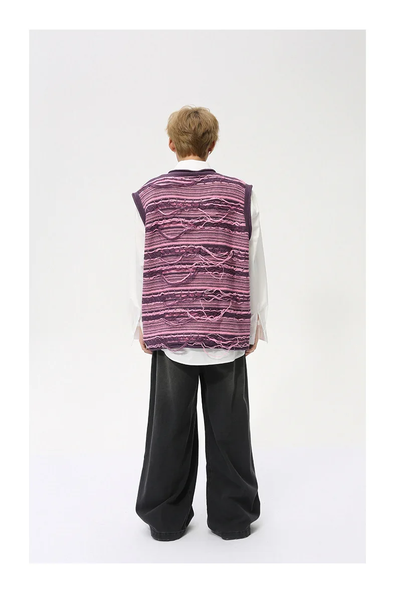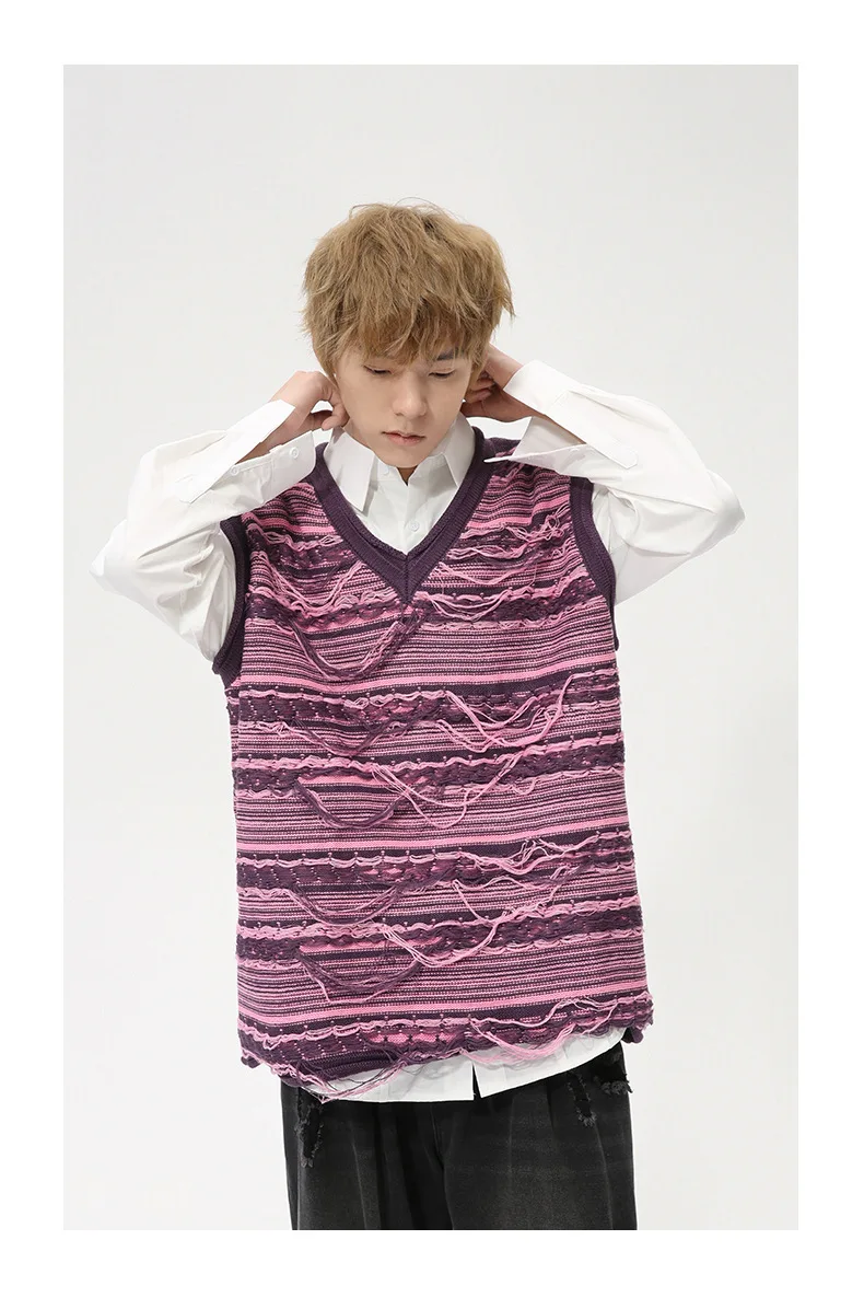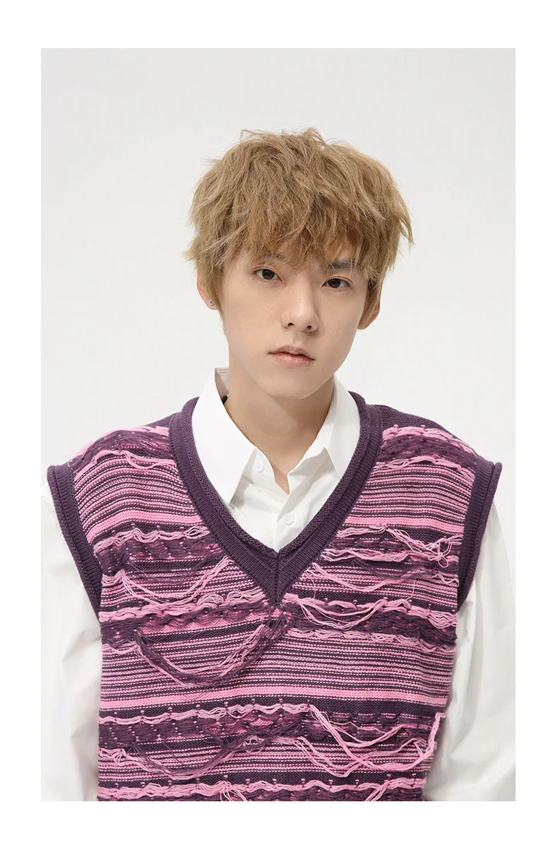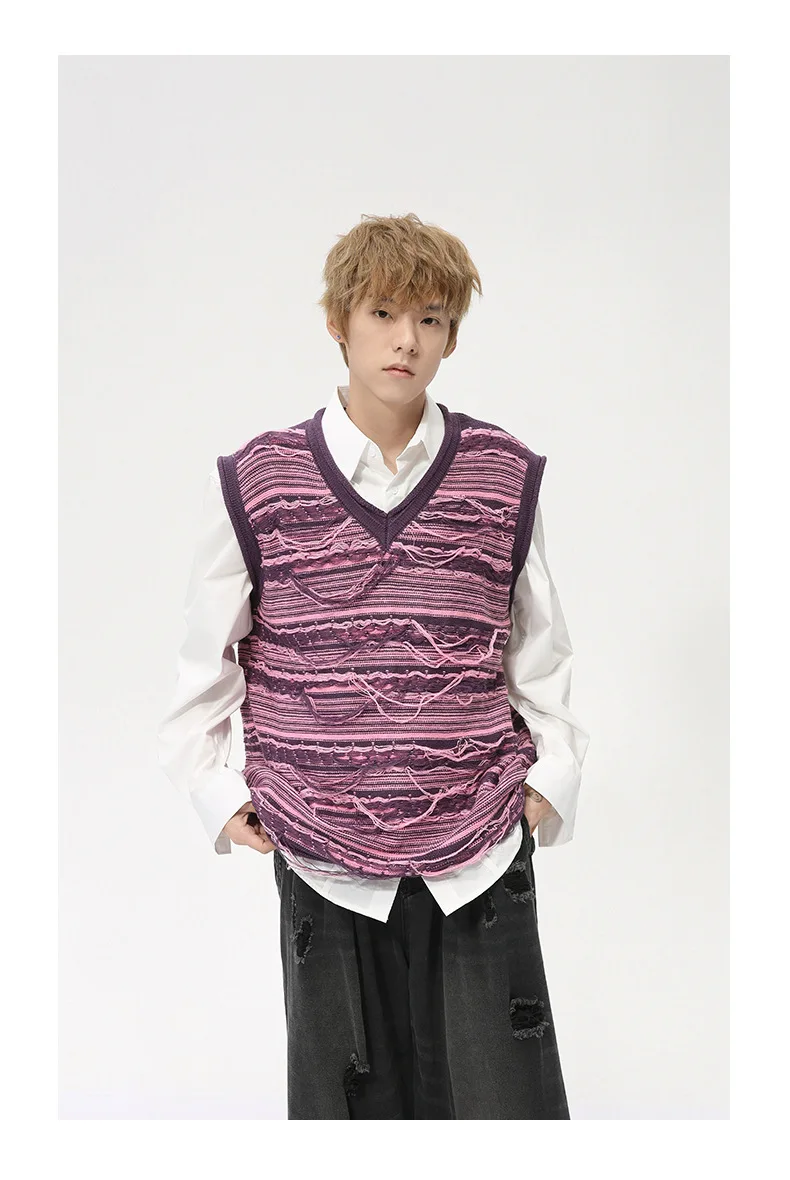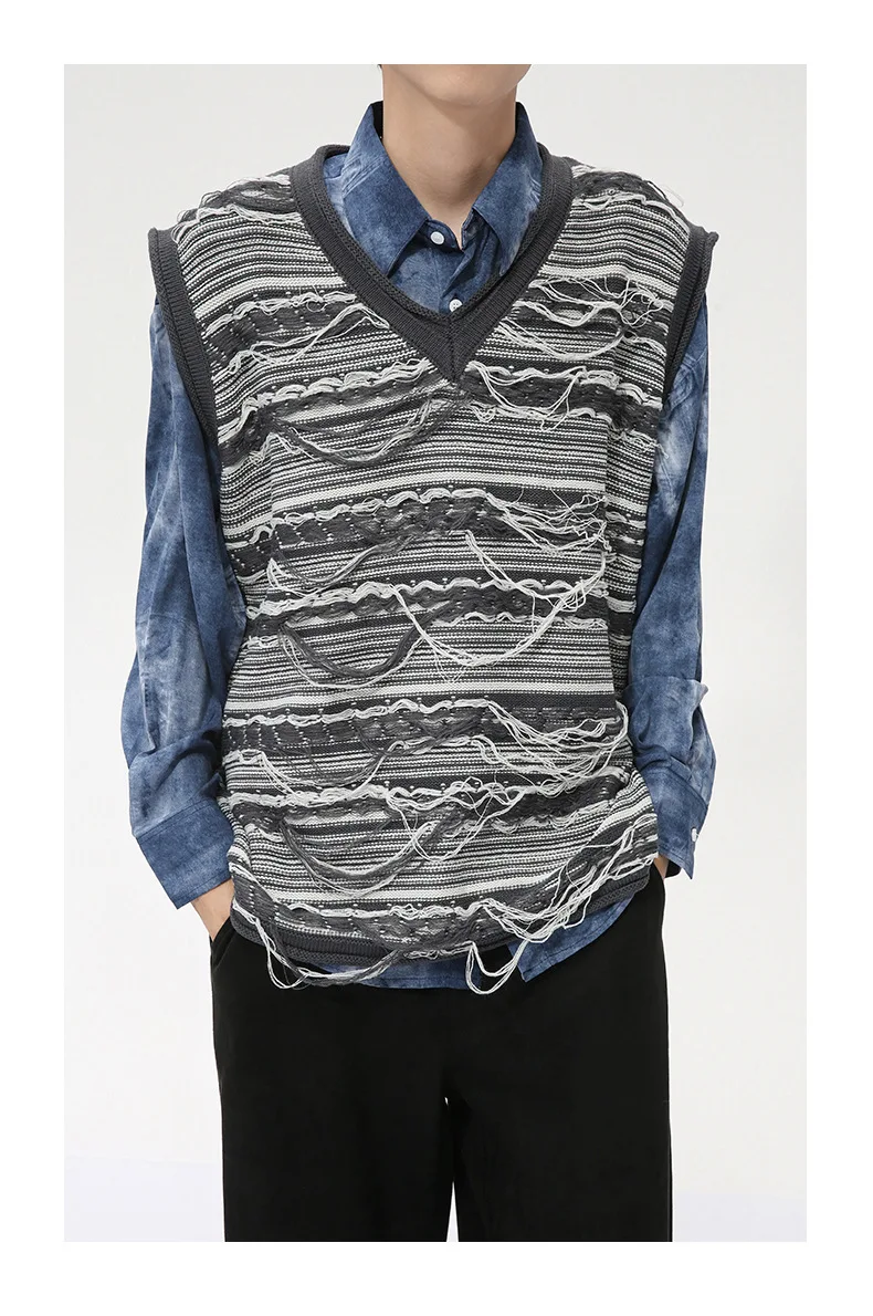 Wiaofellas - fall outfits American Style Men's Tassels Vest Cardigan Knitted Tops V-collar Sleeveless Sweater Male Tank Tops Autumn