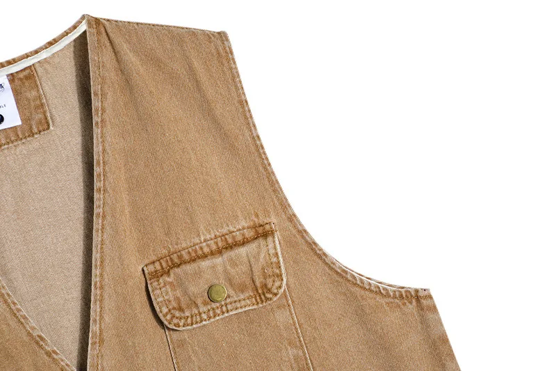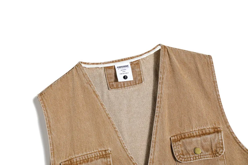 Wiaofellas - Vintage Retro Multi Pocket Denim Vest Summer European American Style Vest Couple Cotton Fashion HipHop Sleeveles Men tank tops