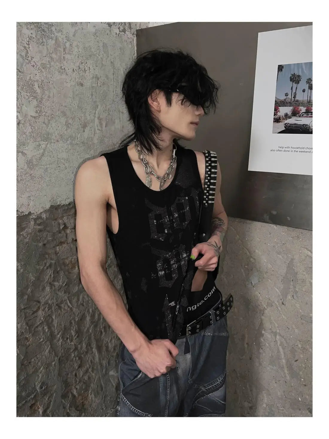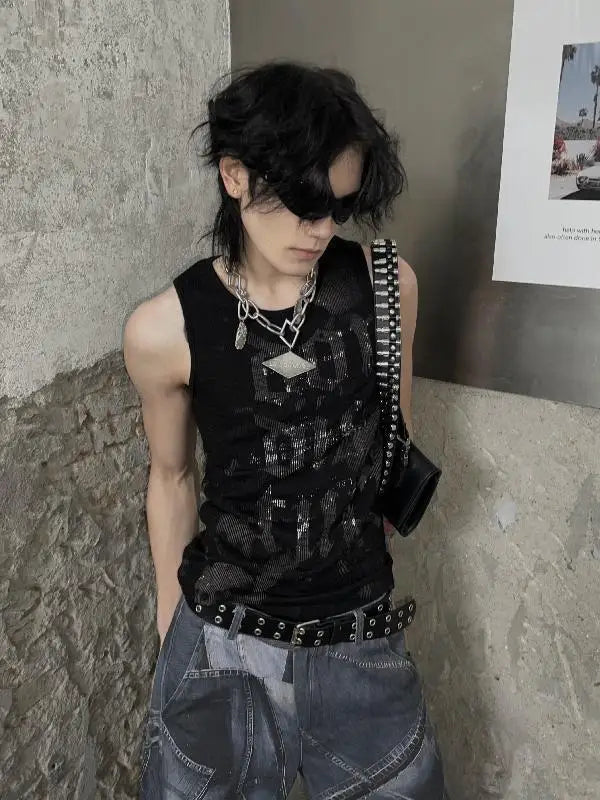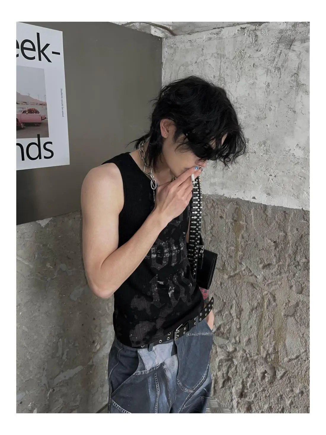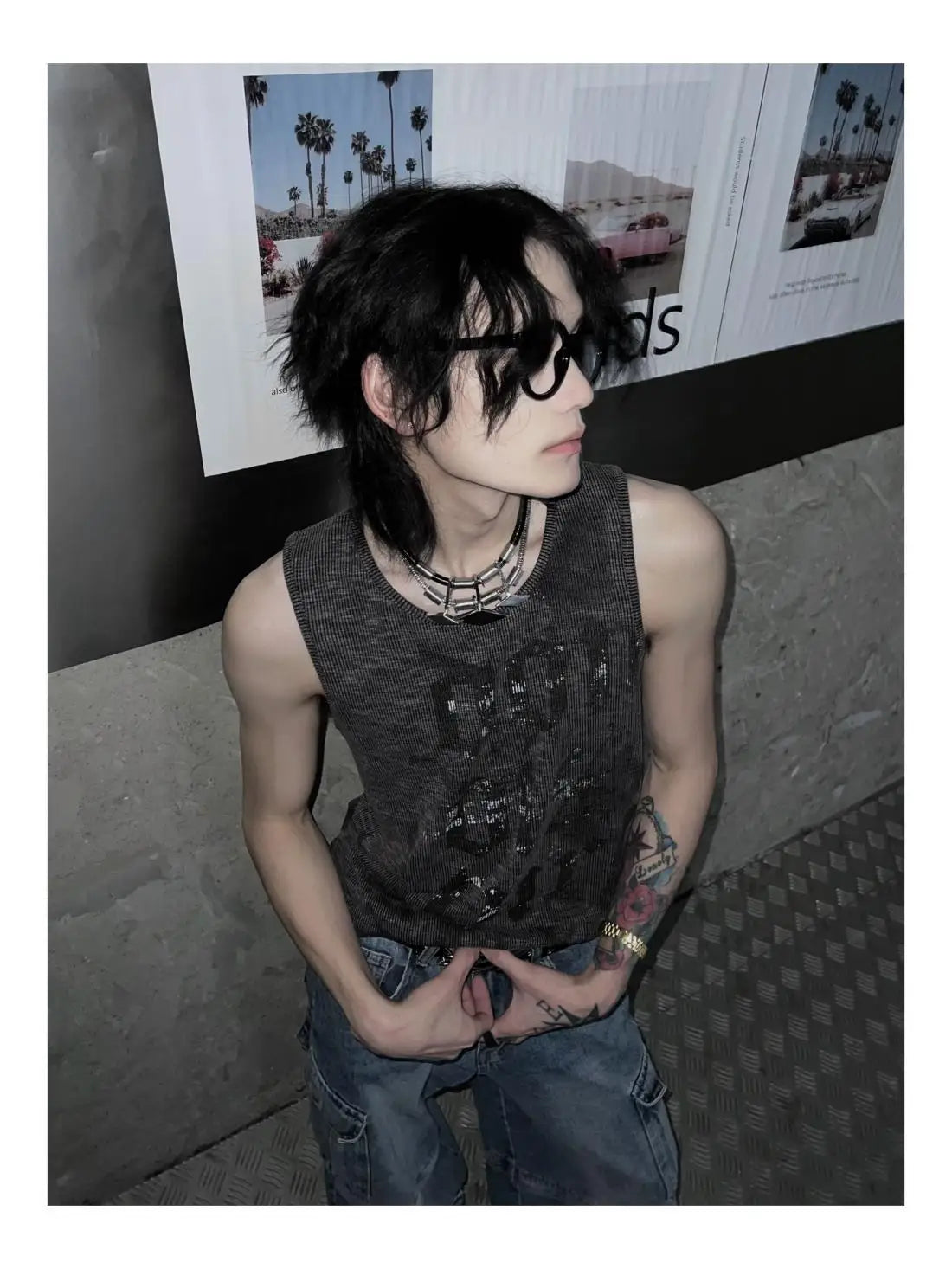 WIAOFELLAS  -  Men Clothing Tank Tops Summer High-end Designed Chic Niche Amercian Punk Hip-hop Letter Print Slim Fit Sleeveless Vest T-shirt