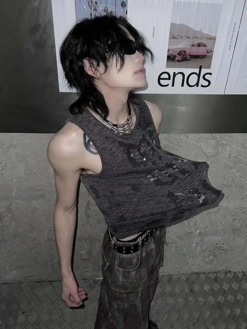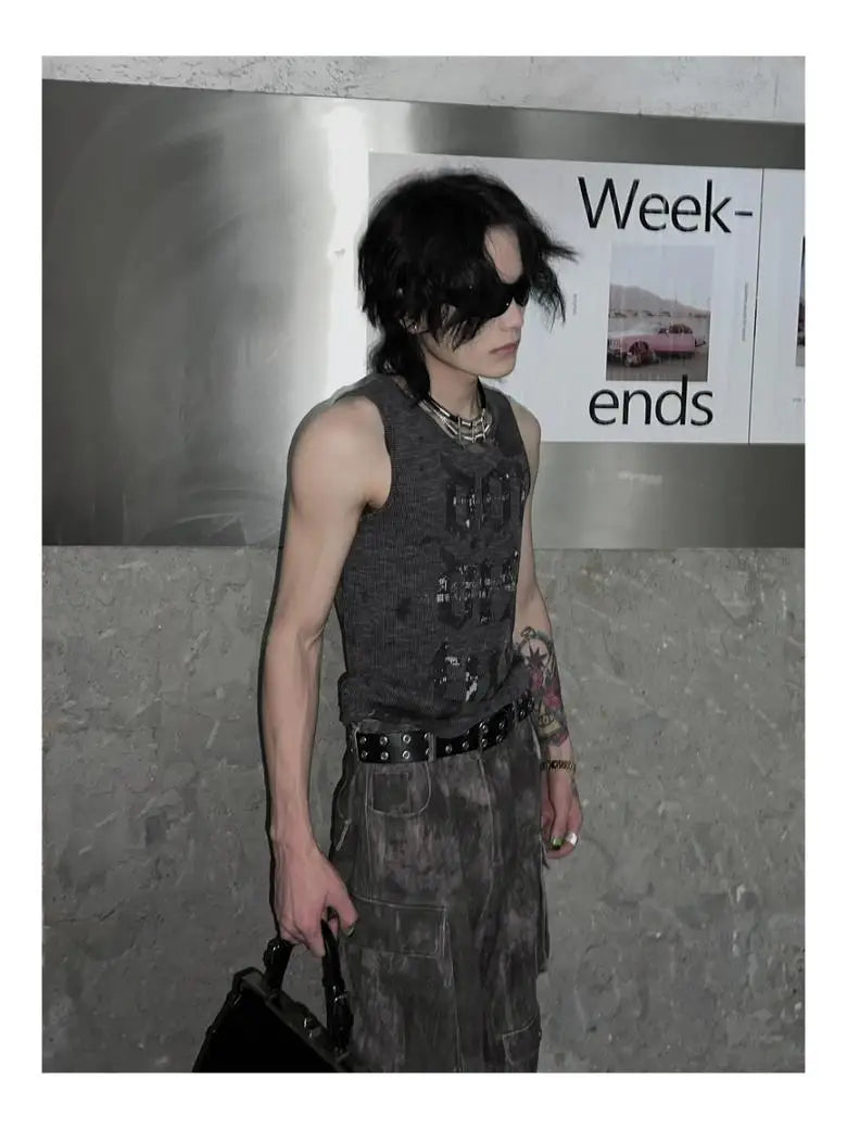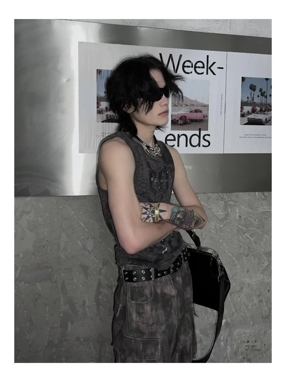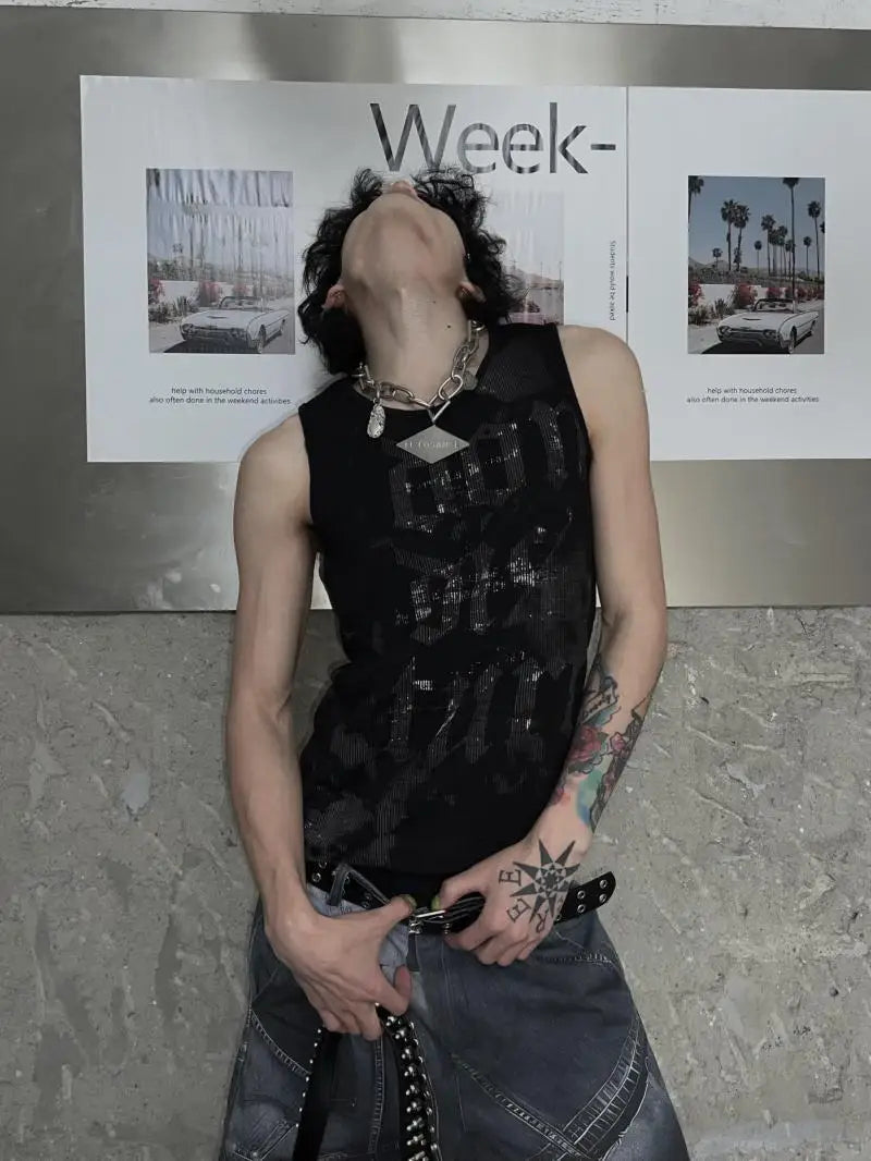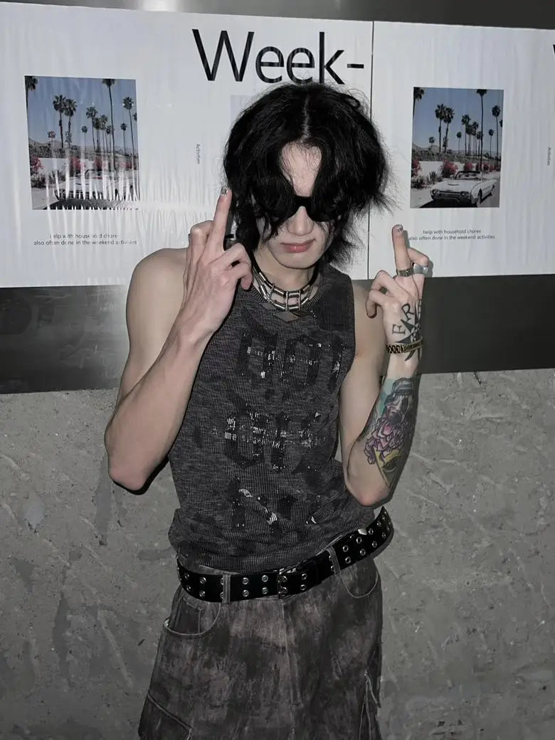 WIAOFELLAS  -  Men Clothing Tank Tops Summer High-end Designed Chic Niche Amercian Punk Hip-hop Letter Print Slim Fit Sleeveless Vest T-shirt