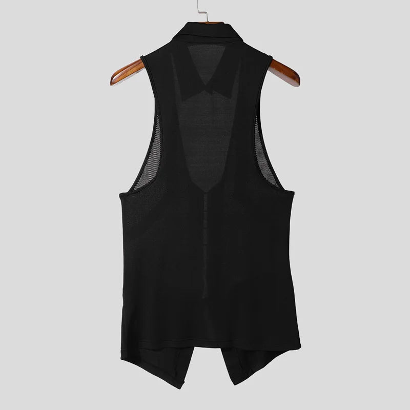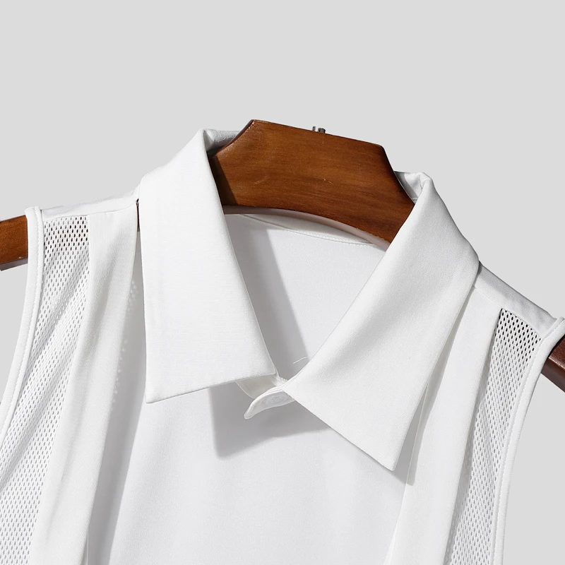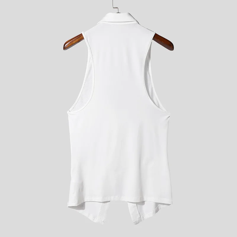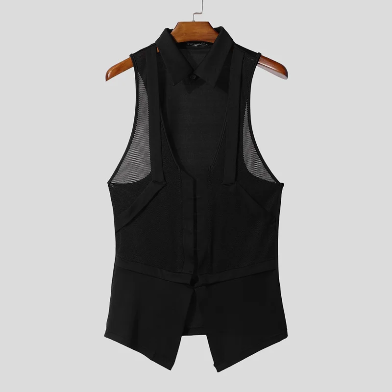WIAOFELLAS - Men Tank Tops Patchwork Hollow Out Lapel Sleeveless Sexy Male Vests Summer Streetwear 2025 Fashion Casual Men Clothing