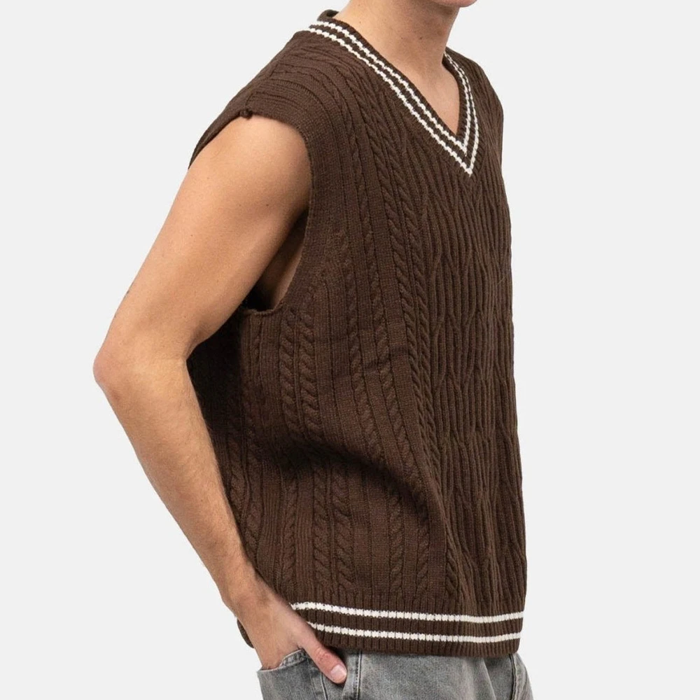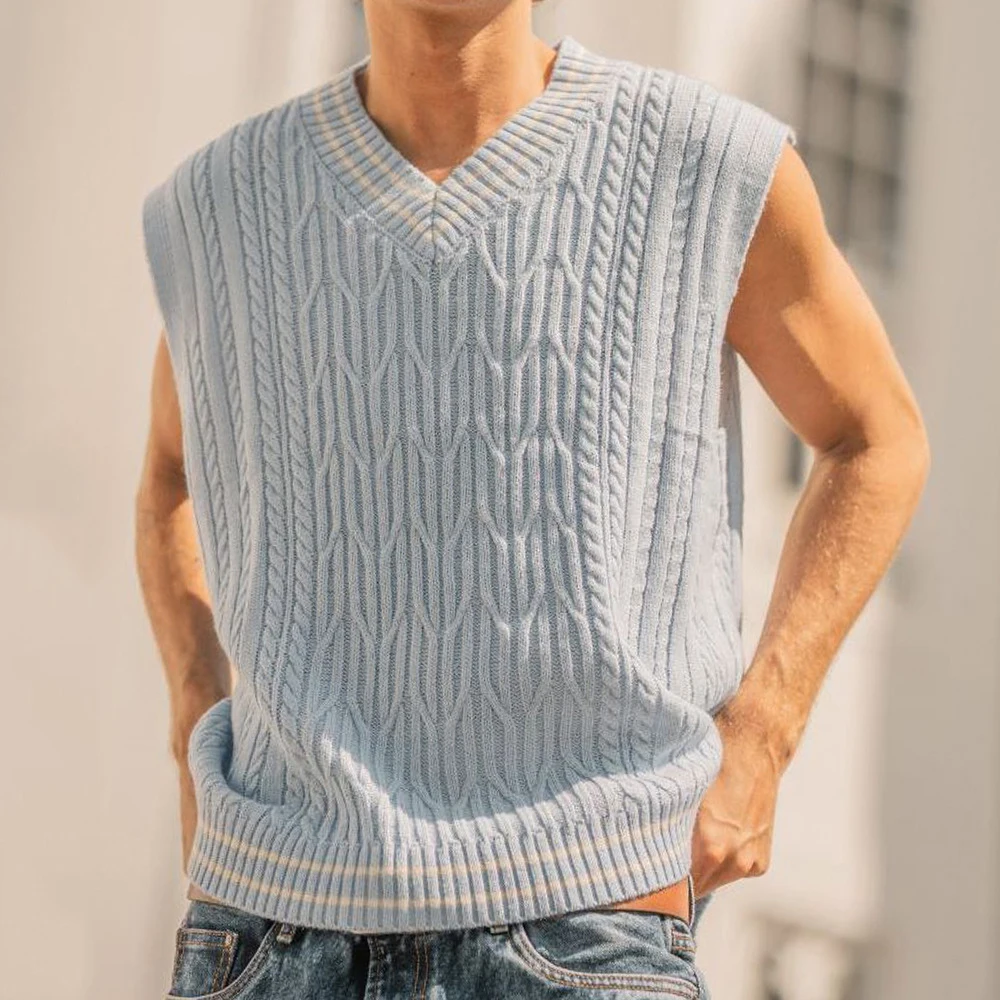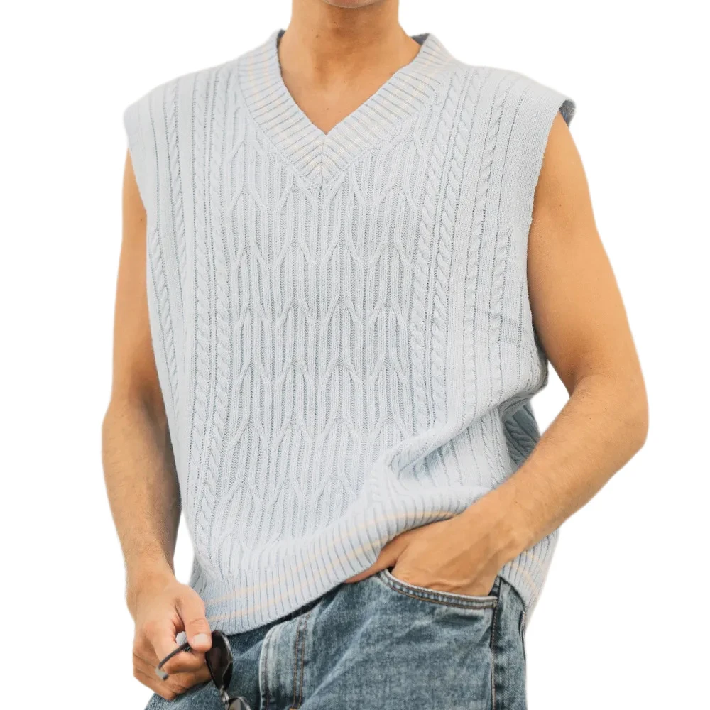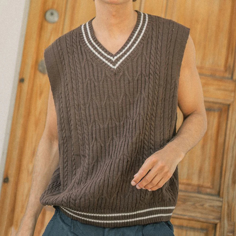 WIAOFELLAS - Men's Color Matching Knitted Sleeveless Vest Retro Fashion Trend Simple Casual Loose Breathable 2025 Summer New Men's Tops