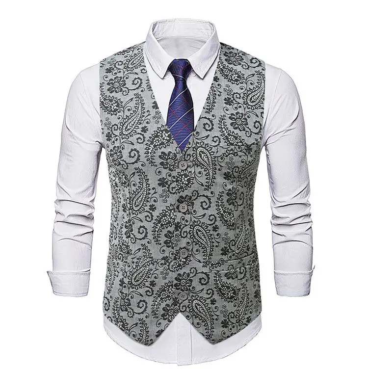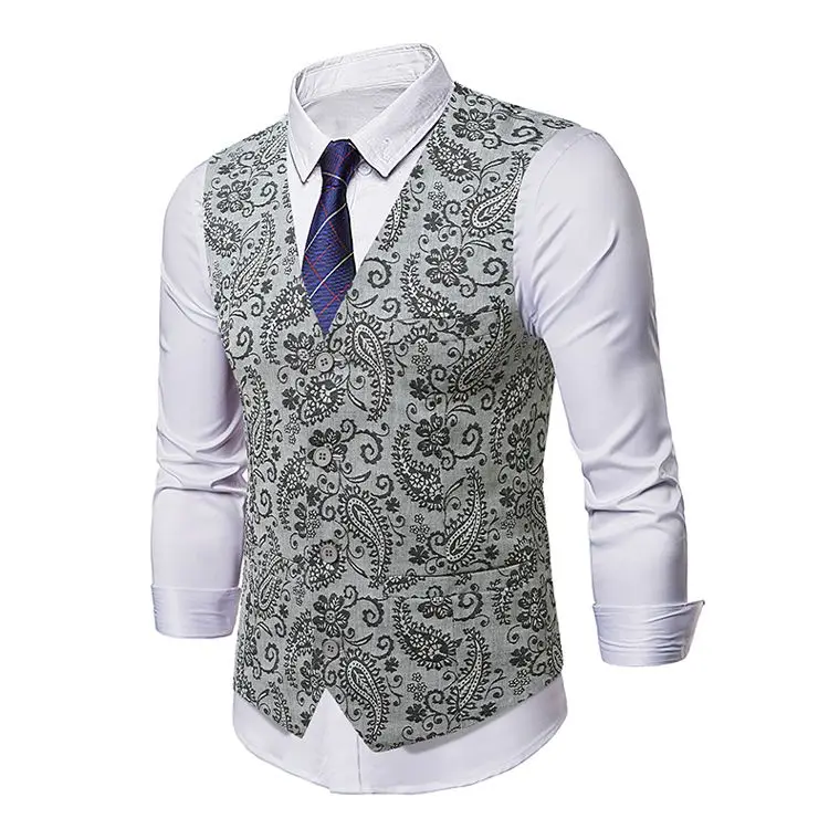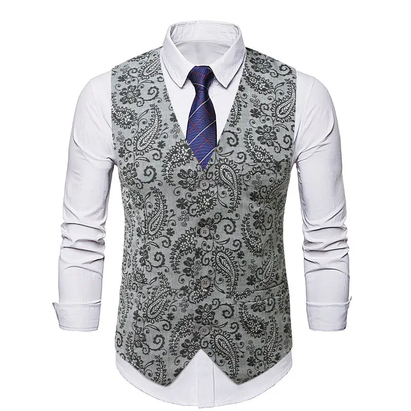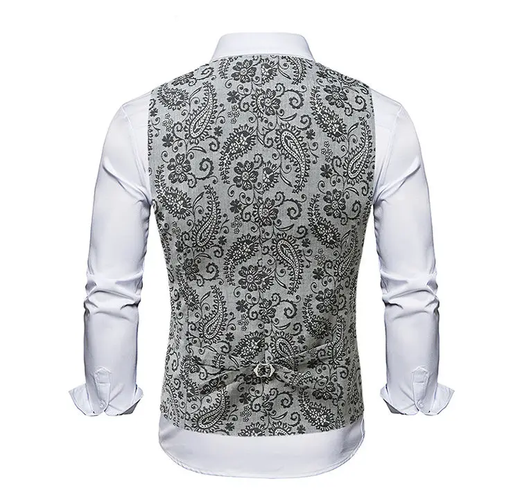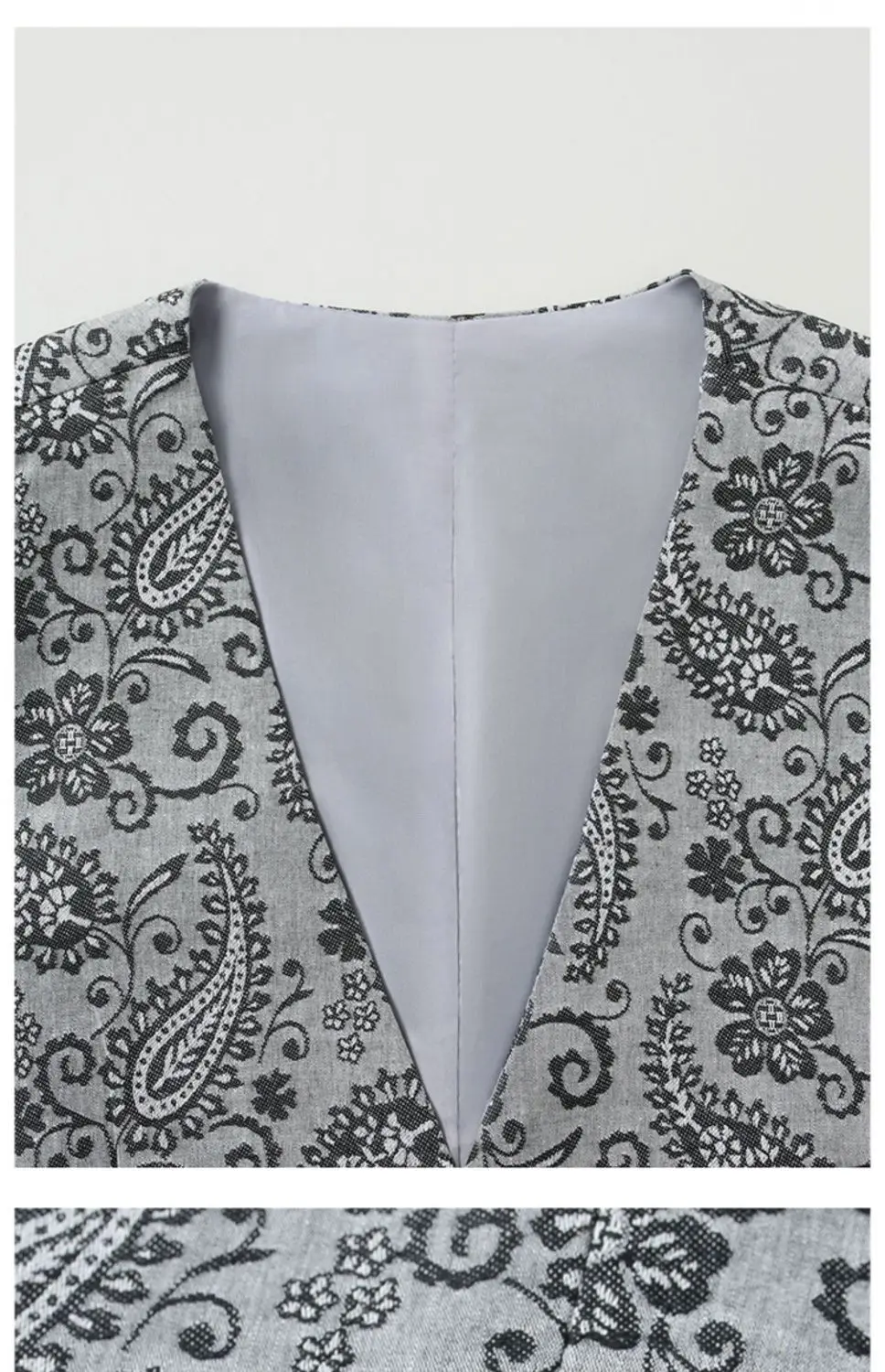 WIAOFELLAS - Men's Floral Suit Vest V-neck Single-breasted British Slim Fit and Fashionable Horse Clip Vest Vest Trendy