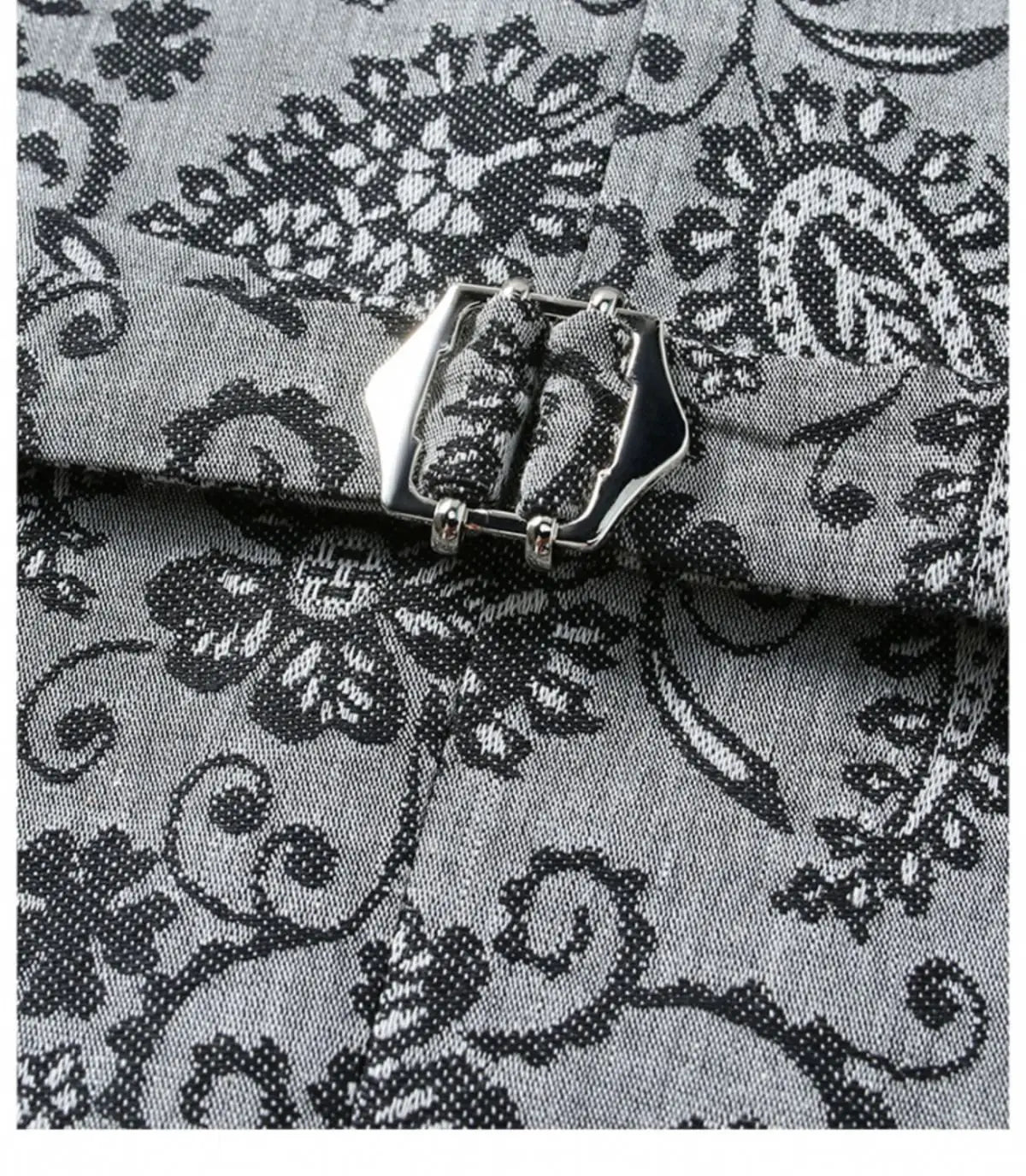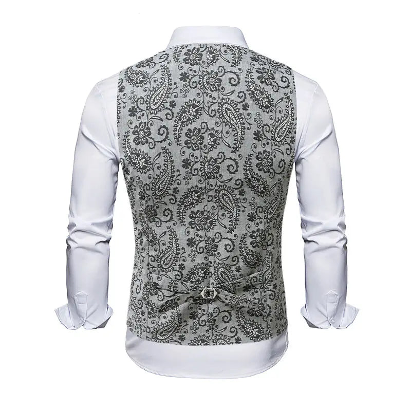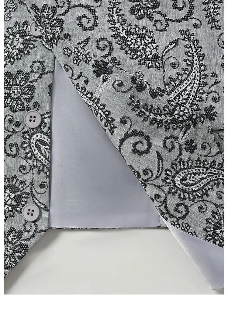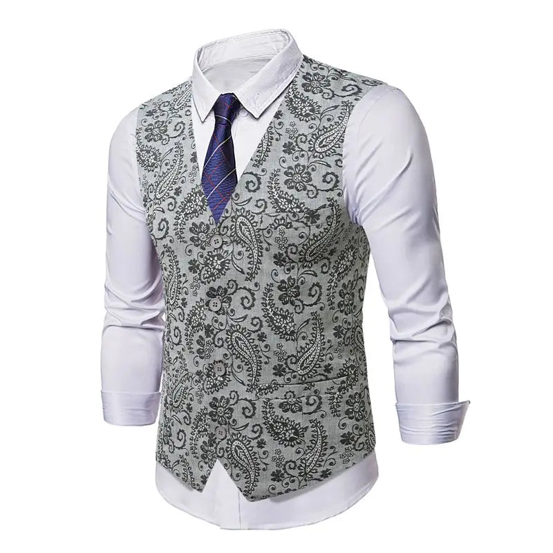 WIAOFELLAS - Men's Floral Suit Vest V-neck Single-breasted British Slim Fit and Fashionable Horse Clip Vest Vest Trendy