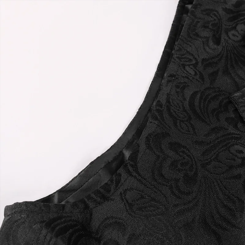 WIAOFELLAS - Mens Notched Lapels Medieval Suit Vest Jacquard Double Breasted Victorian Vests Gothic Steampunk Formal Waistcoat Tuxedo Vests