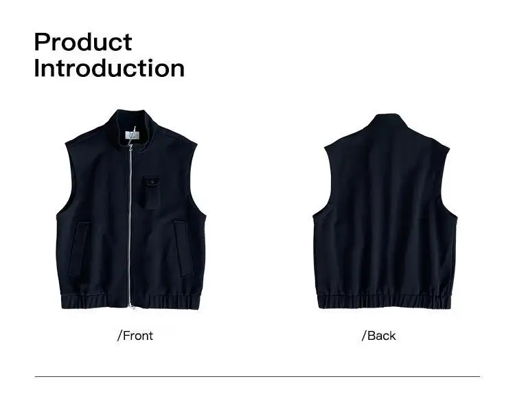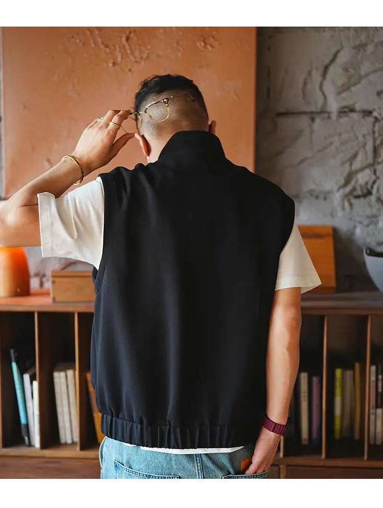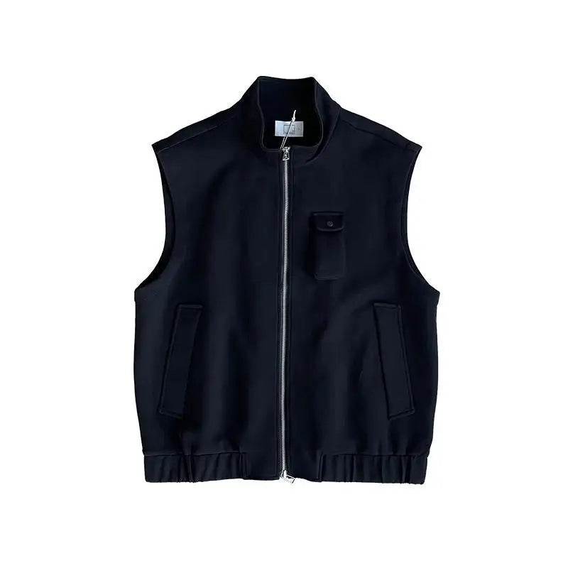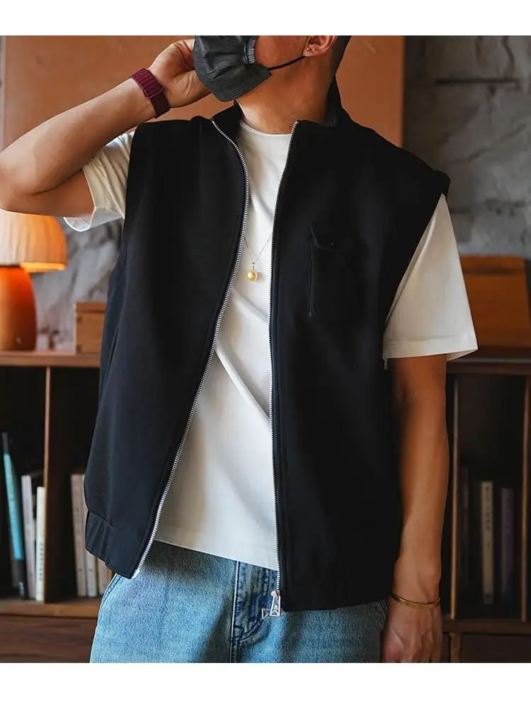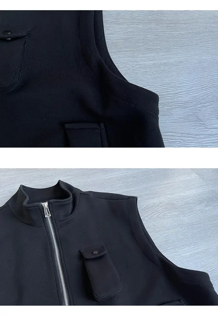 WIAOFELLAS - Men's Oversized Vest Double zipper Stand Collar Sleeveless Tank Tops Coat American INS Trendy High Street Loose Casual Waistcoat