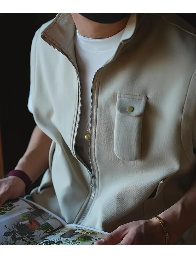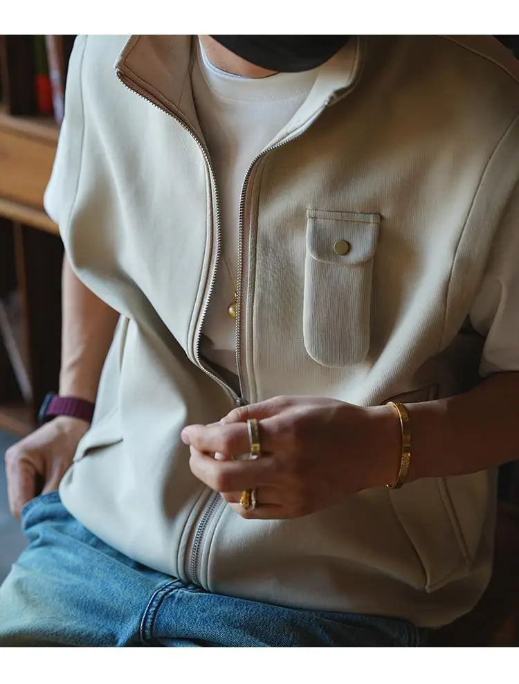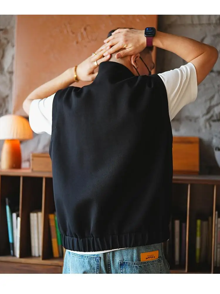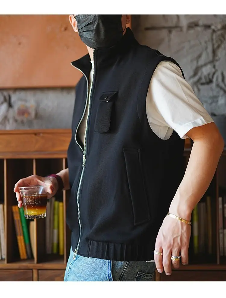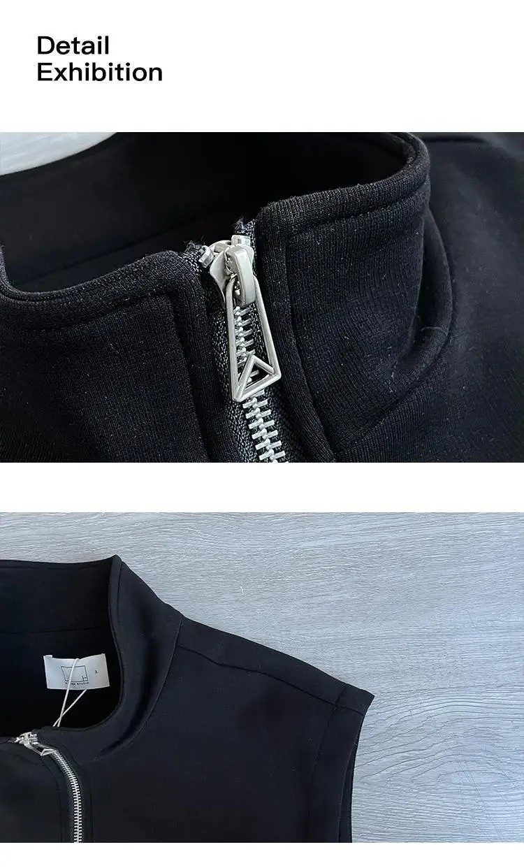 WIAOFELLAS - Men's Oversized Vest Double zipper Stand Collar Sleeveless Tank Tops Coat American INS Trendy High Street Loose Casual Waistcoat
