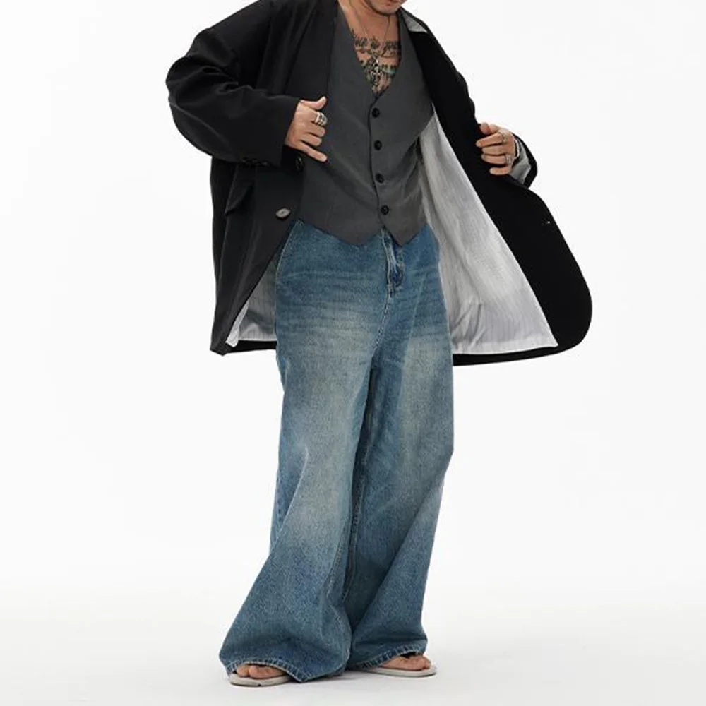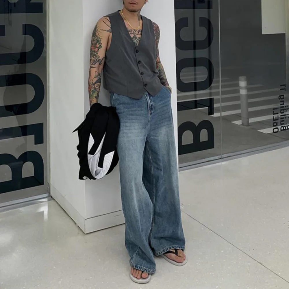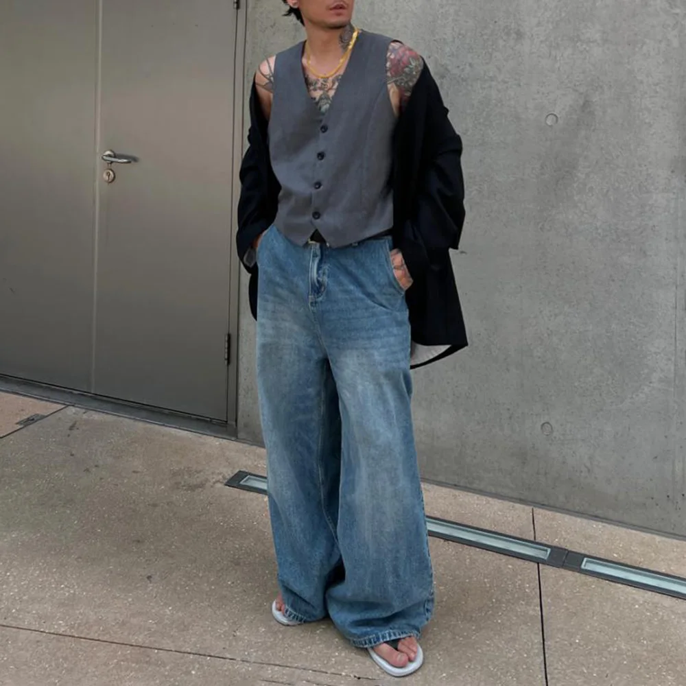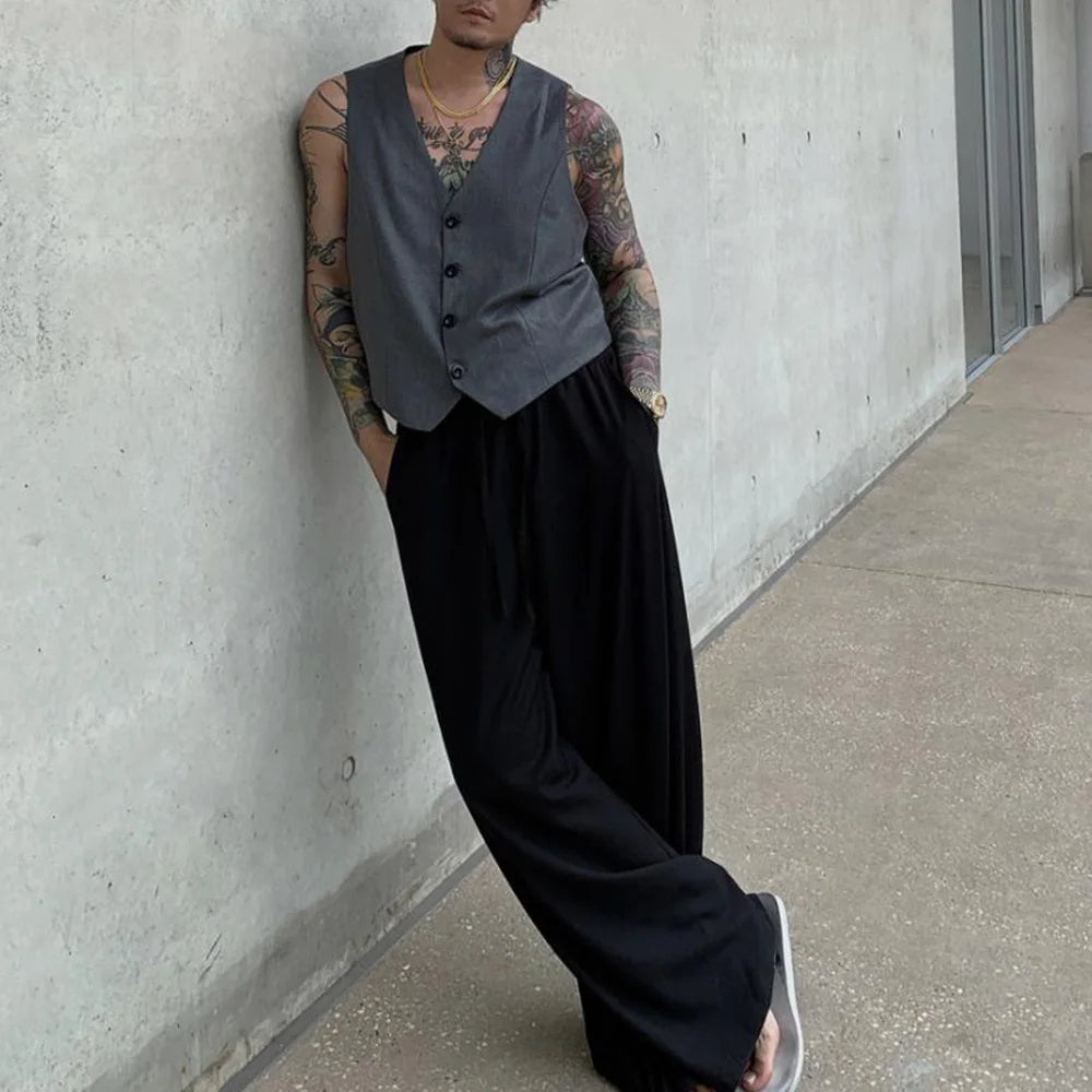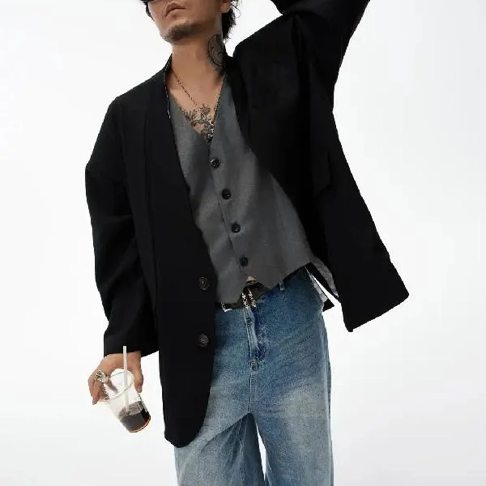 WIAOFELLAS - Mens Vest Sleeveless Retro Urban Layering Piece Suit Vest Slim Fit Vintage Essential Gray Waistcoat Trendy Button Unisex Vest