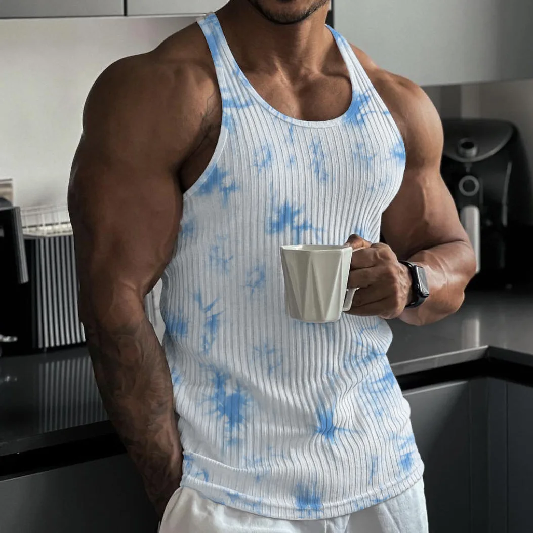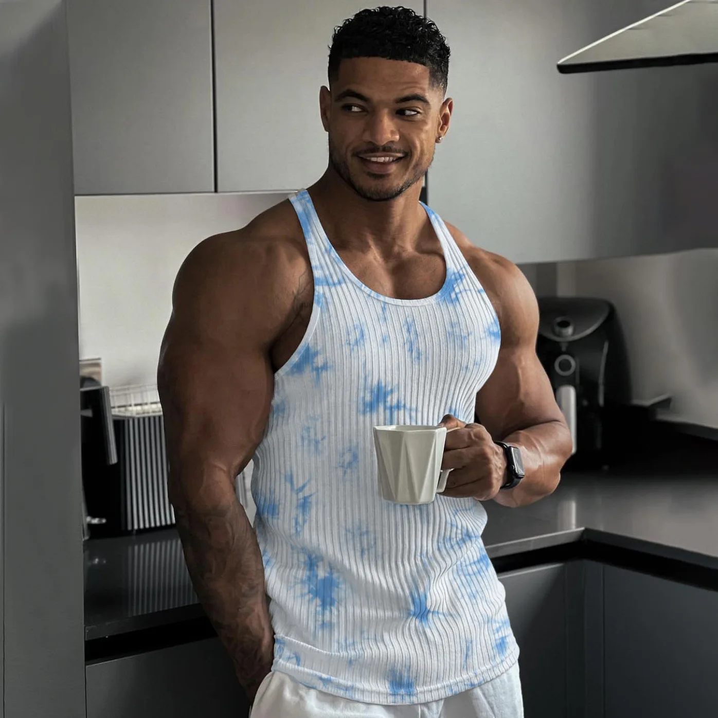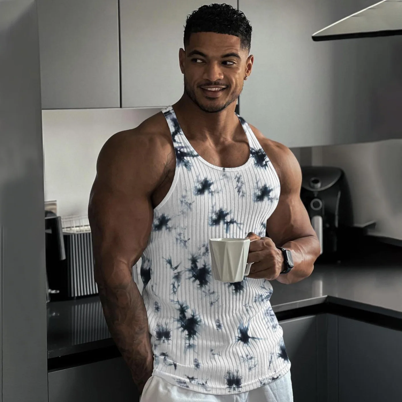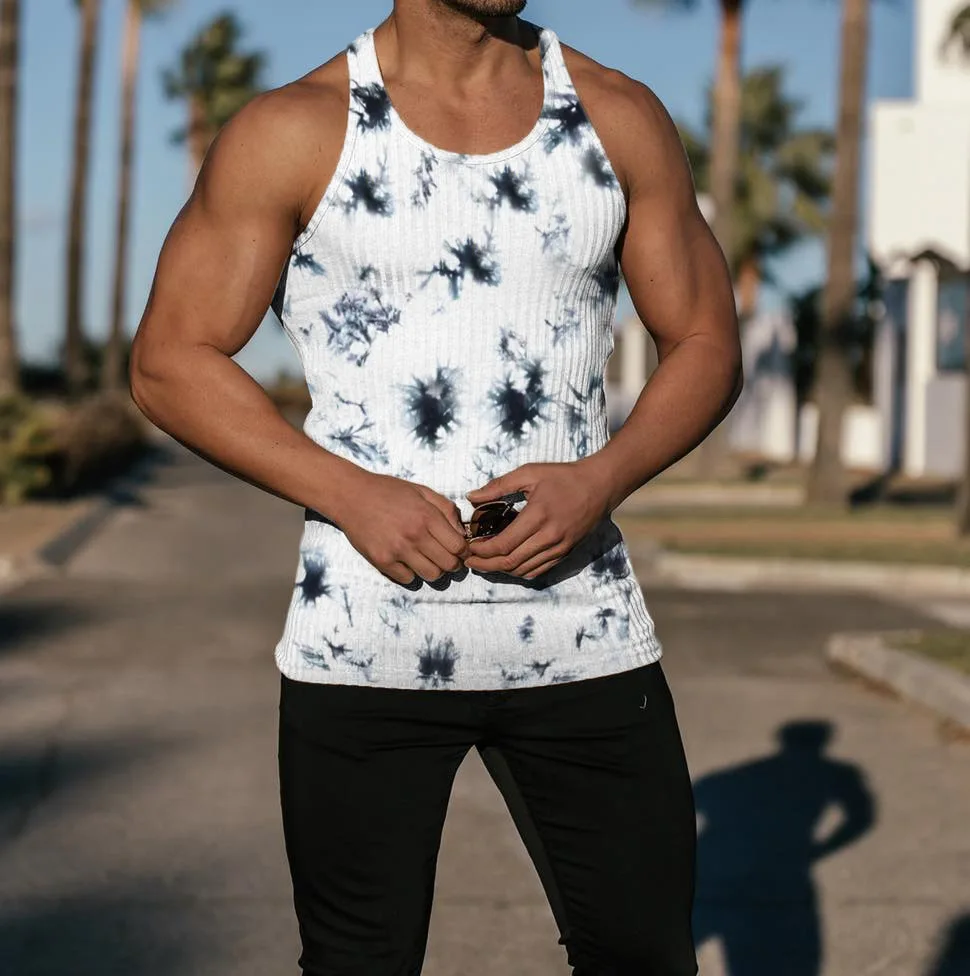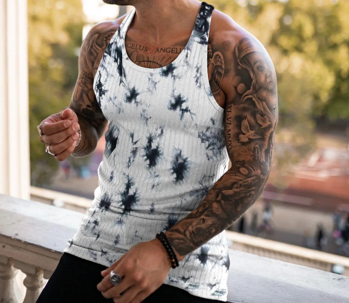 WIAOFELLAS - New Lightning Camo Summer Knitted Vertical Stripe Fitness Sports Slim Men's L-line Shirt Slim Fit Vests Mesh Singlets Muscle Top