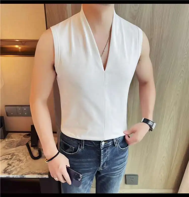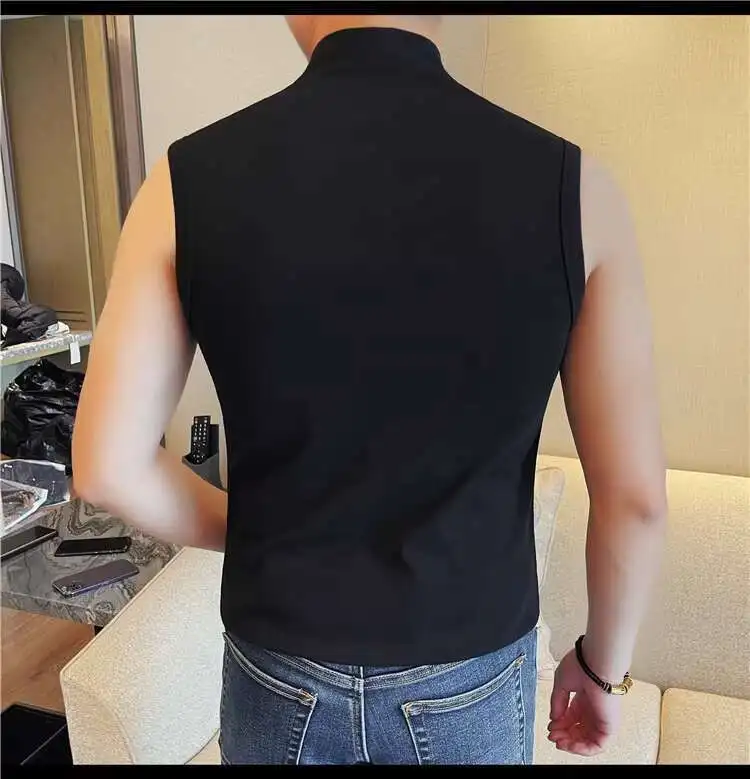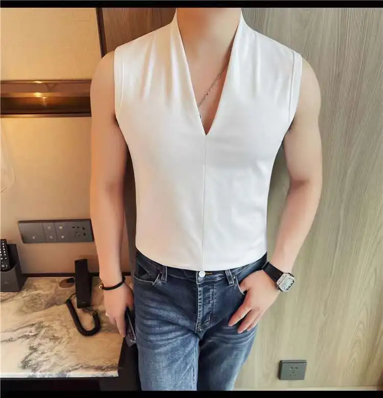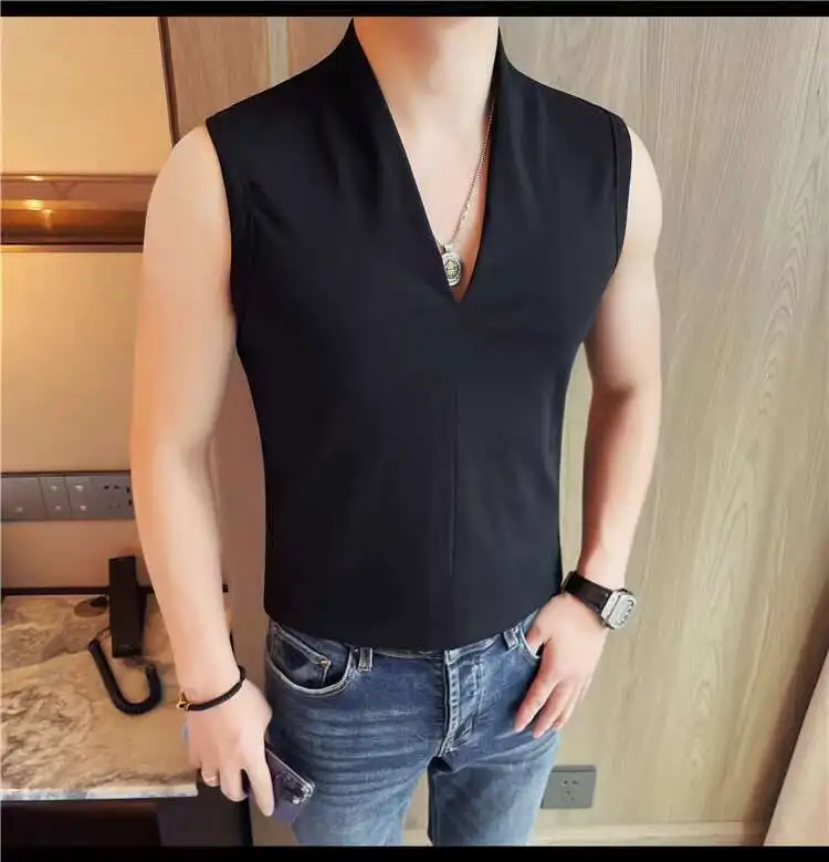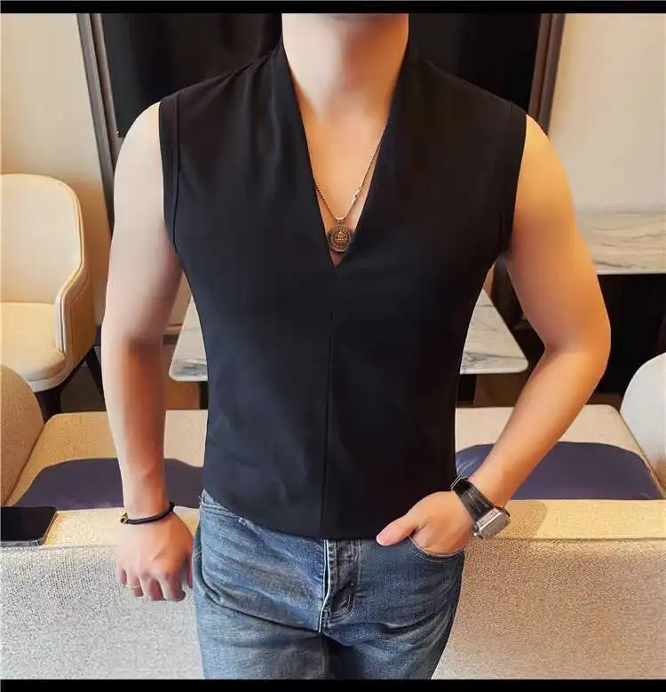WIAOFELLAS - Simple Men's Vests Solid Color V-neck Business Casual Sleeveless Slim New Summer Male Tank Tops Pullover Menswear