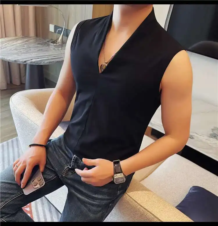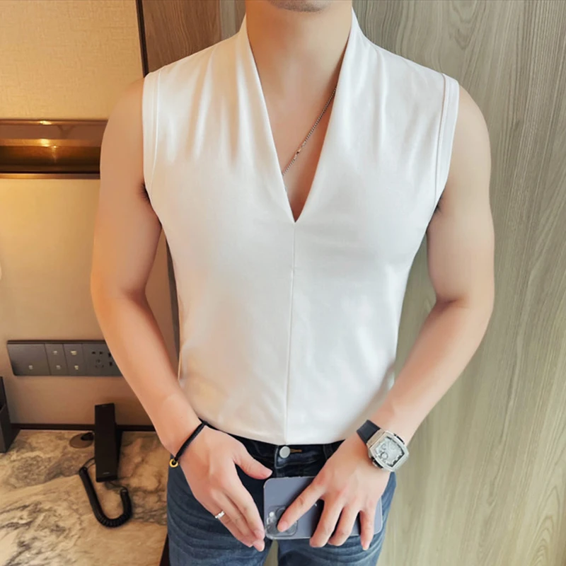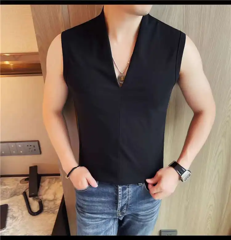 WIAOFELLAS  -  Simple Men's Vests Solid Color V-neck Business Casual Sleeveless Slim New Summer Male Tank Tops Pullover Menswear