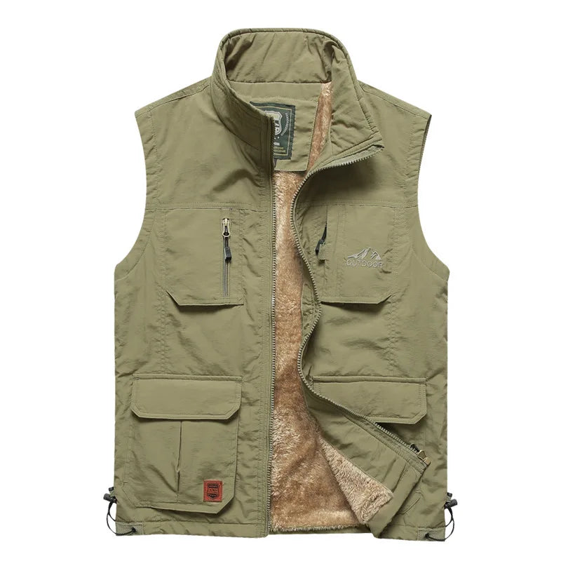 WIAOFELLAS  -  Spring and Autumn Vest Men's Multi Pocket Straight Bottom Loose Standing Neck Solid Cardigan Large Sweetheart Tank Top