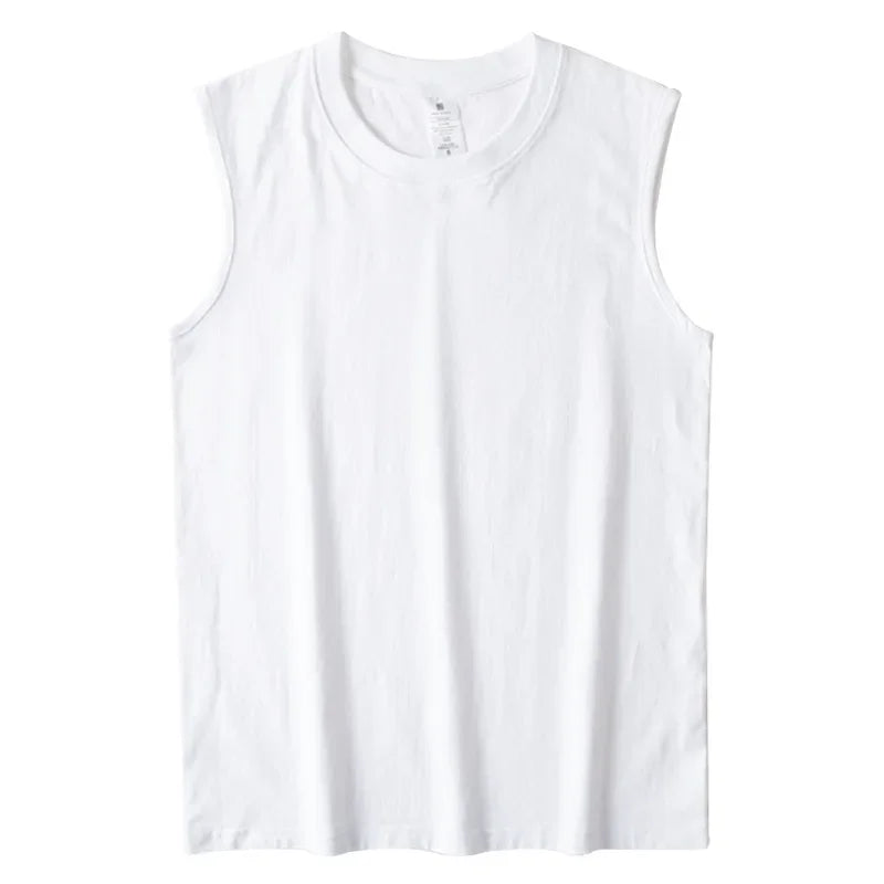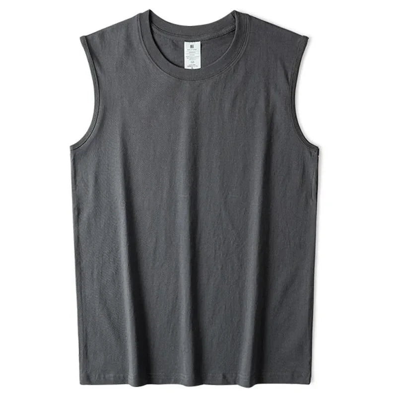 WIAOFELLAS - Summer Men's Tank Tops 230g Heavyweight Cotton Sleeveless Vest Loose Fit Casual Sports Undershirt T-Shirt Breathable & Versatile