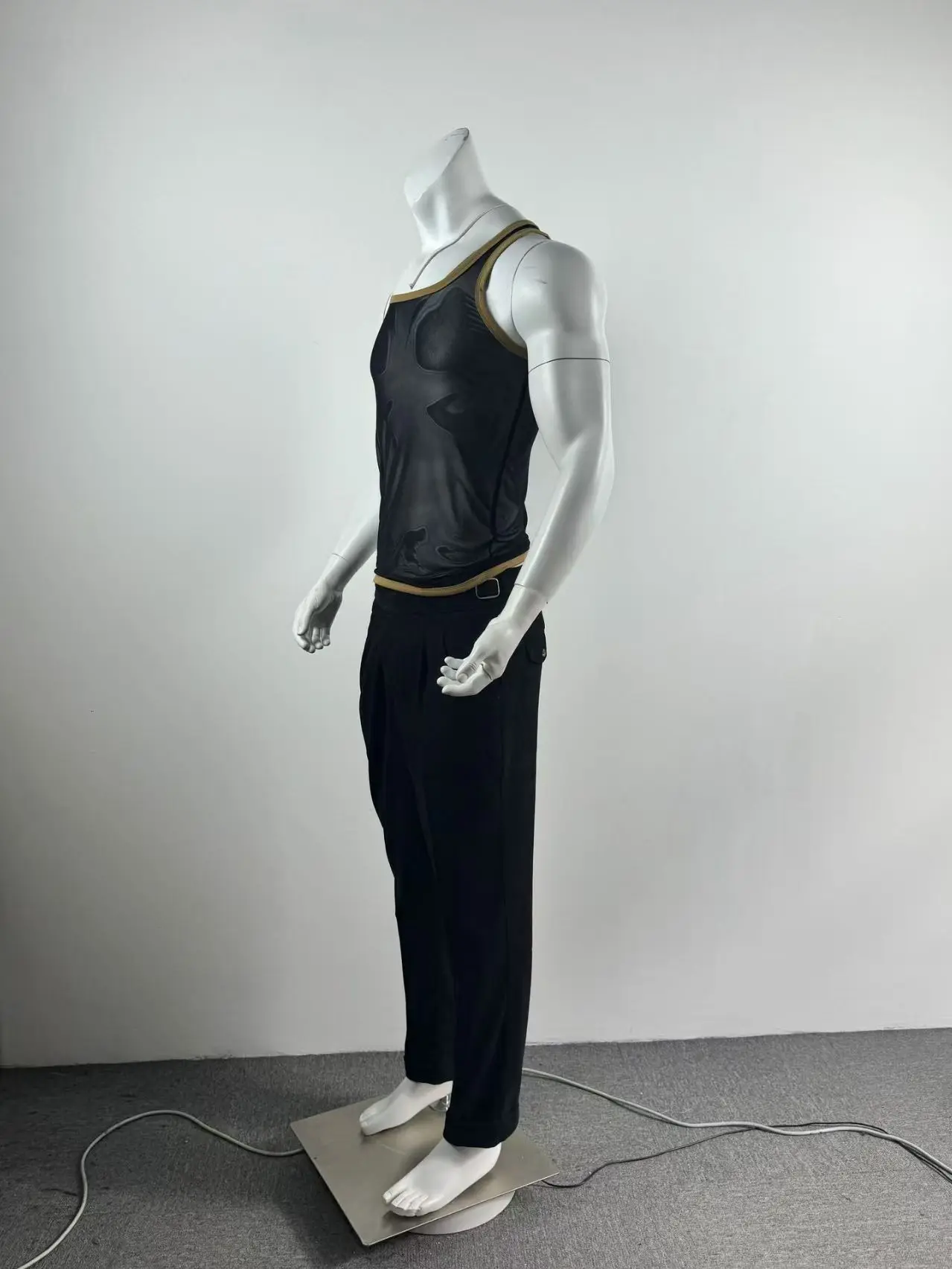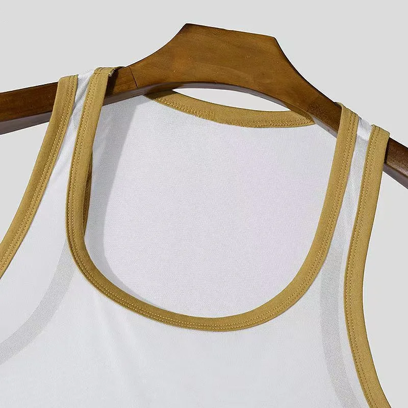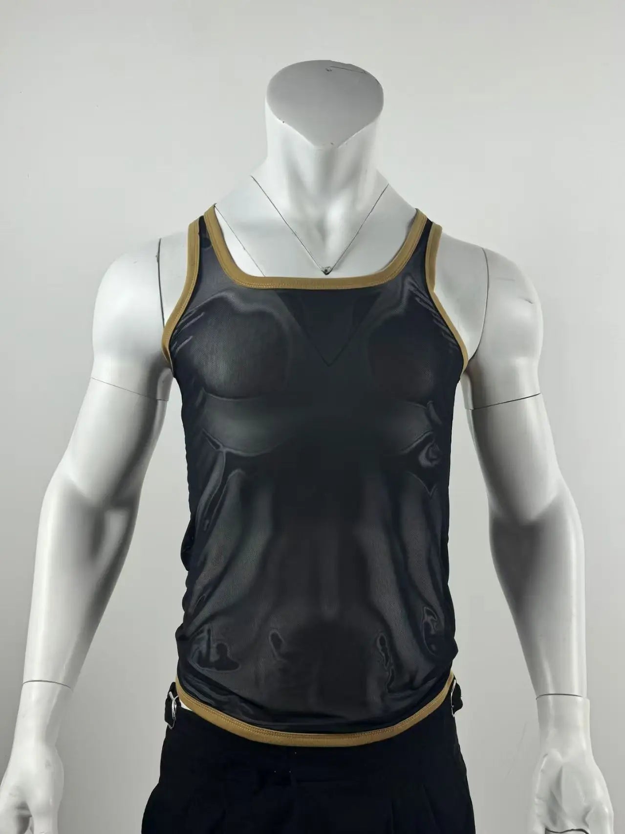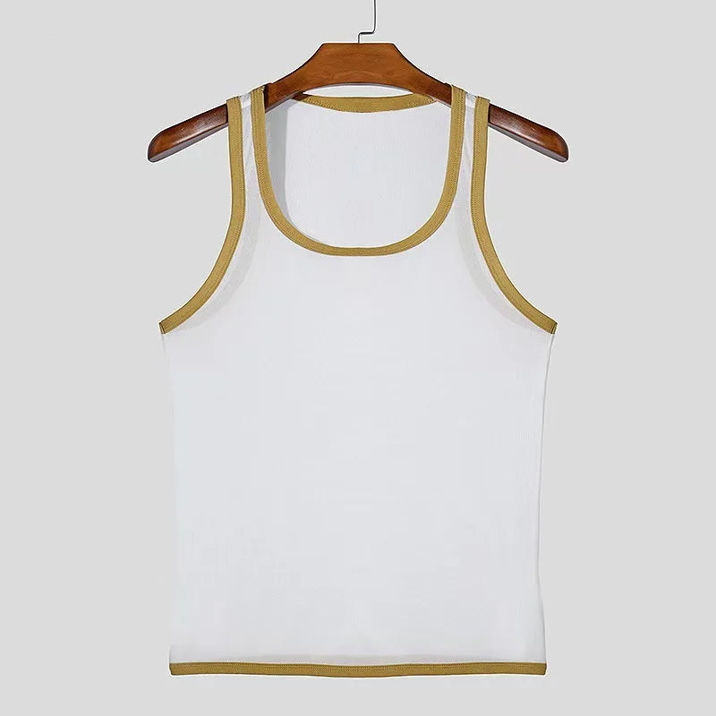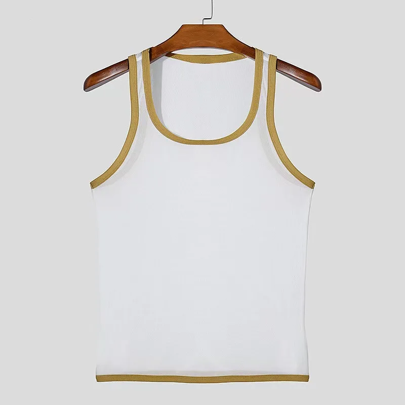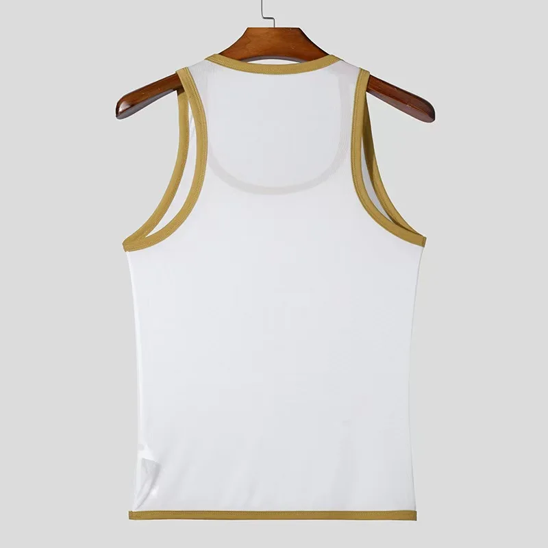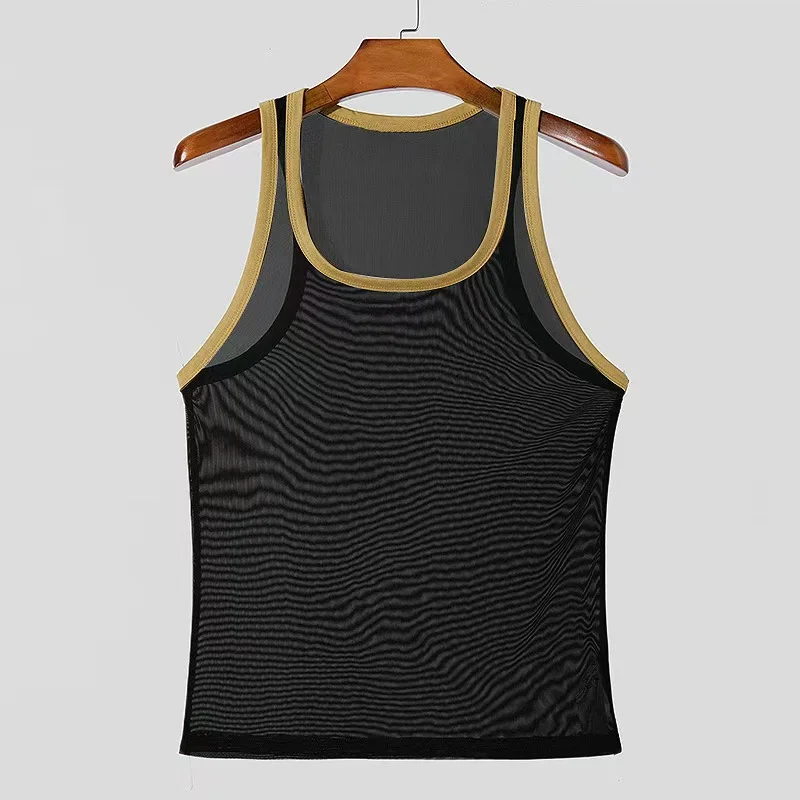 WIAOFELLAS  -  Summer New Men's Vest Fitness Tight Mesh Perspective Sexy Lightweight Tank Top Splicing Color Transparent Vest For Male Tees