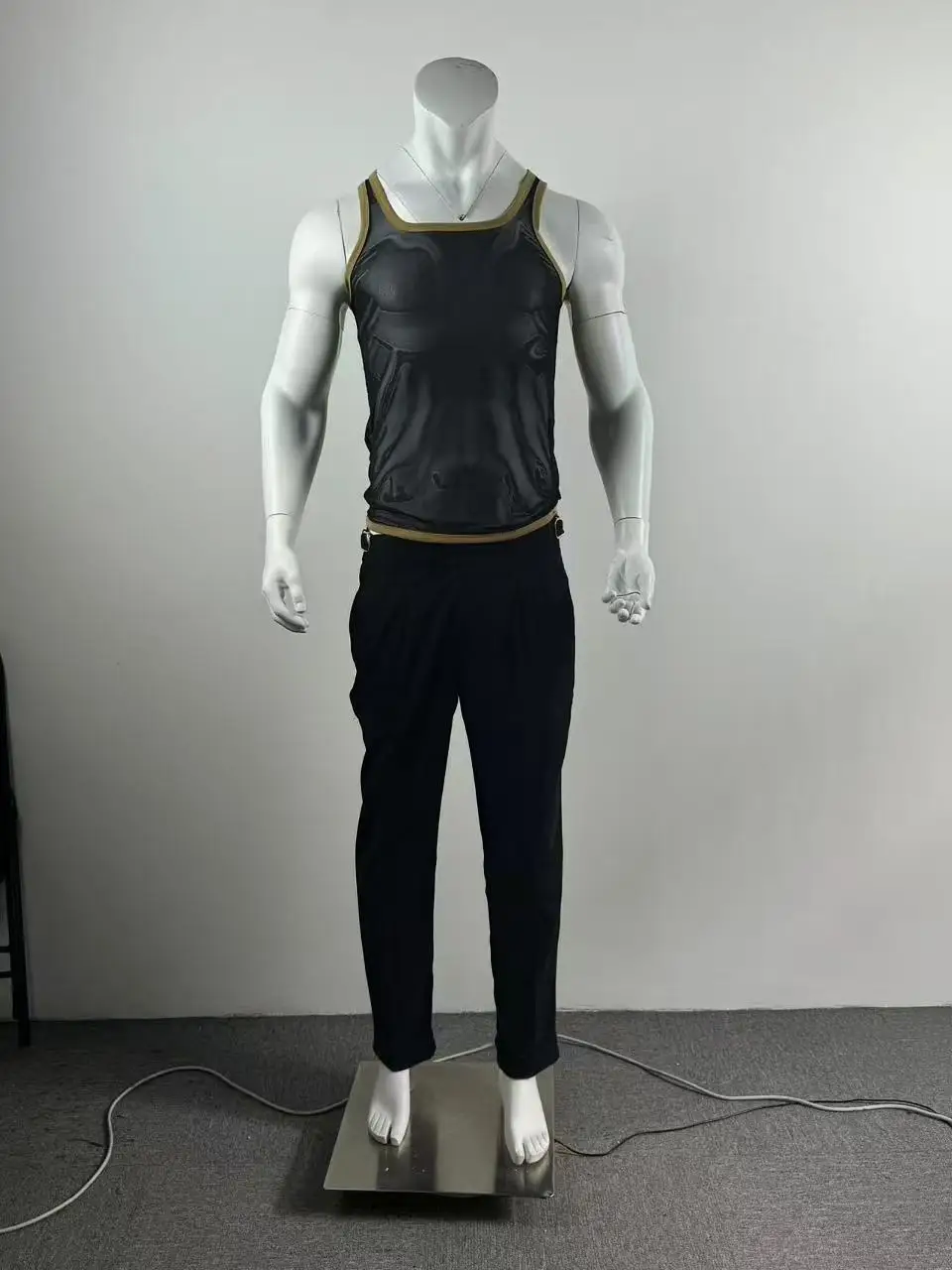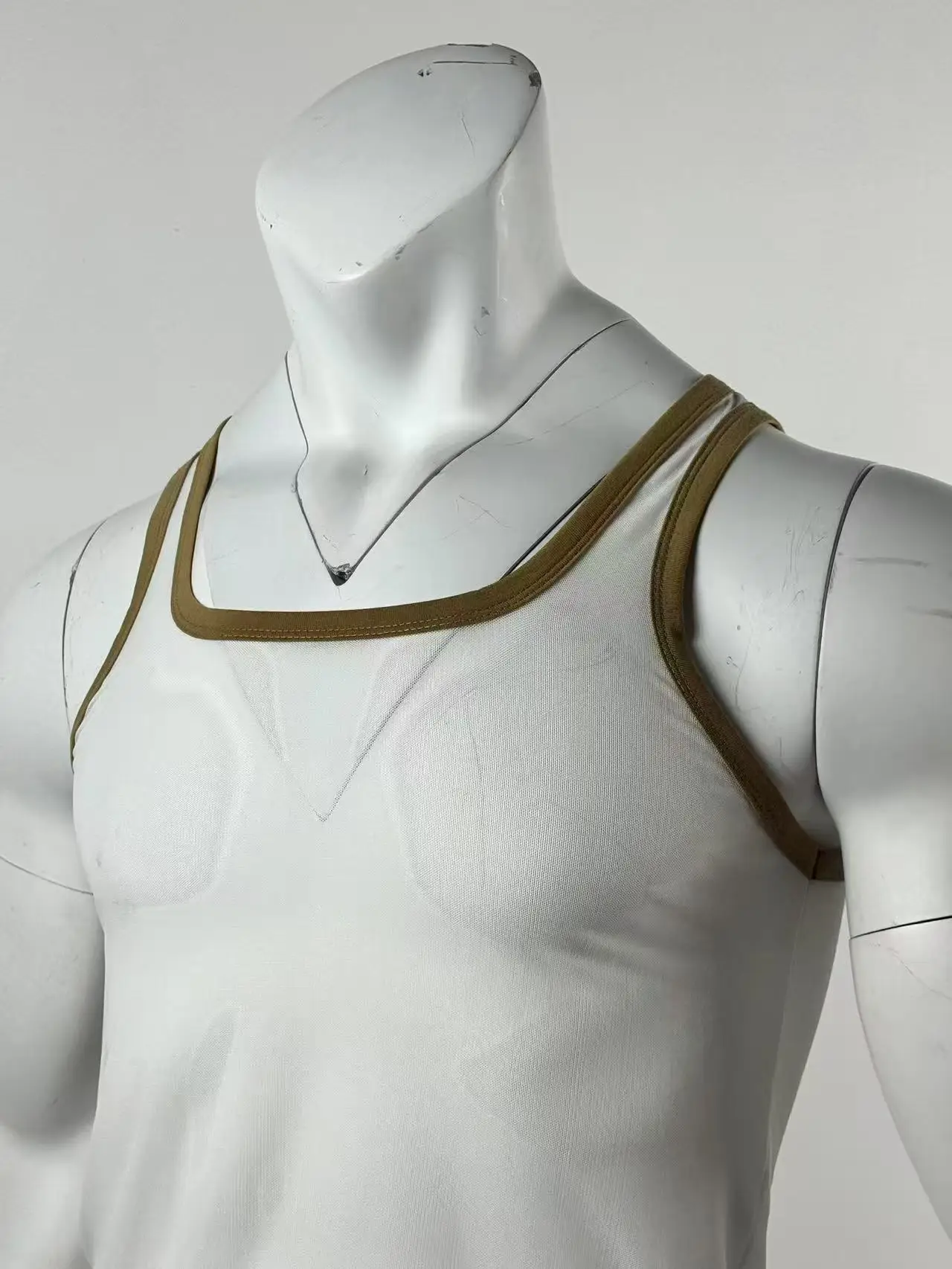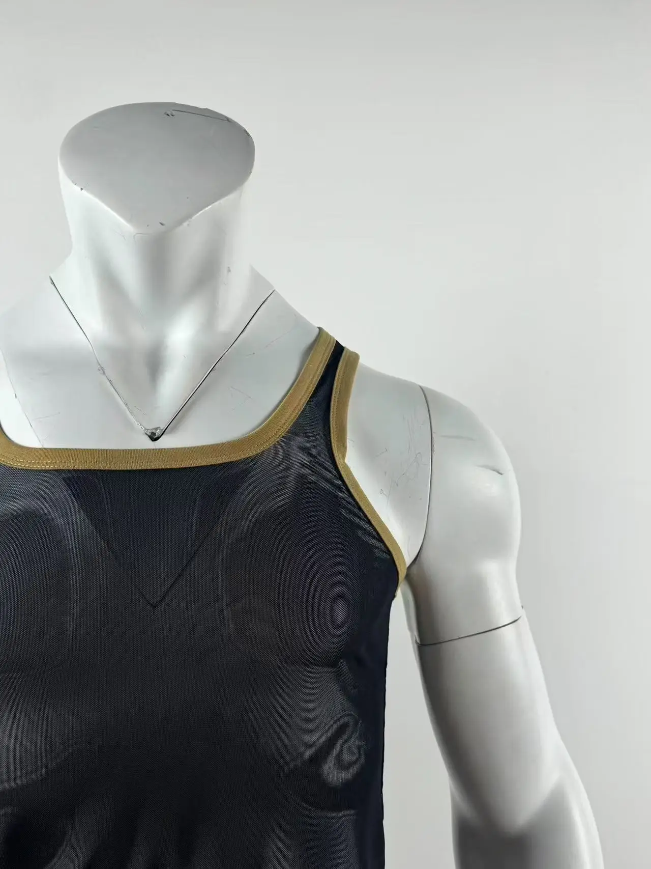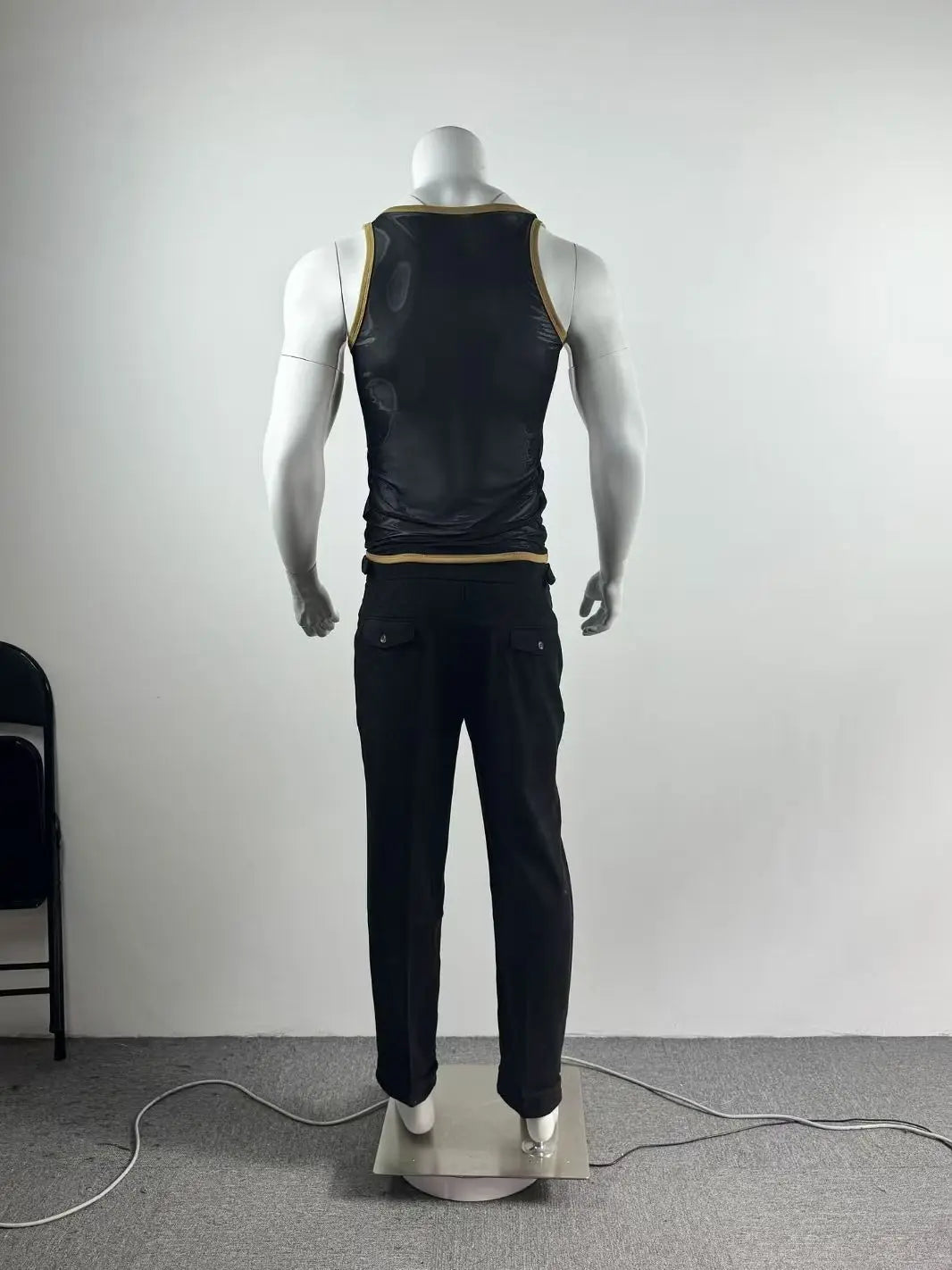 WIAOFELLAS  -  Summer New Men's Vest Fitness Tight Mesh Perspective Sexy Lightweight Tank Top Splicing Color Transparent Vest For Male Tees