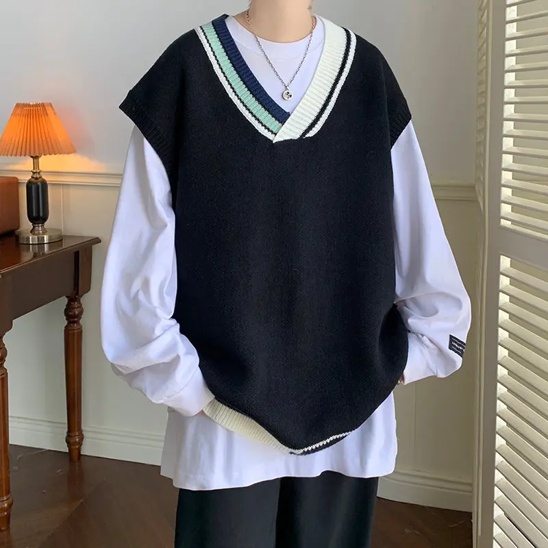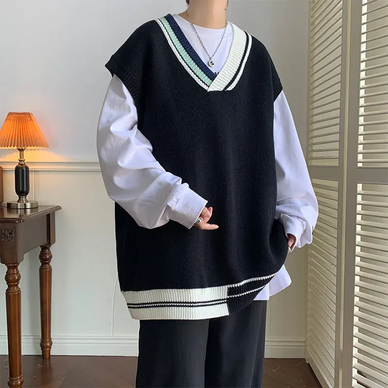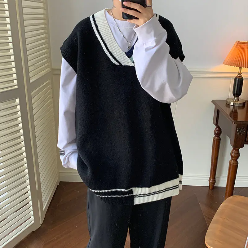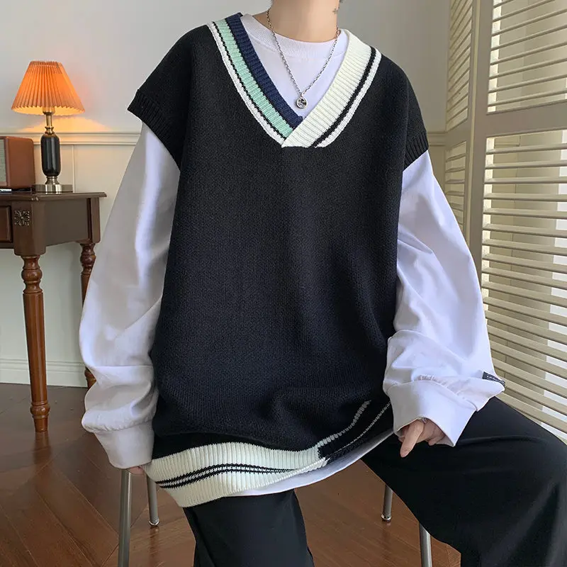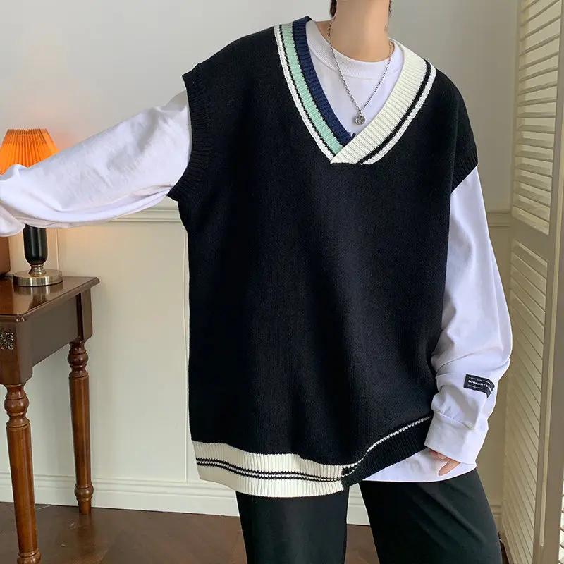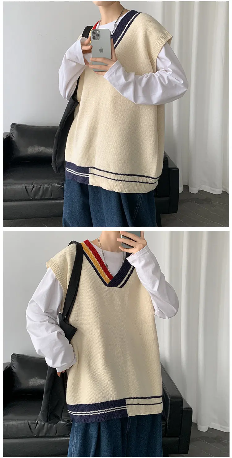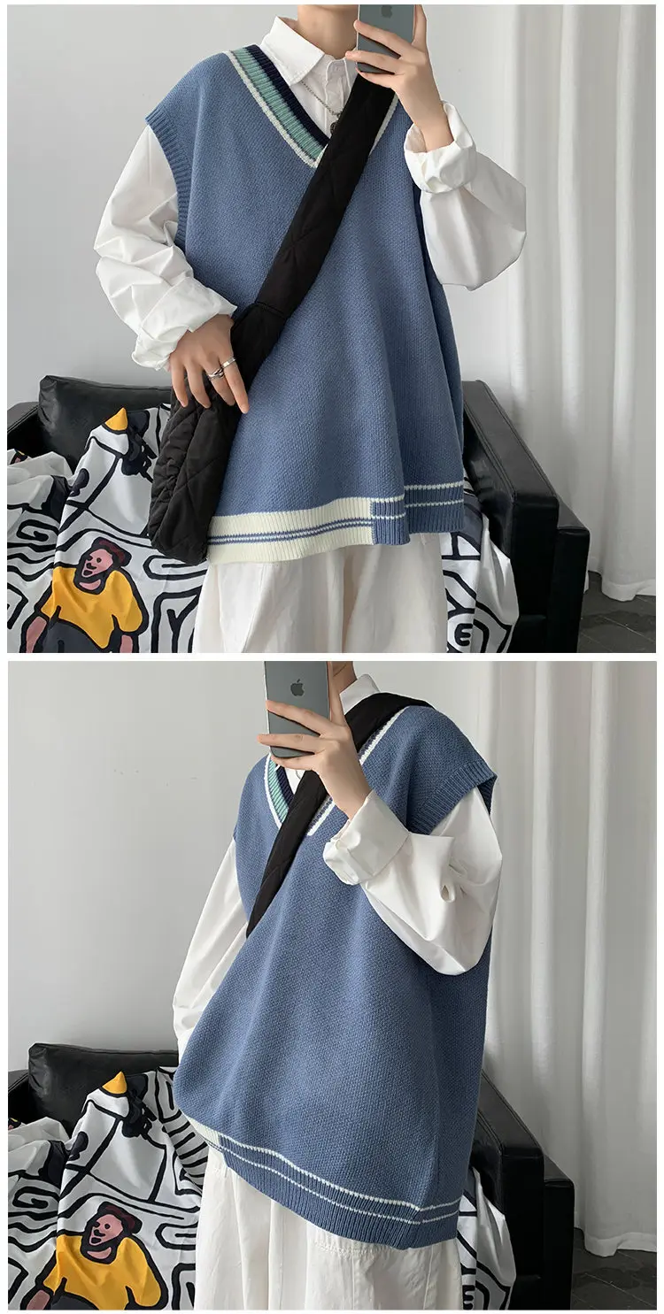 Wiaofellas  -  Winter Sweater Vest Men Warm Casual Knitted Pullover Men Oversized Korean Loose Sleeveless Sweater Mens V-neck Sweater Vest