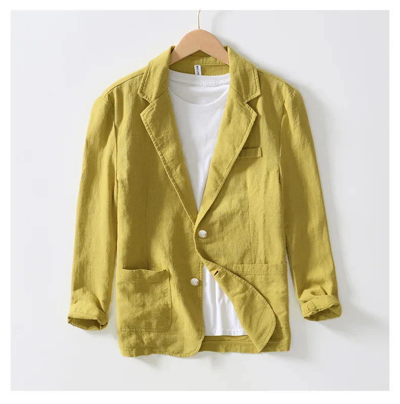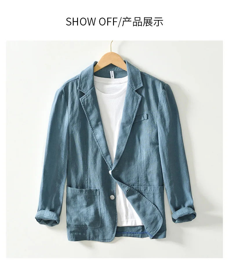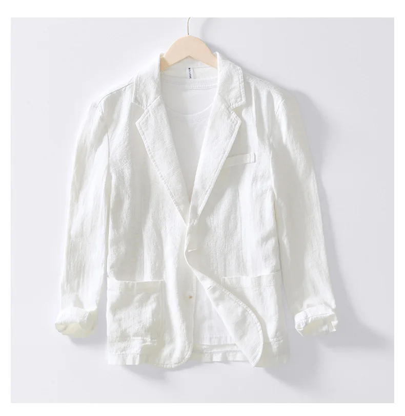Wiaofellas - 100% Linen Suit for Men Spring Summer Thin Linen Small Suit Business Casual Single West Men's Coat