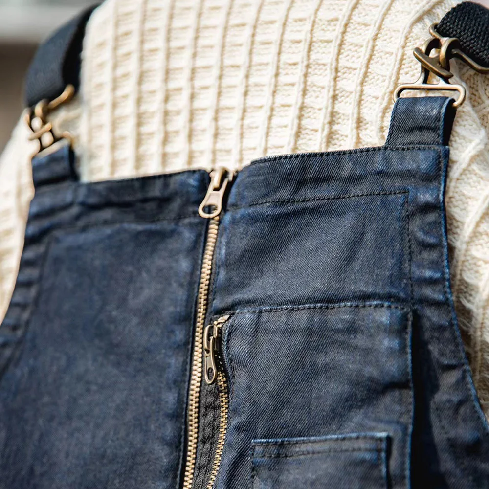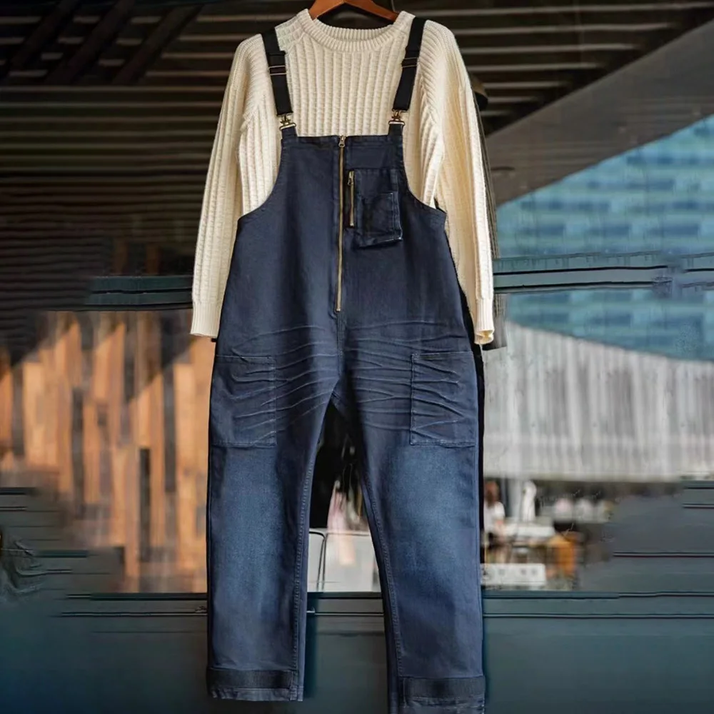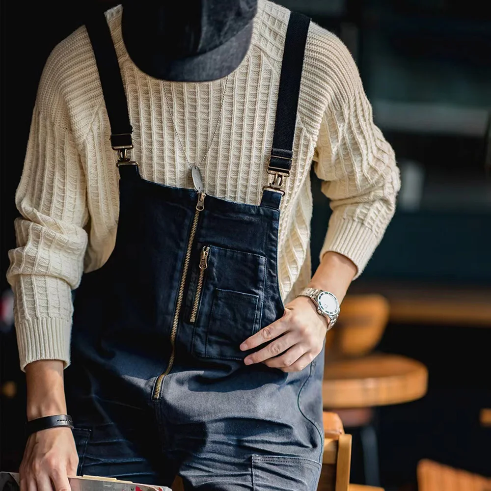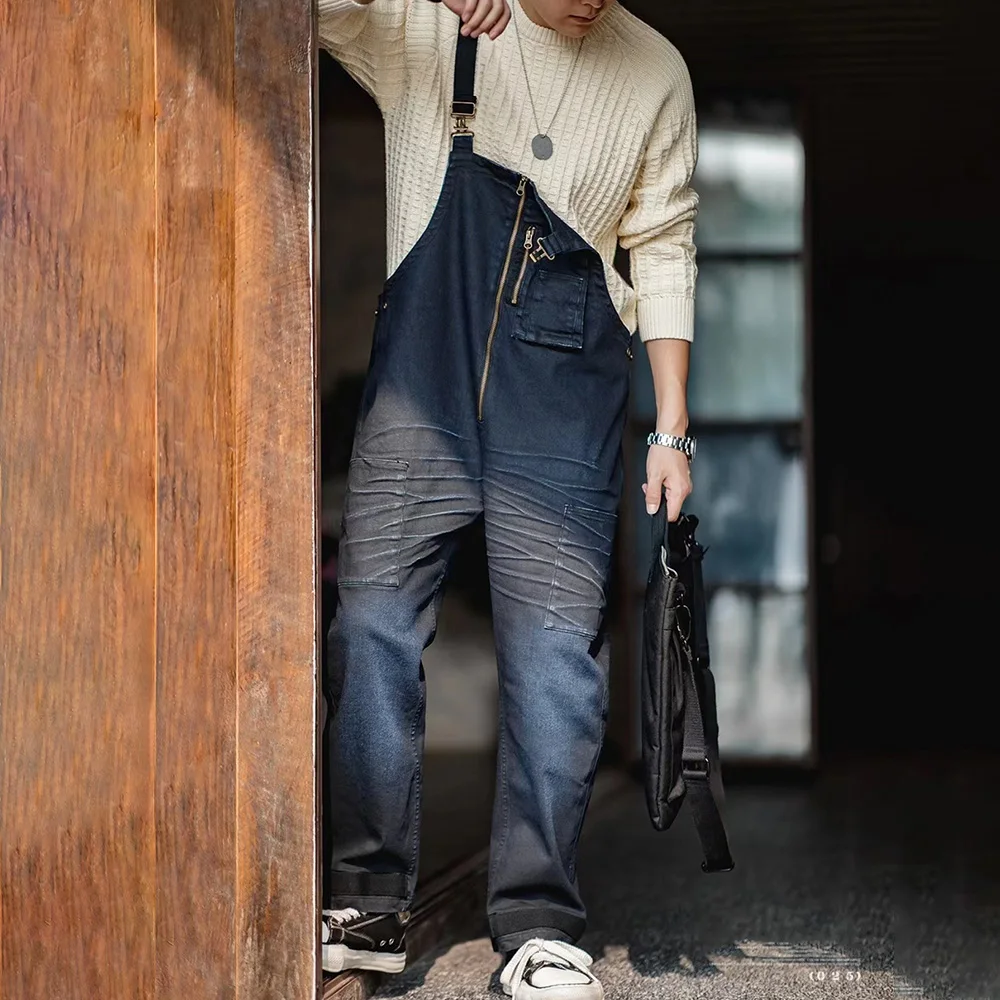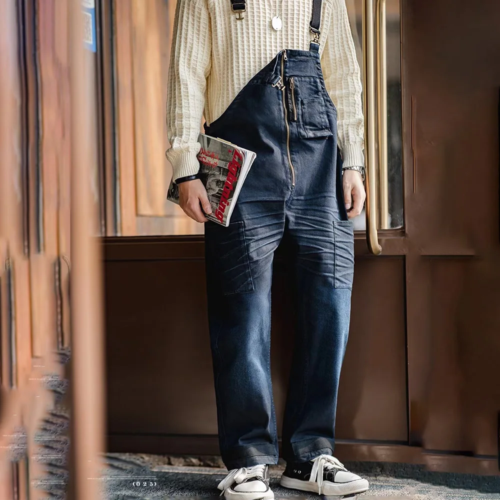 Wiaofellas - American Retro Denim Suspenders Men's Loose Street Casual Fashion Ami Khaki All-match Straight Tooling One-piece Suspenders