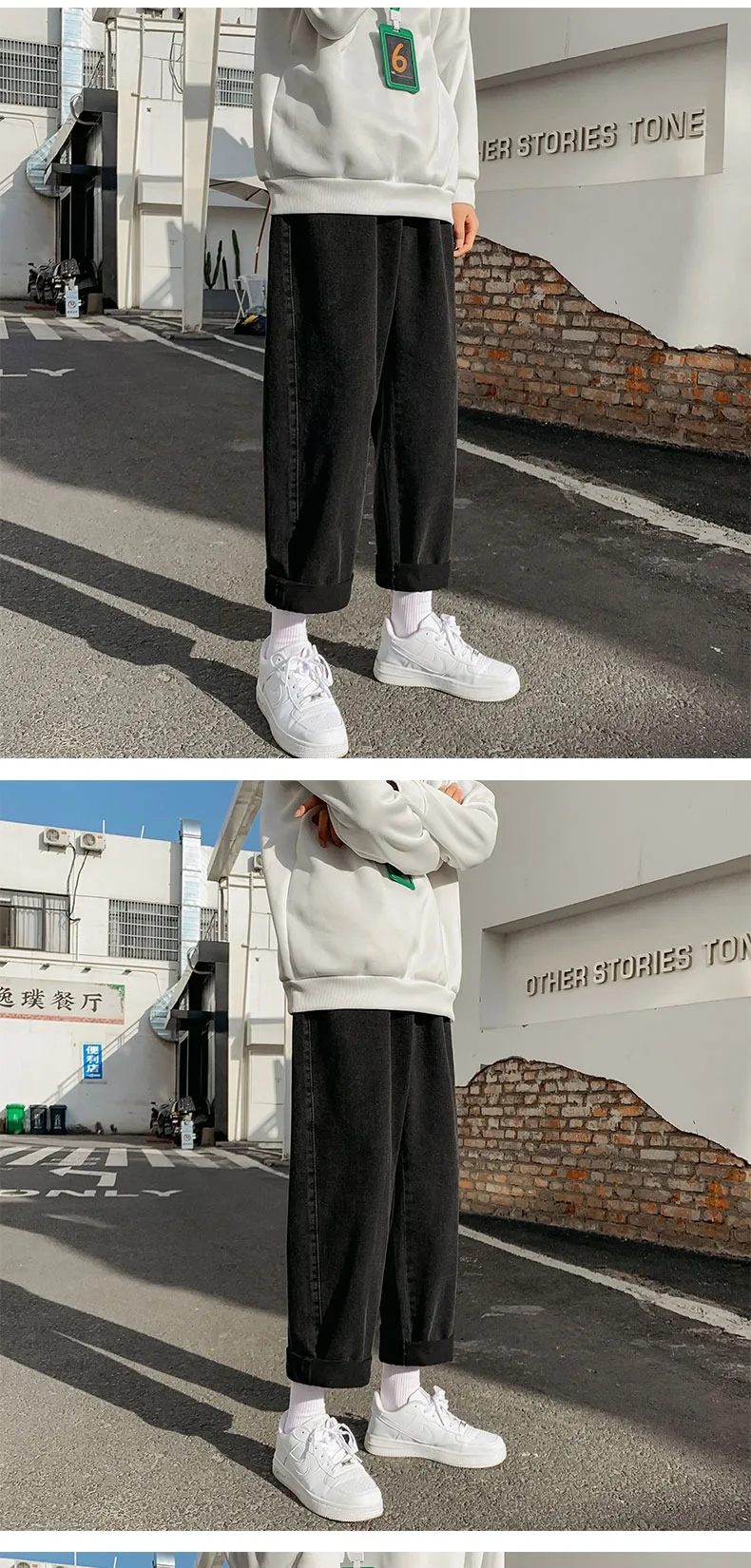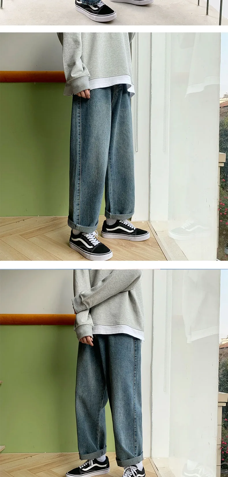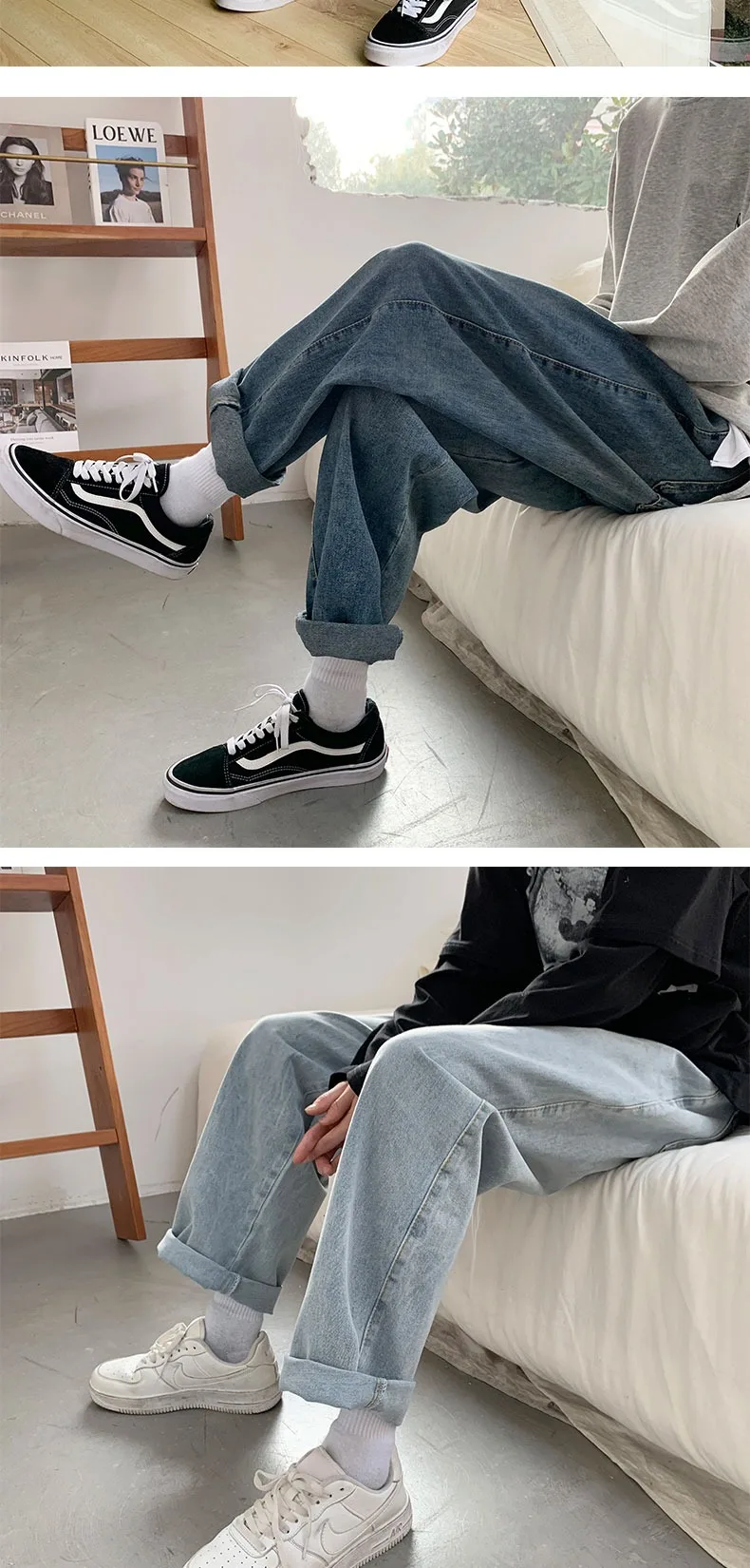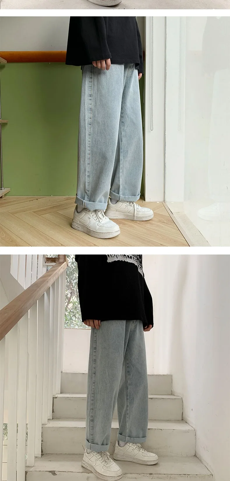 Wiaofellas - Men's Blue Loose Jeans Street Casual Jeans Black Straight Wide Leg Pants Brand Men's Trousers