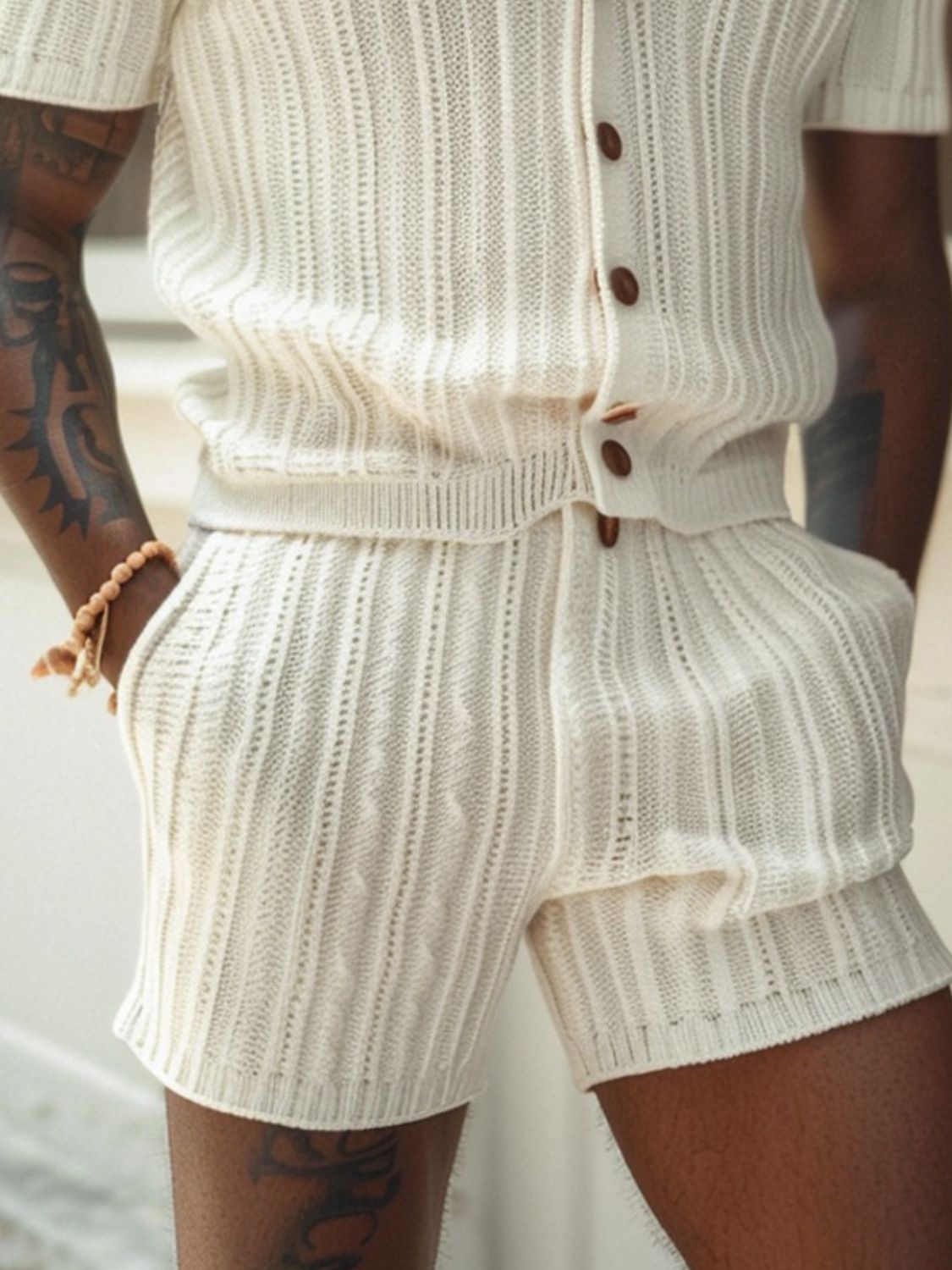 WIAOFELLAS - Men's Plus Size Button Down Short Sleeve Top and Shorts Set
