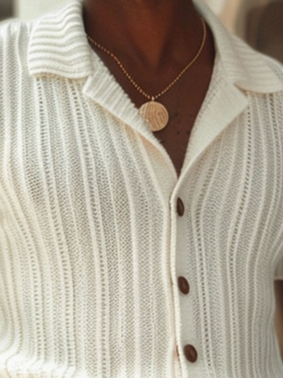 Wiaofellas Summer Short Sleeve Knitted Polo Shirt Casual Men Button-up Turn-down Collar Tops Mens Fashion Striped Polos Man Streetwear