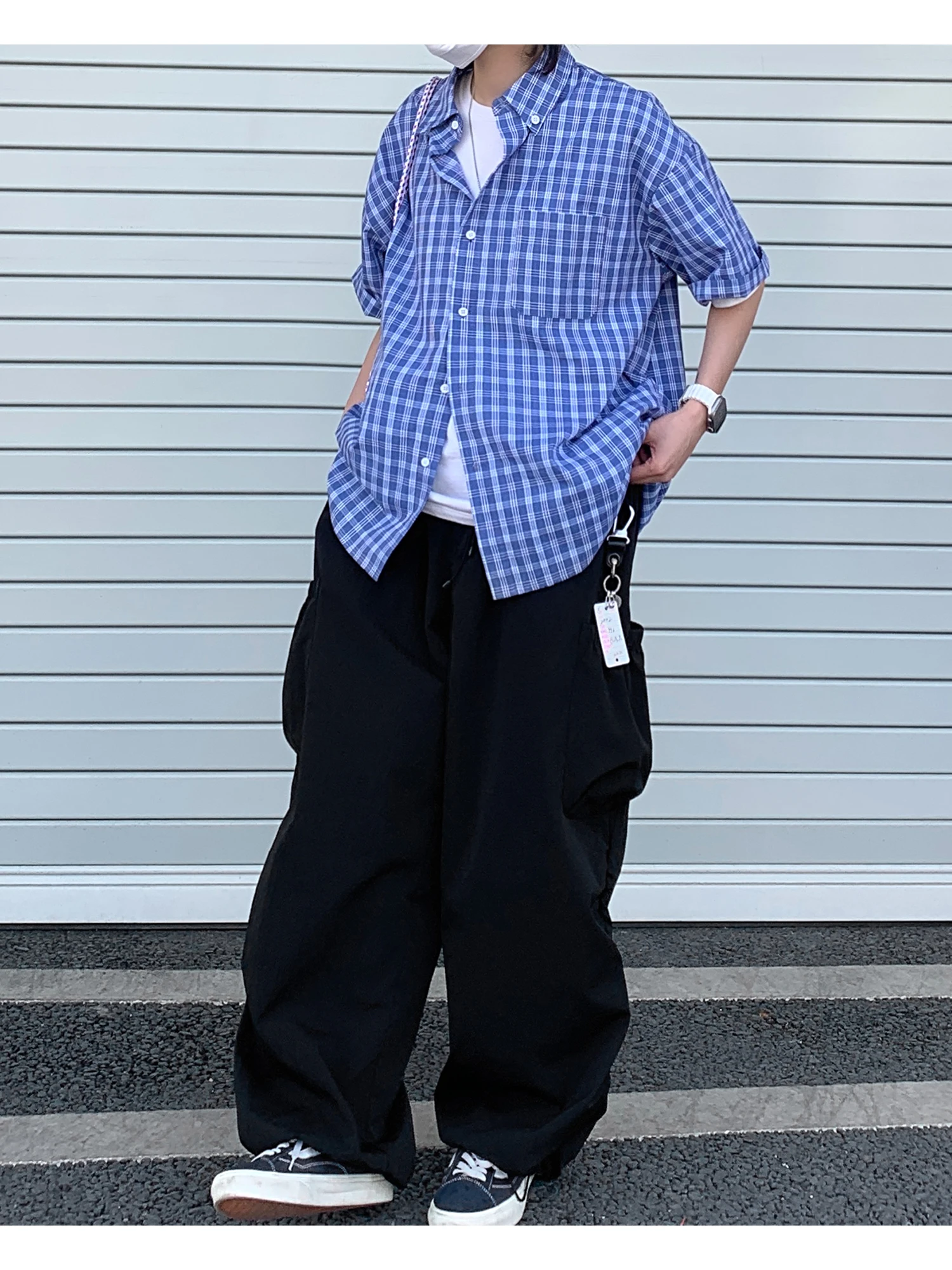 Wiaofellas - New Plaid Casual Short-sleeved Shirt Men, Retro Harajuku Style Loose and Casual Breathable Lightweight Short Sleeves Oversized