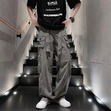 Wiaofellas - Trousers Man Wide Multi Pocket Cargo Pants For Men Grey Straight Multipockets Large Size With Comfortable Aesthetic Emo Cotton