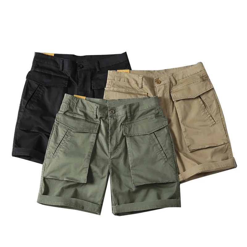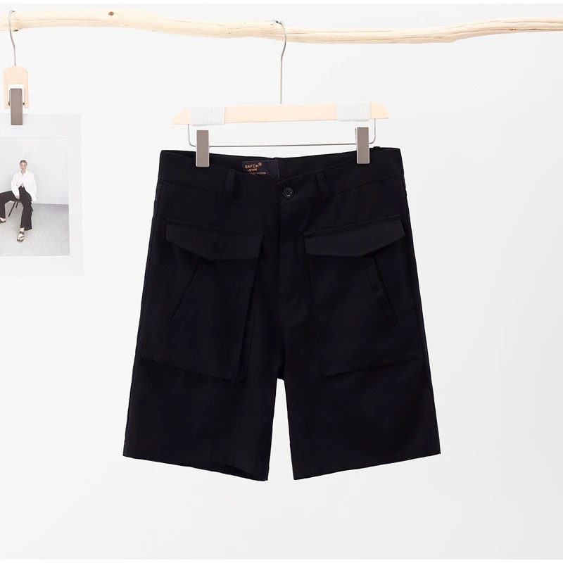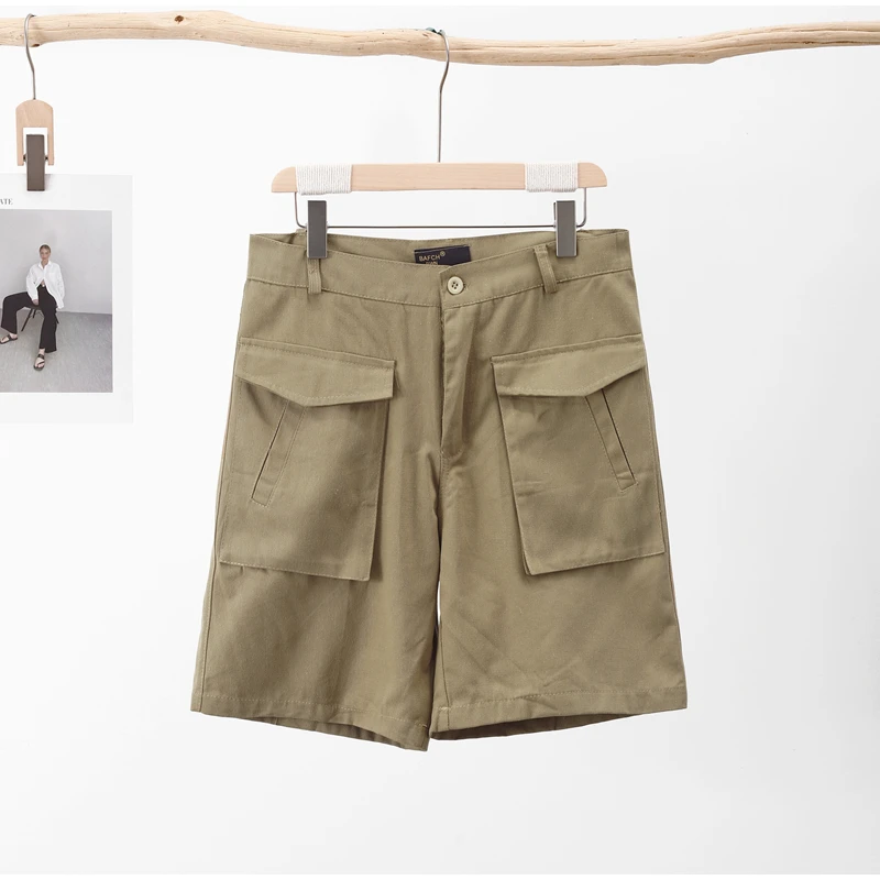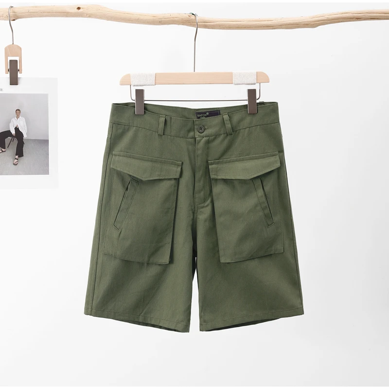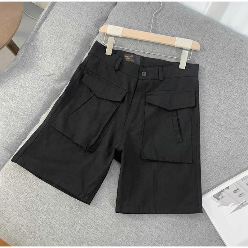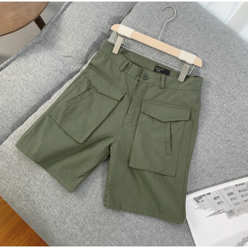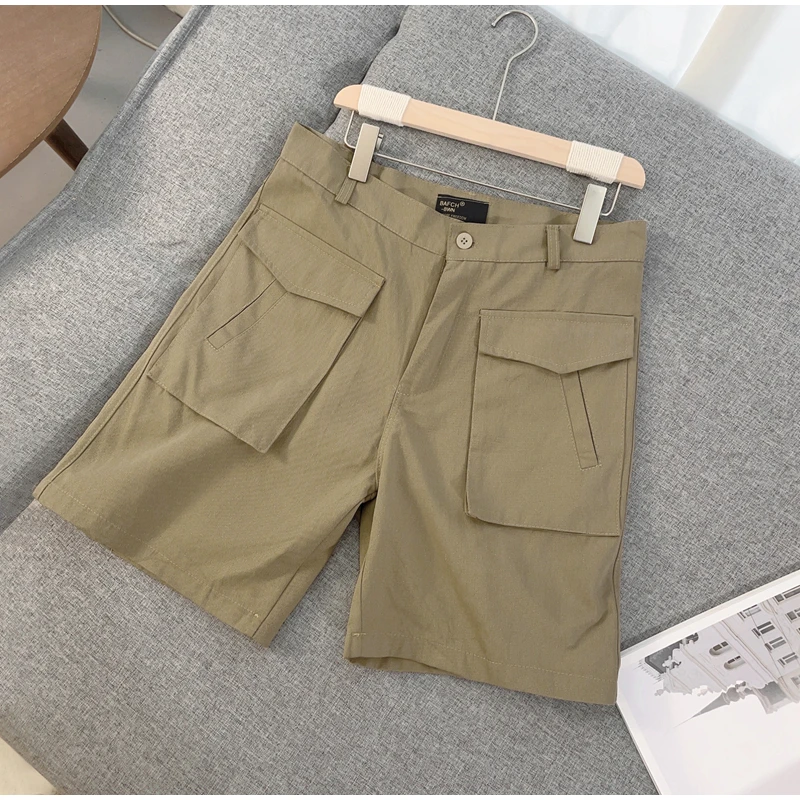 WIAOFELLAS  -  100% Cotton Solid Pocket Loose Shorts For Men Zipper Button Soft Comfortable Men's Clothing Summer Knee Length Bottom Male