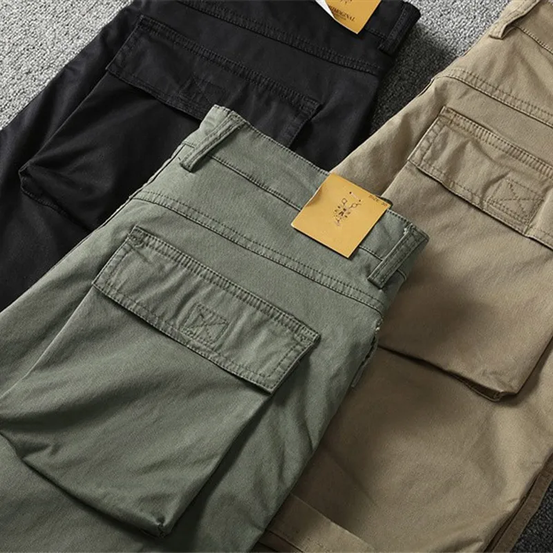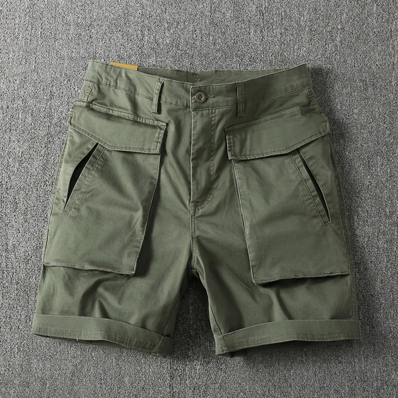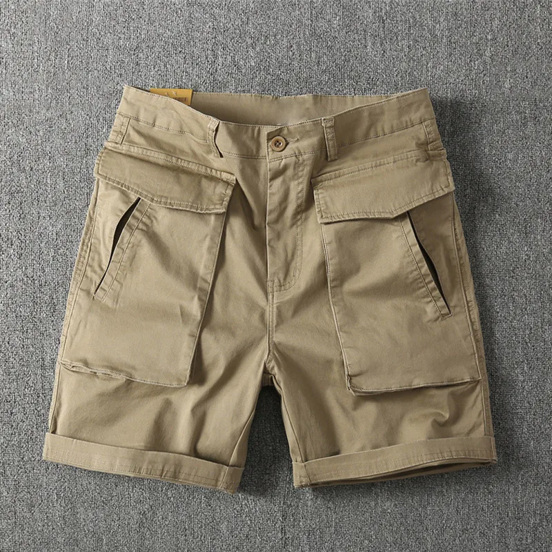 WIAOFELLAS - 100% Cotton Solid Pocket Loose Shorts For Men Zipper Button Soft Comfortable Men's Clothing Summer Knee Length Bottom Male
