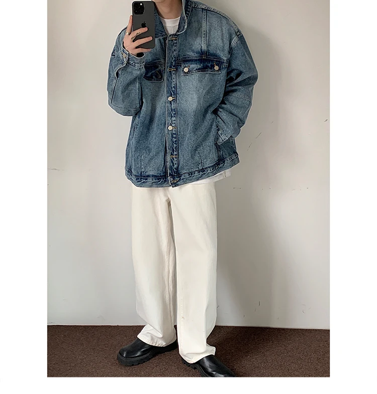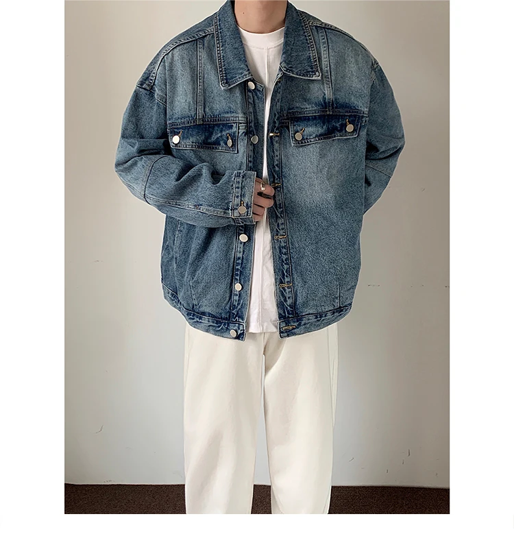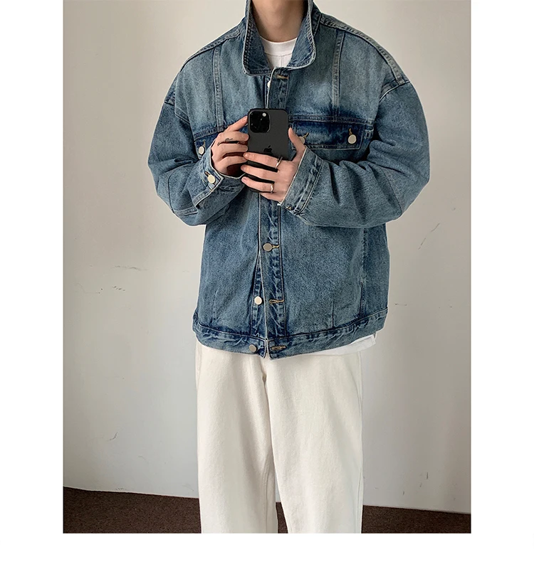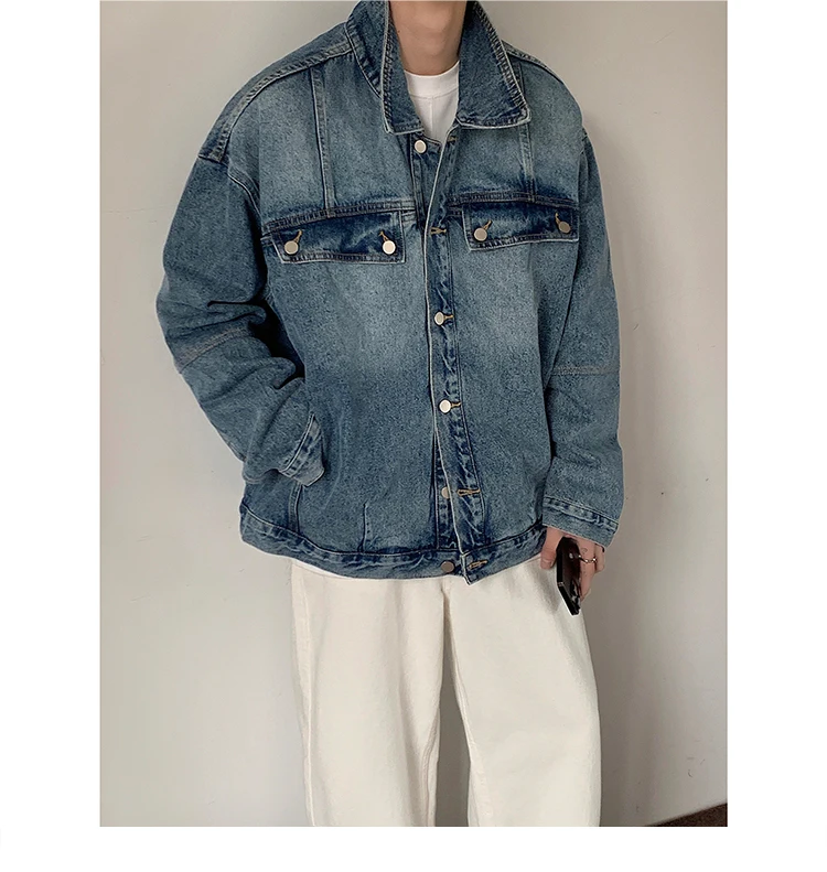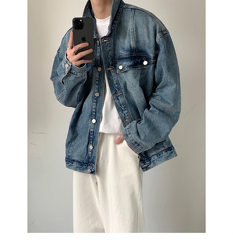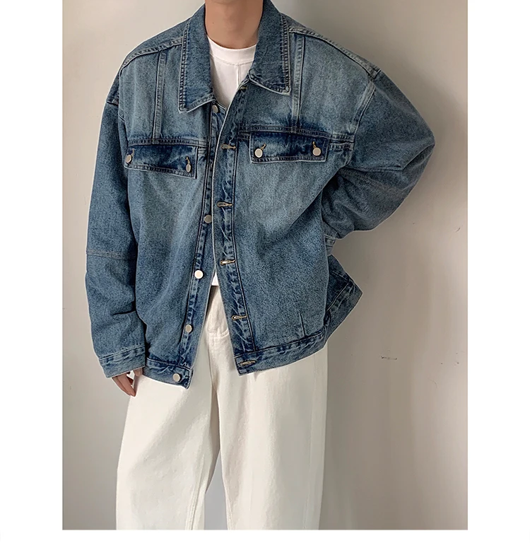Wiaofellas Autumn Blue Denim Jacket Men Fashion Retro Pocket Denim Jackets Mens Streetwear Korean Loose Hip Hop Bomber Jacket Men Oversized