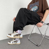 Wiaofellas Kpop Khaki Cargo Pants Women Low Waist Sweatpants Drawstring Pockets Straight Pants Men Y2k Wide Leg Trousers Korean Parachute