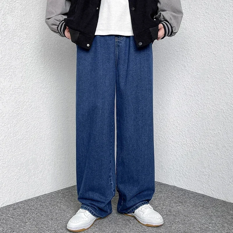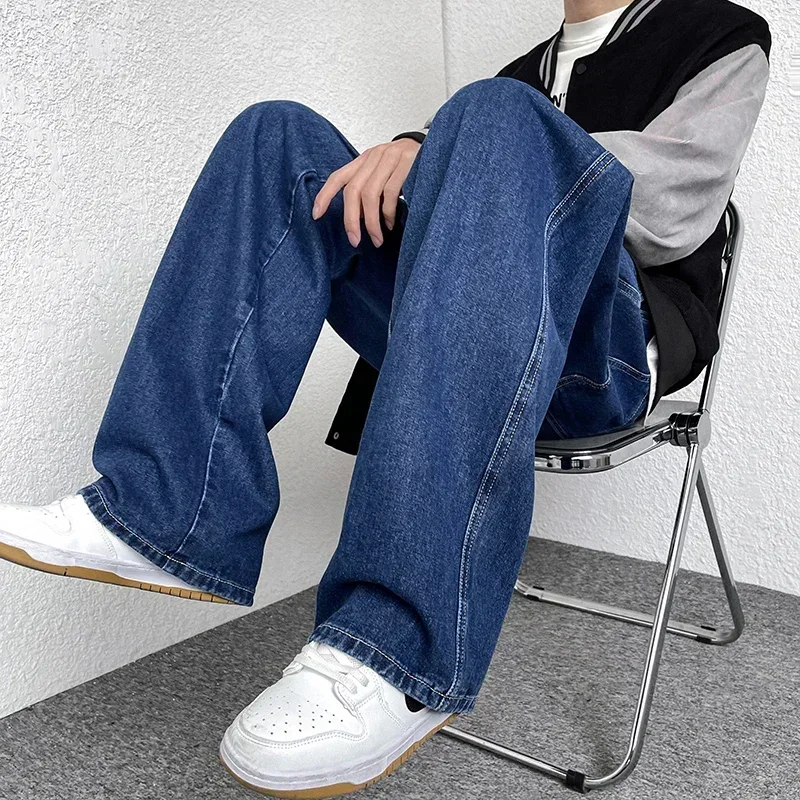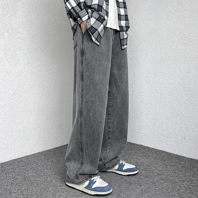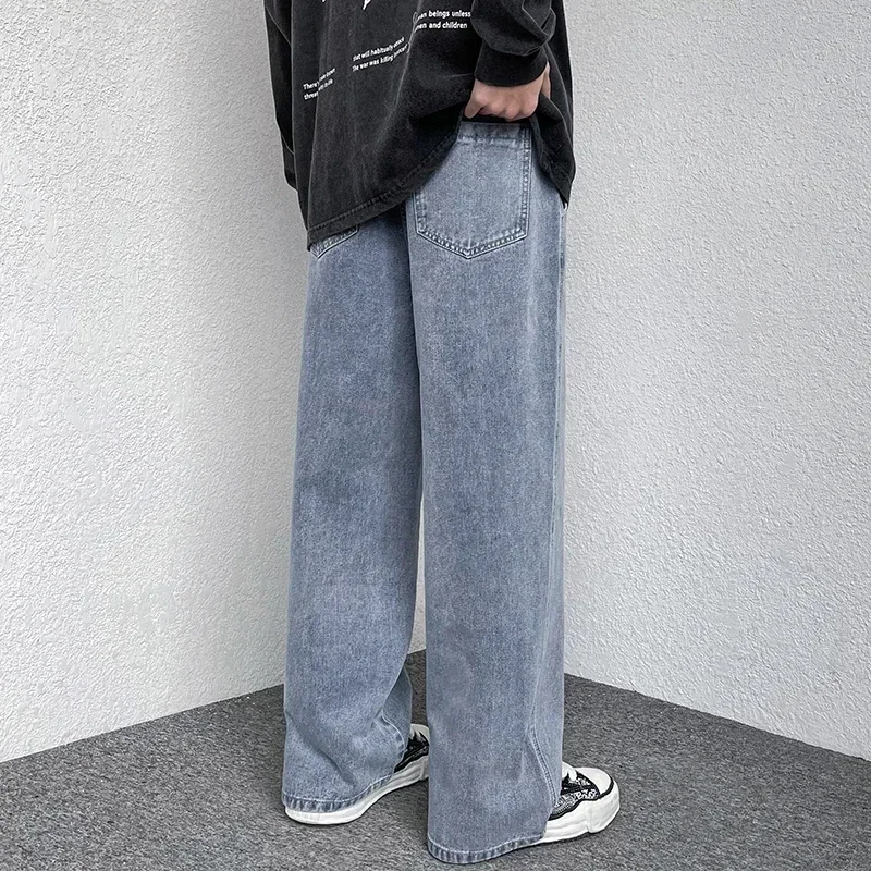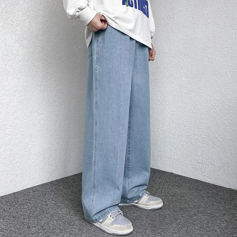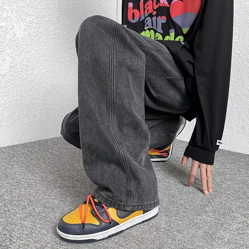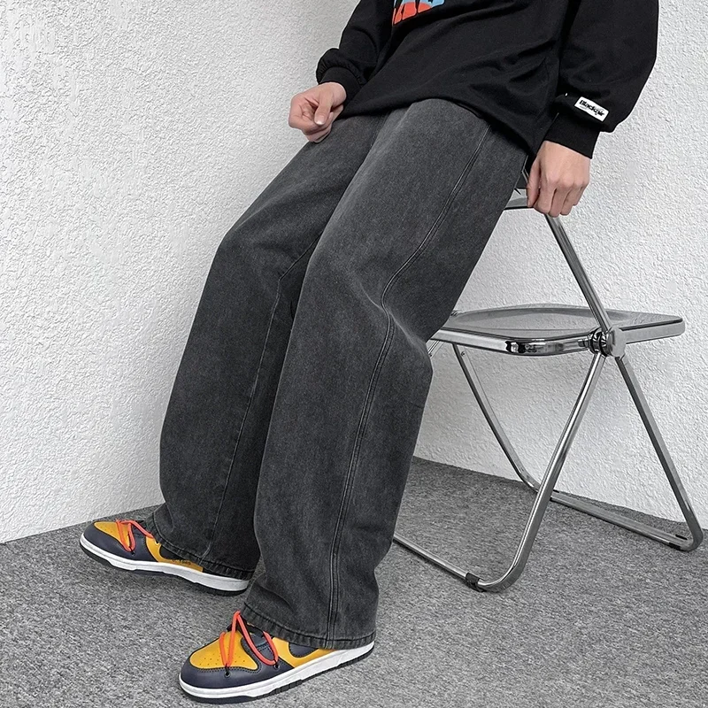 Wiaofellas - Men's Baggy Jeans Fashion Straight Leg Wide Leg Casual Trousers Street Loose Four Seasons Denim Pants Grey Blue Black 3XL