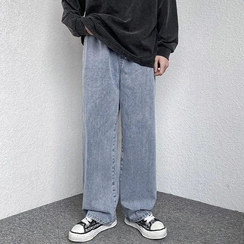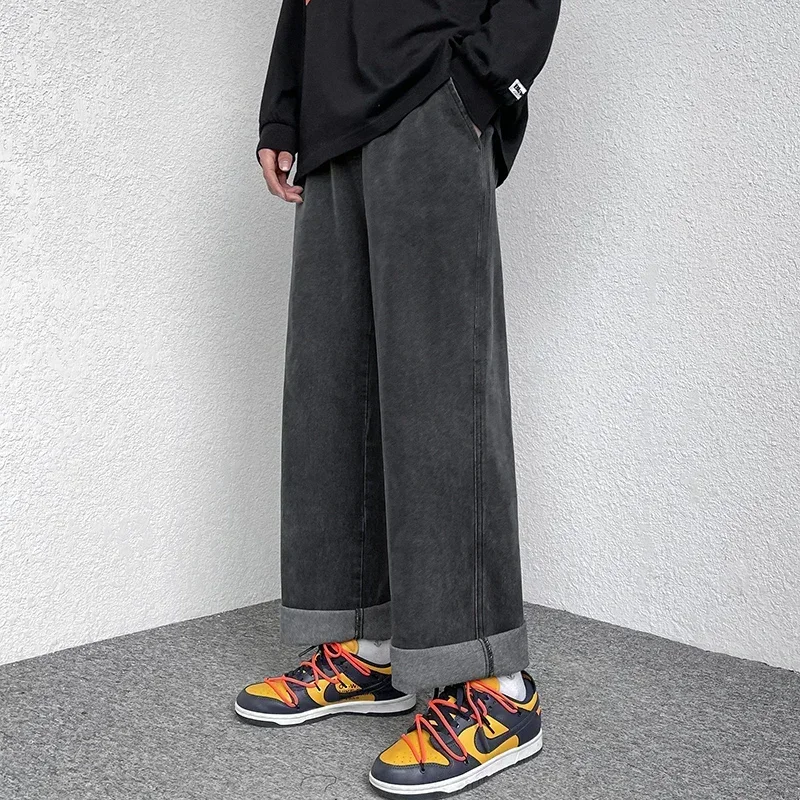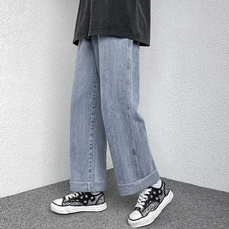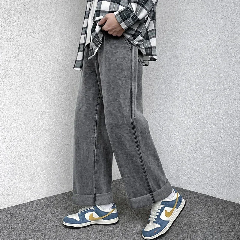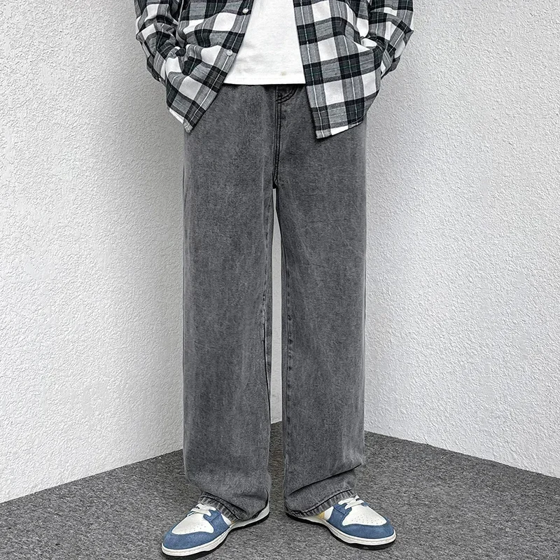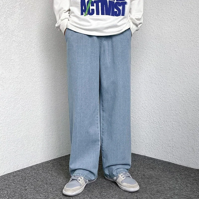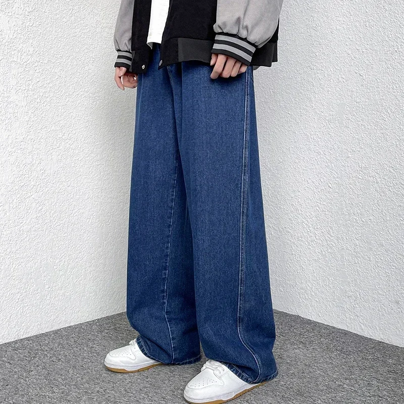 Wiaofellas - Men's Baggy Jeans Fashion Straight Leg Wide Leg Casual Trousers Street Loose Four Seasons Denim Pants Grey Blue Black 3XL