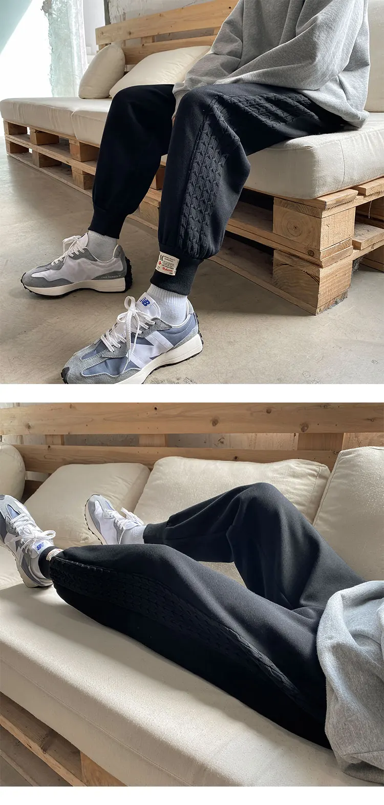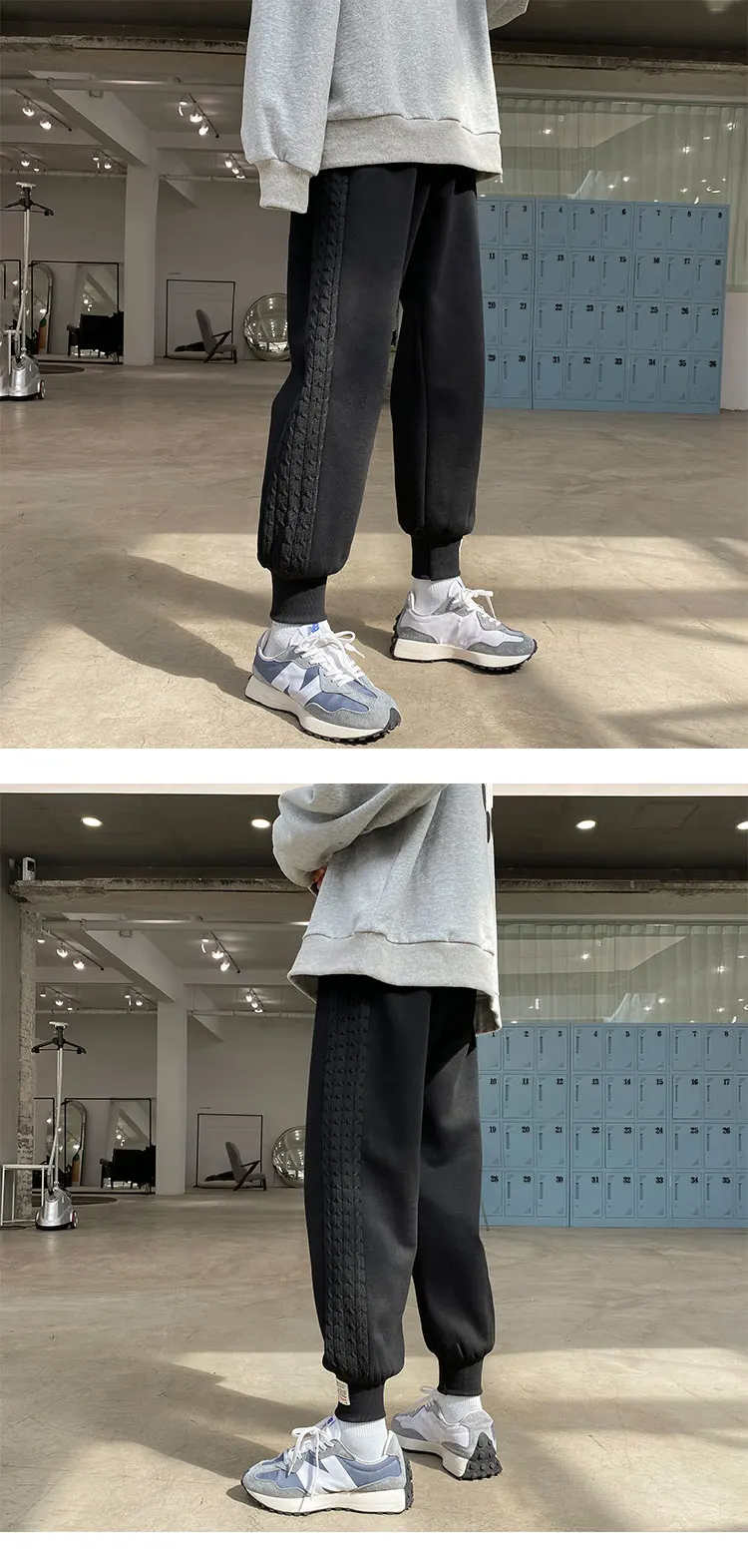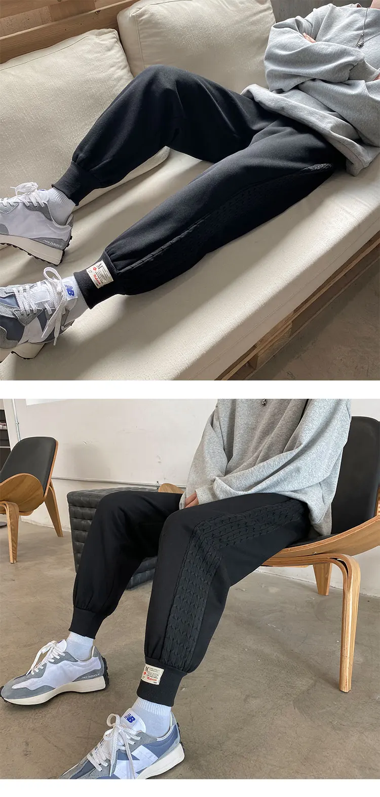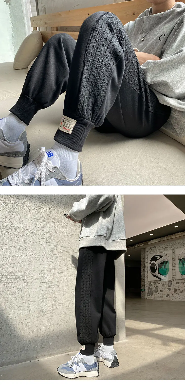 Wiaofellas - men's new knitted stitching / plus fleece trousers