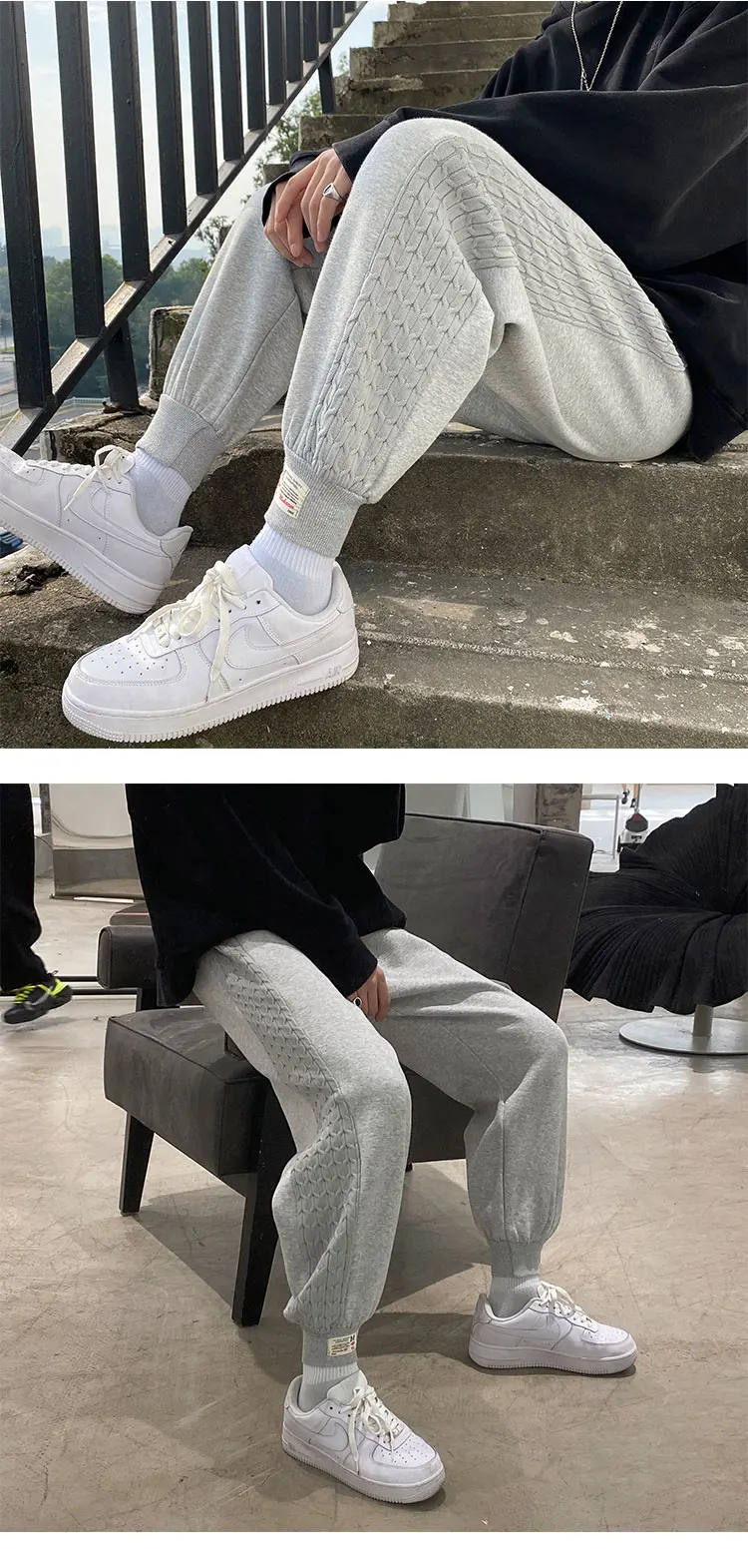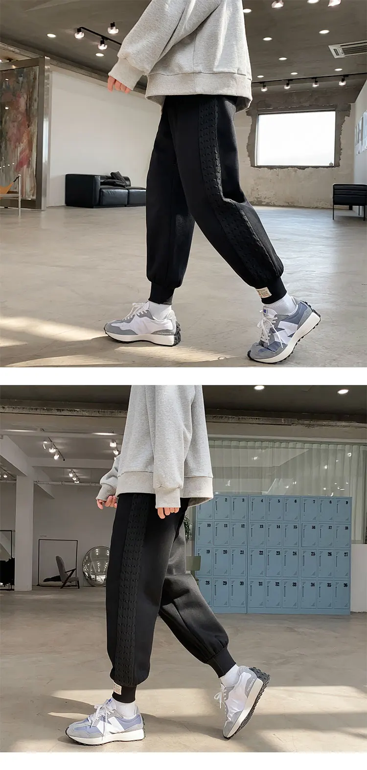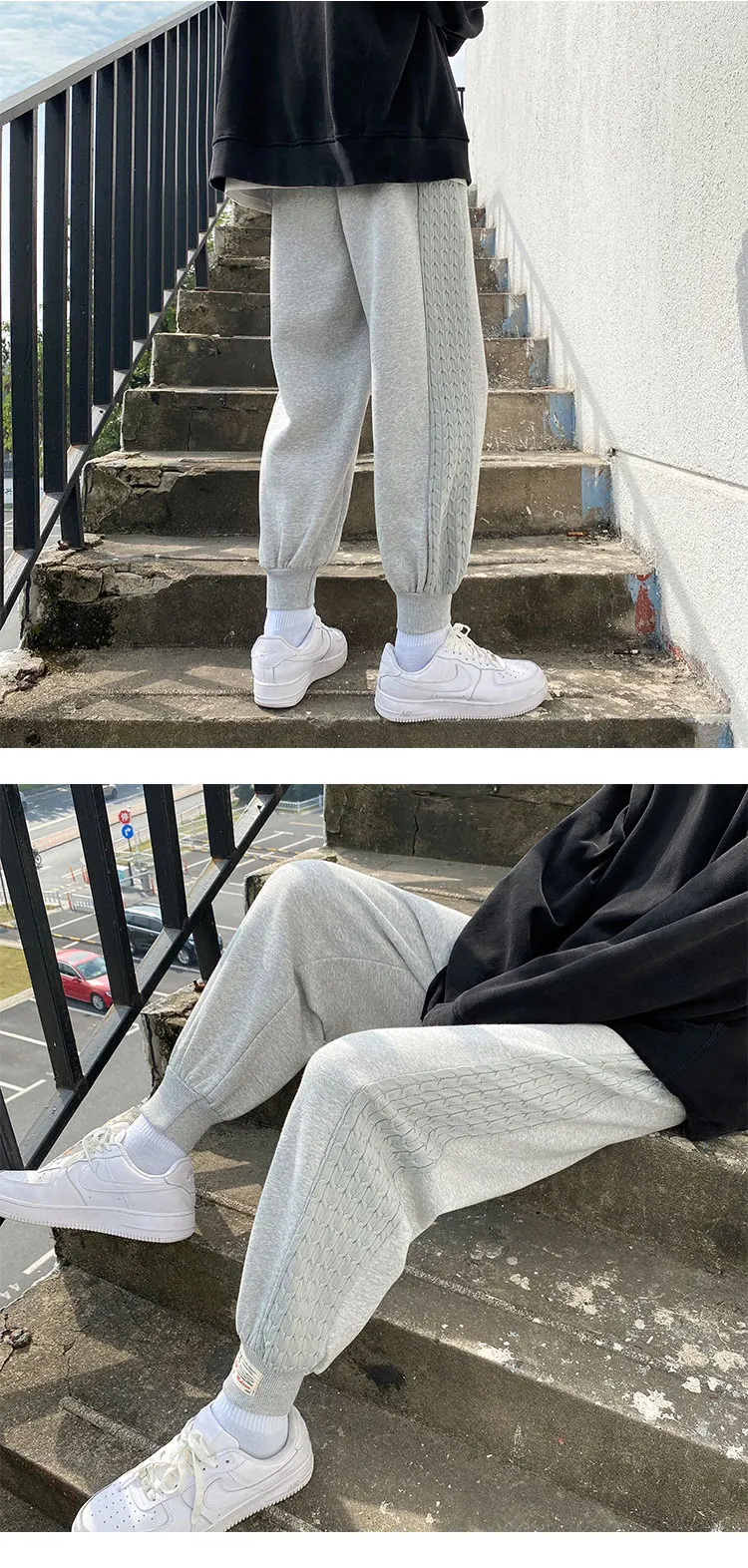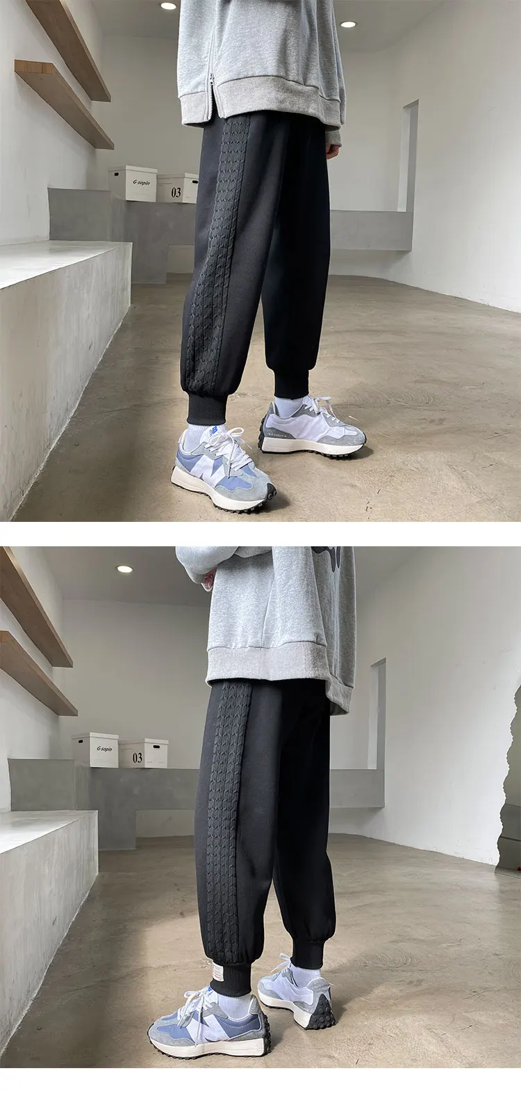 Wiaofellas - men's new knitted stitching / plus fleece trousers