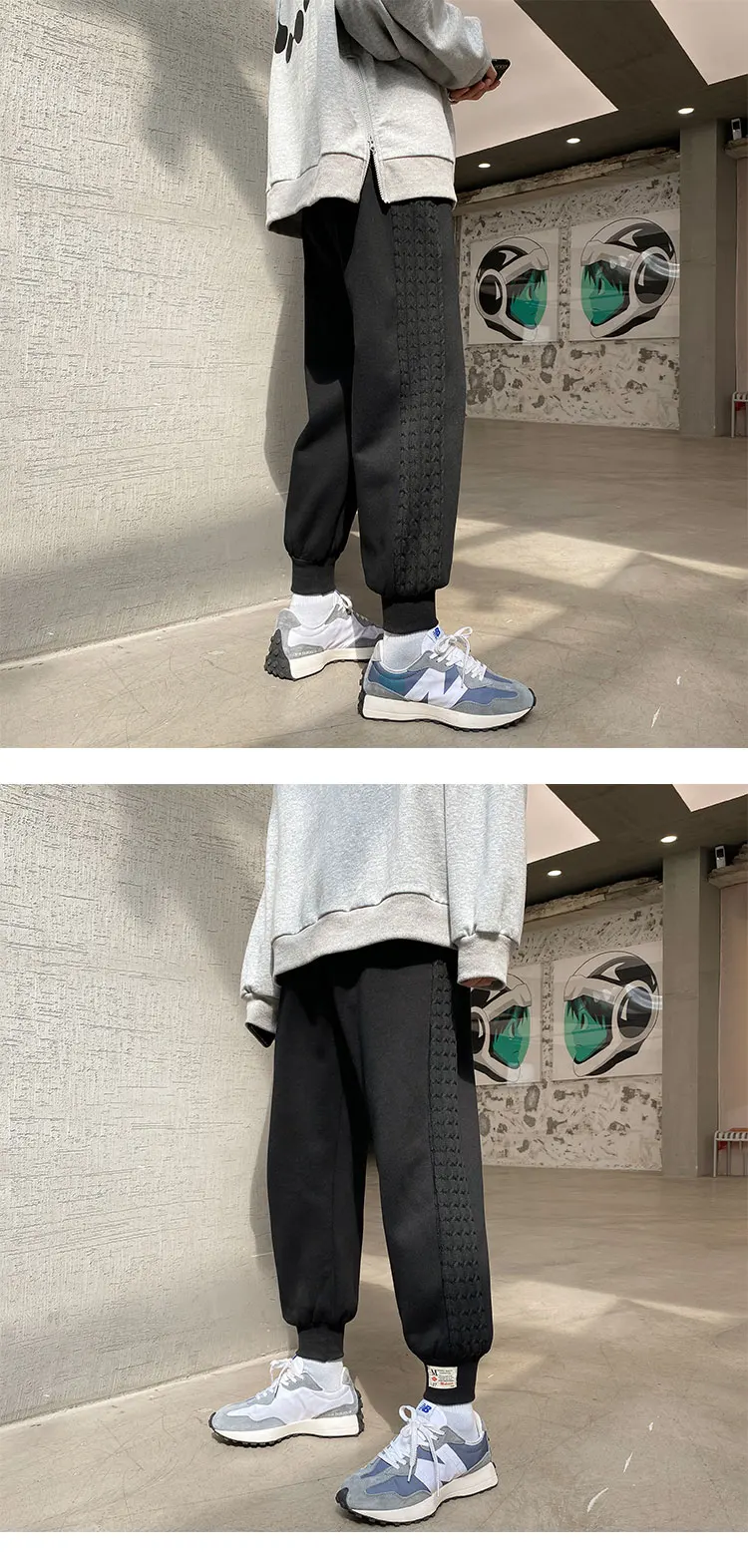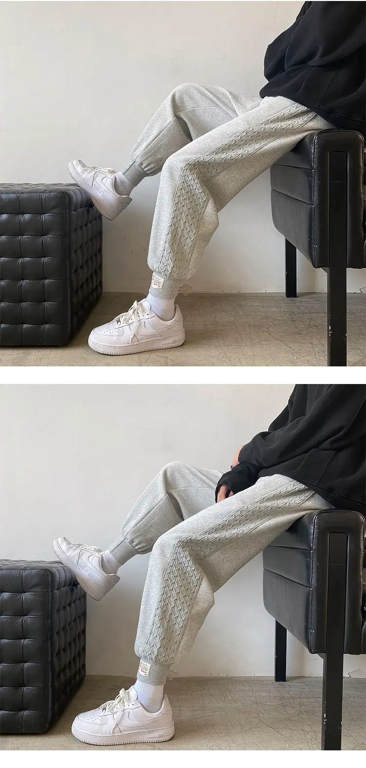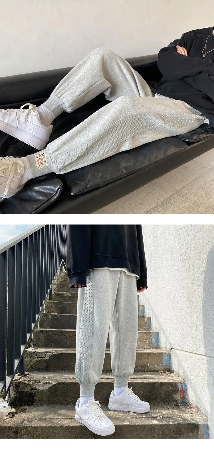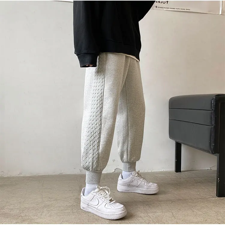 Wiaofellas - men's new knitted stitching / plus fleece trousers