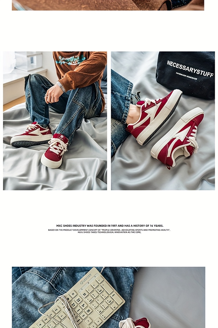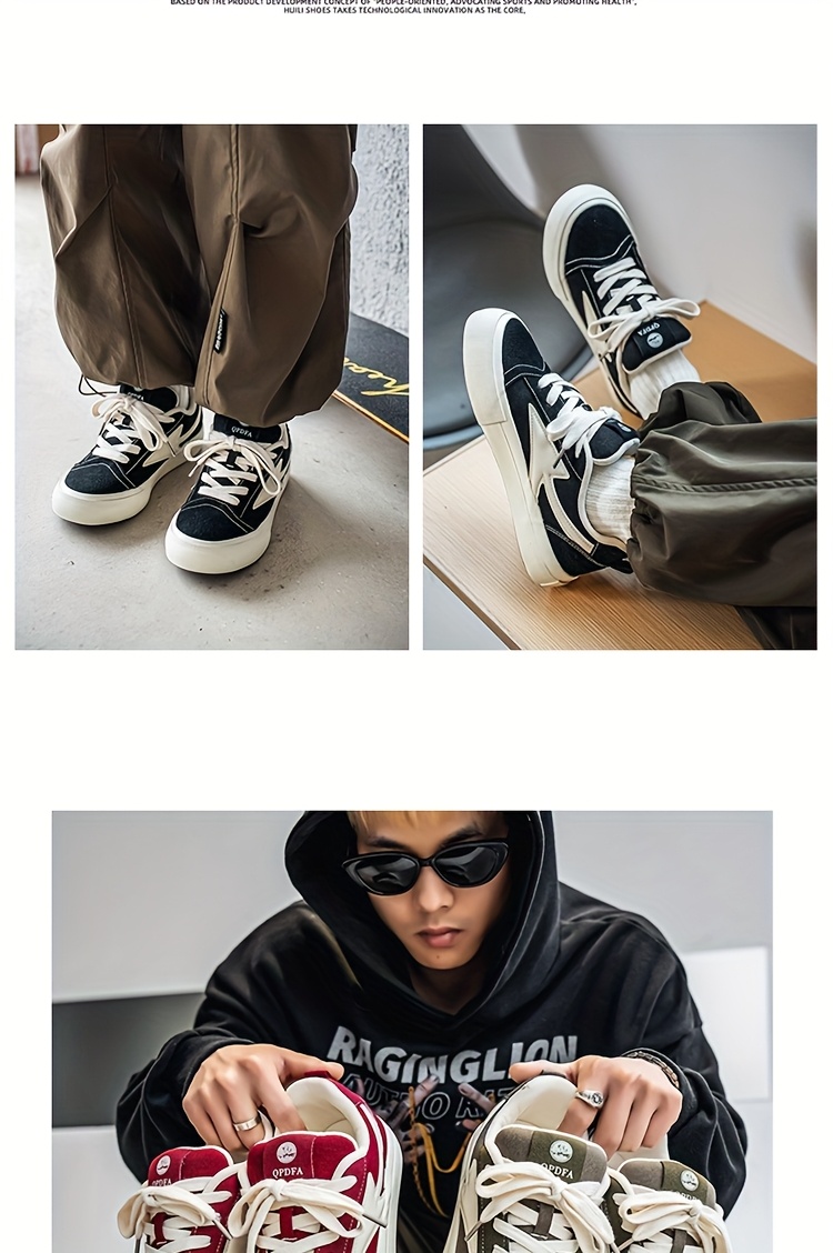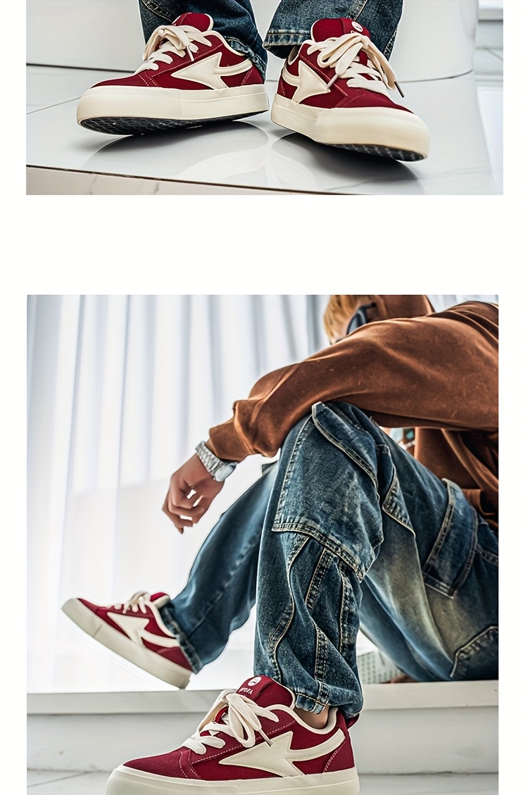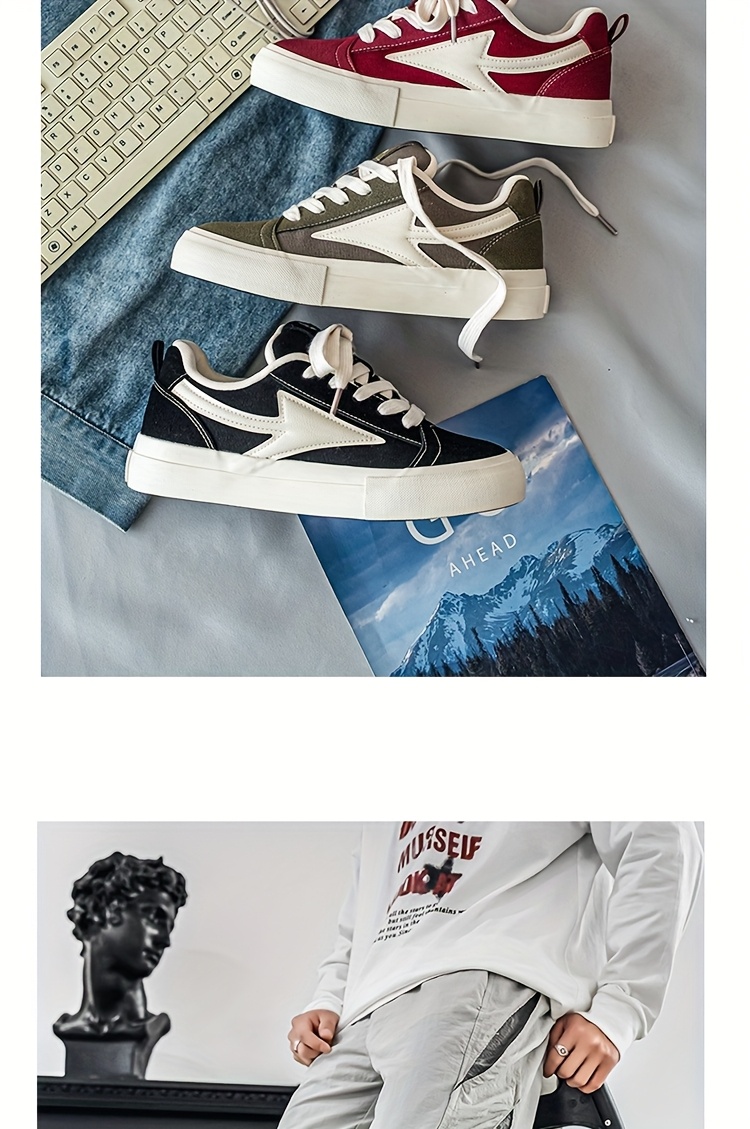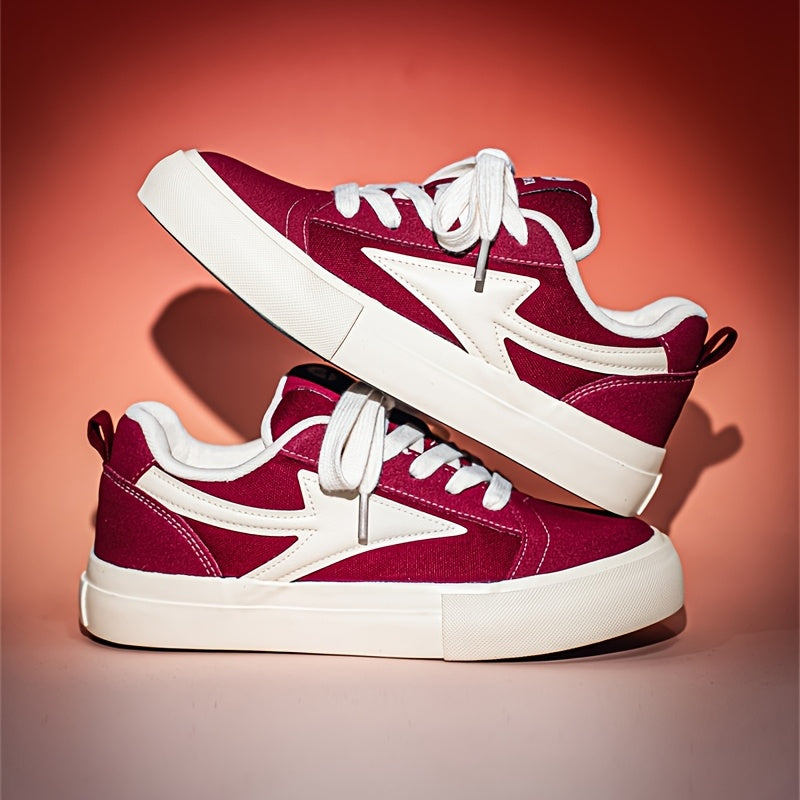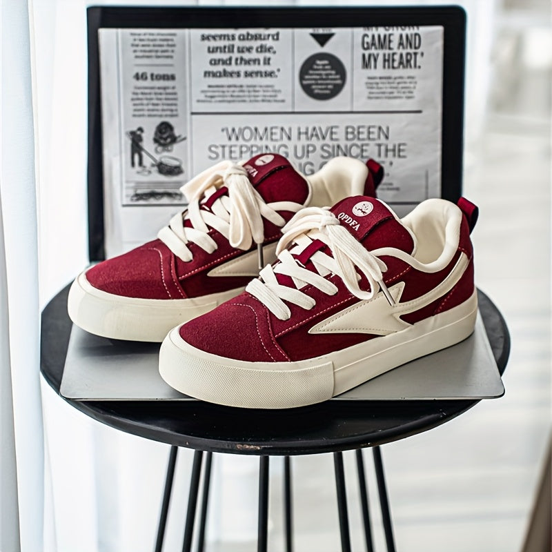 WIAOFELLAS - Men'S Vintage Low-Top Skateboard Sneakers, Casual All-Season Sports Canvas Shoes, Solid Color, Round Toe, Lace-Up, Rubber Sole, Faux Insole, Fabric Inner, Ideal for Daily Wear & Outdoor Activities