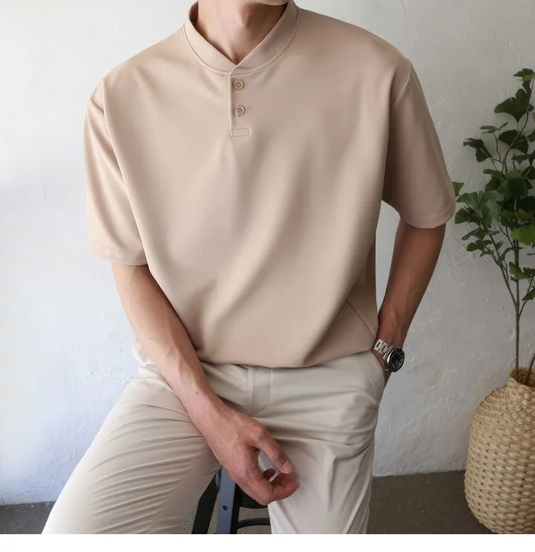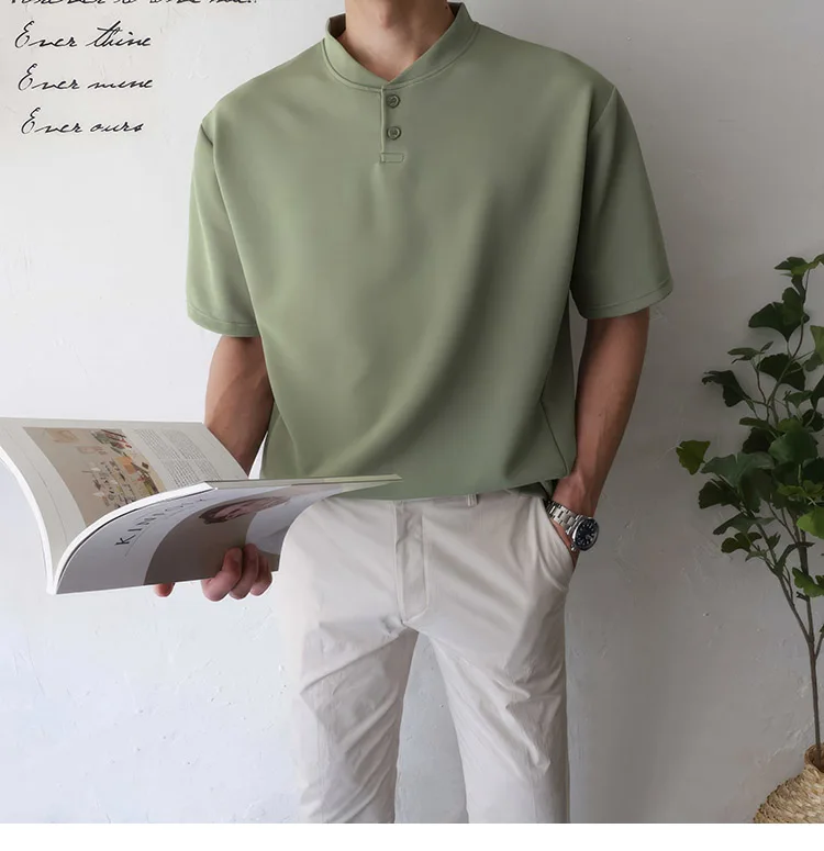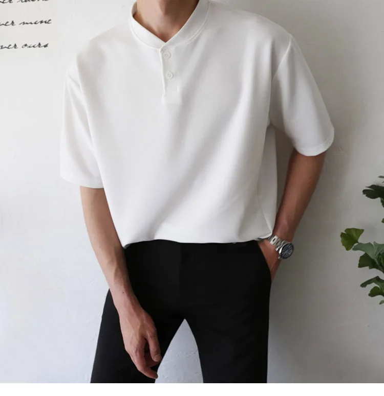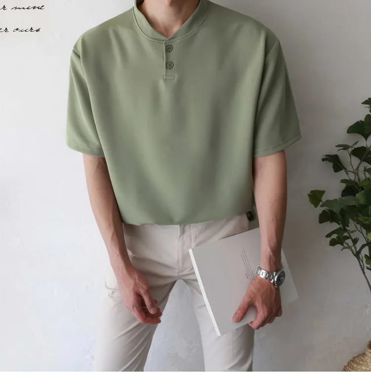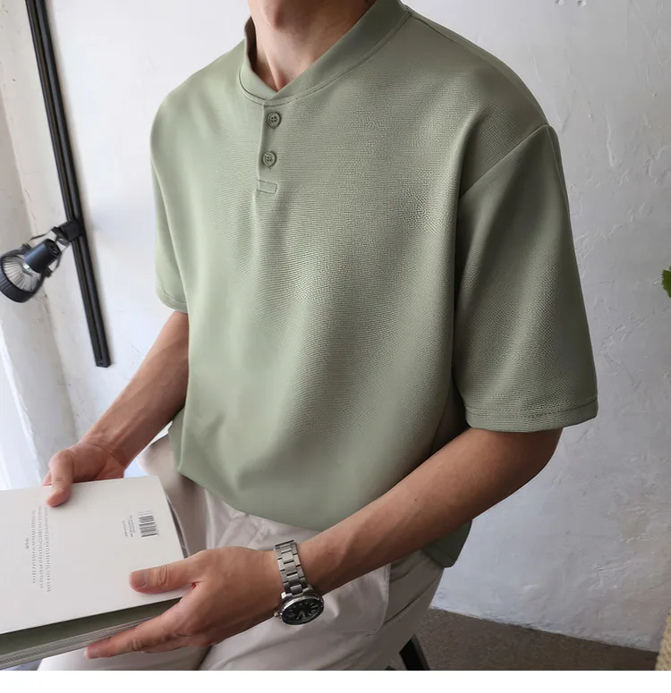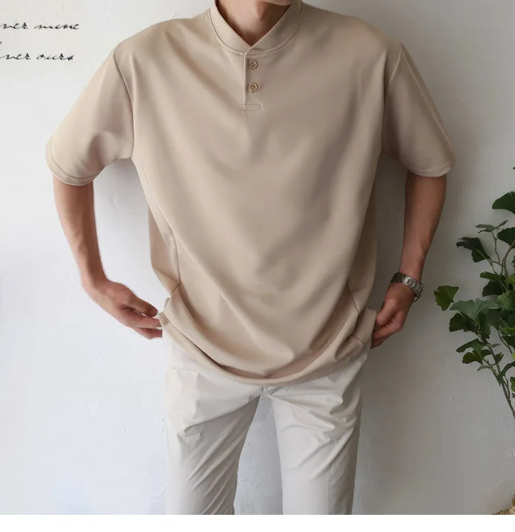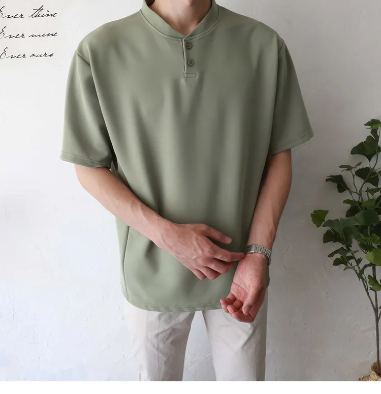 Wiaofellas Summer Short Sleeve T-shirt Men Slim Fit Fashion Casual T Shirt Men Korean Solid Color Standing Neck Tshirt Mens Top M-2XL