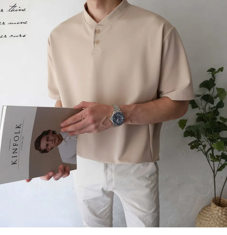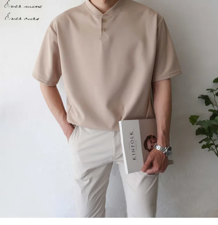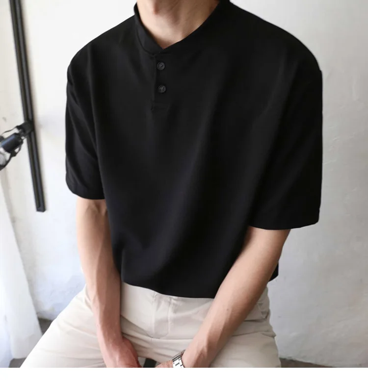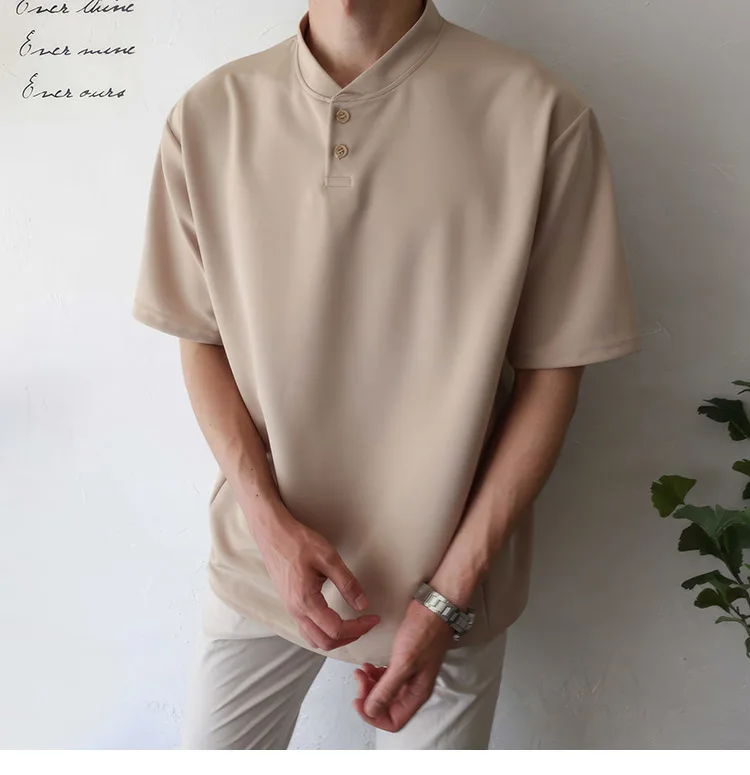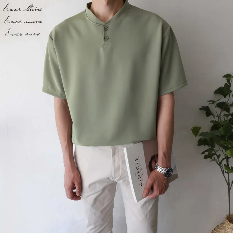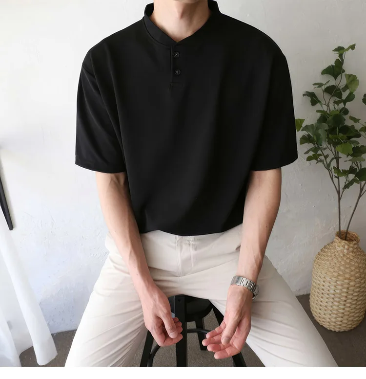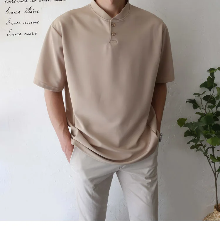 Wiaofellas Summer Short Sleeve T-shirt Men Slim Fit Fashion Casual T Shirt Men Korean Solid Color Standing Neck Tshirt Mens Top M-2XL
