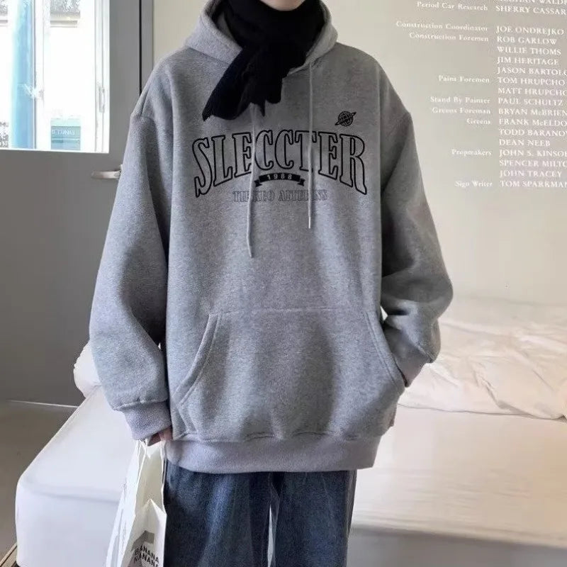 Wiaofellas Vintage Letter Hoodies for Men Hip-hop Padded Casual Loose Warm Streetwear Sweatshirts Fashion Long Sleeve Aesthetic Clothing