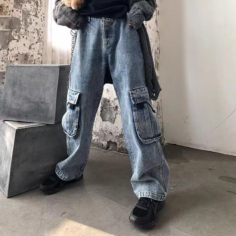 Wiaofellas Winter Men's Streetwear Vintage Casual Pants Washed Big Pocket Workwear Jeans Hip Hop Style High-quality Trousers S-3XL