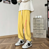 Wiaofellas - Youth Loose Casual Pants Korean Fashion English Print Baggy Sports Pants Outdoor Street Casual Pants Daily DailyJoggers